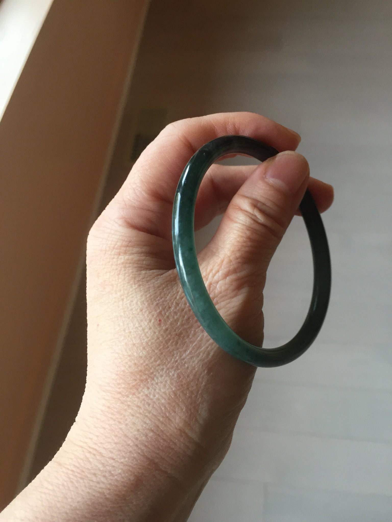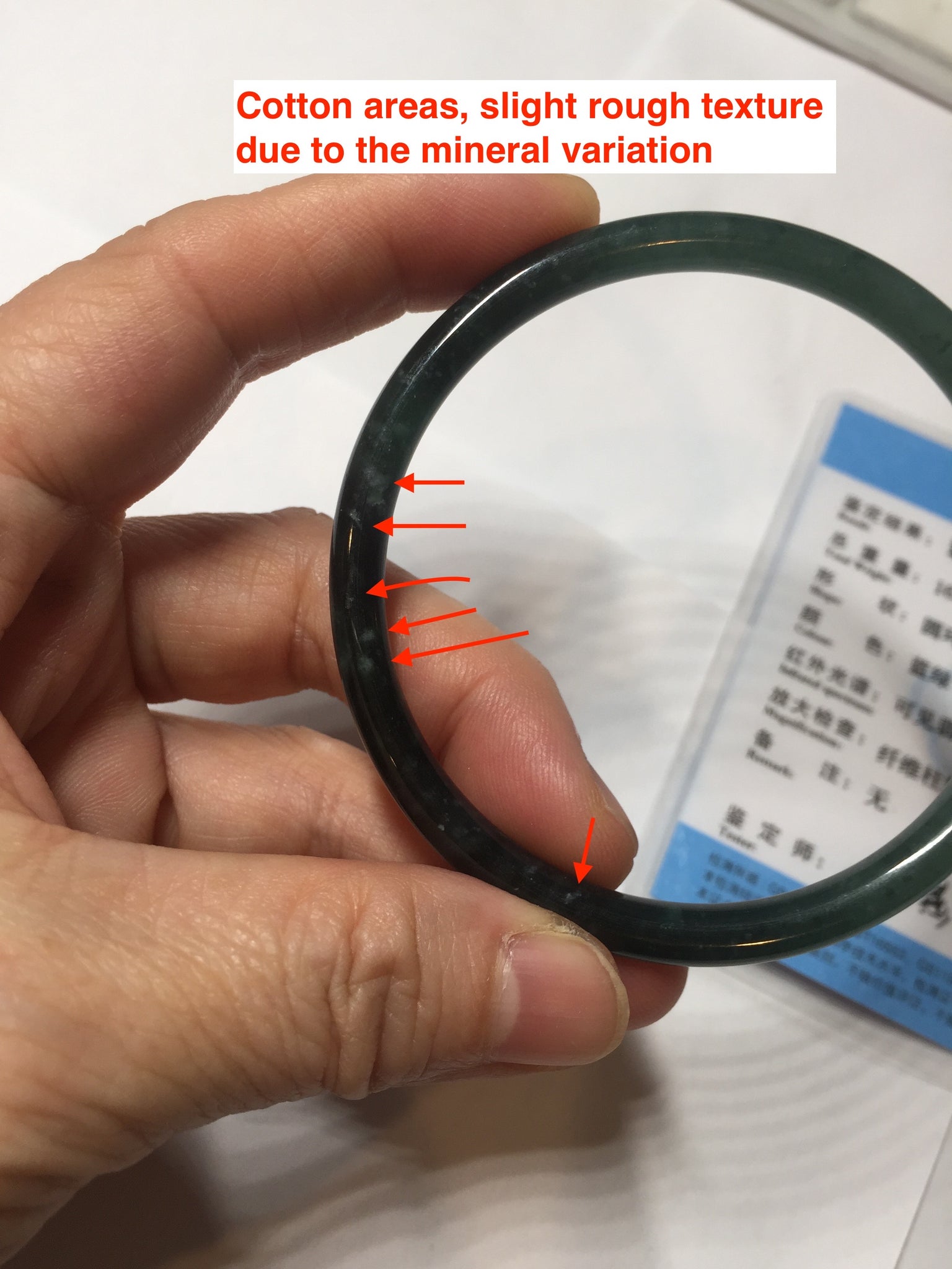 No crack. Some cotton spots or areas with rough texture due to the mineral variation. Some cotton areas,cotton lines and cotton spots. The bangle has some gray/ black color.