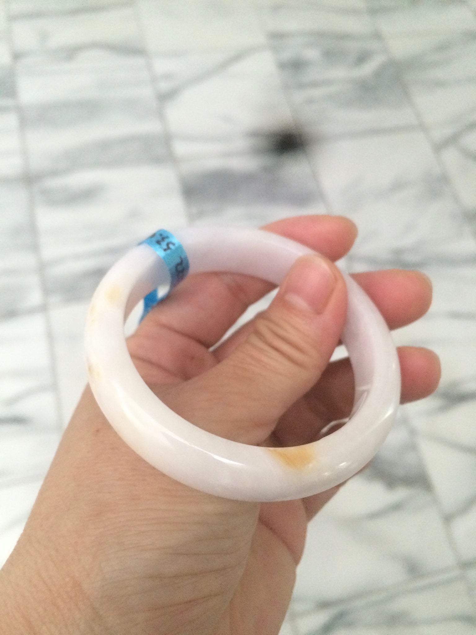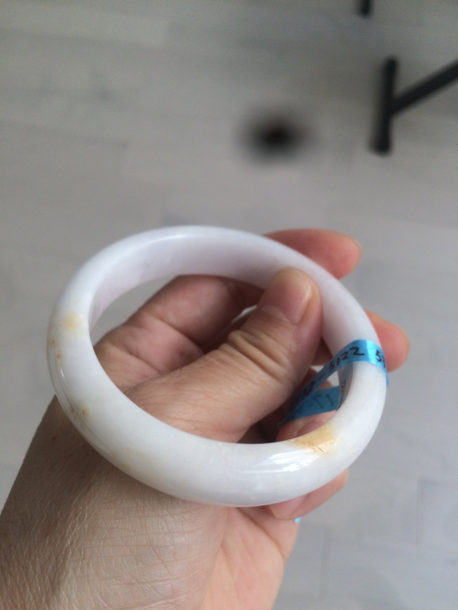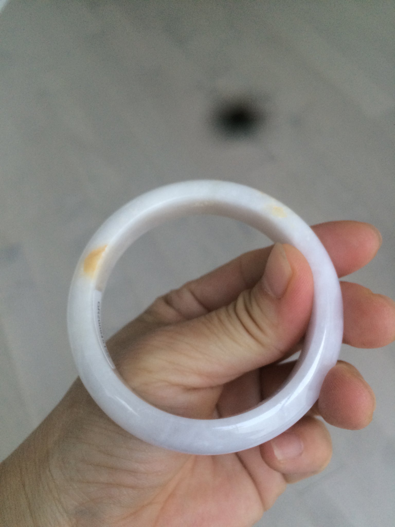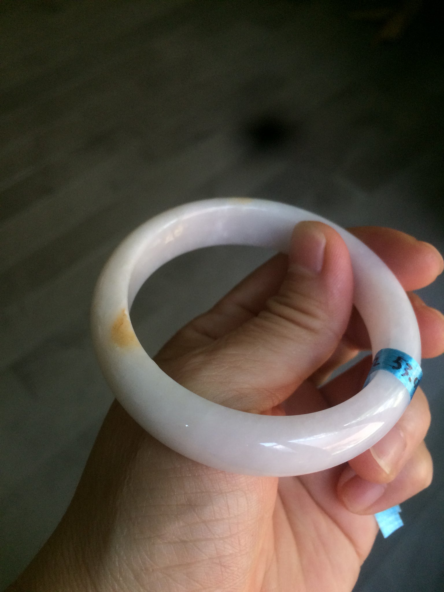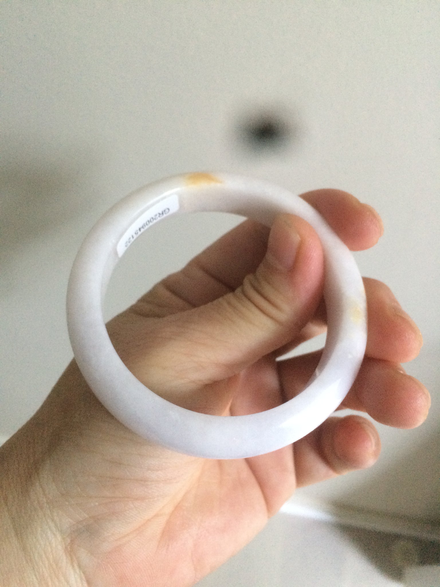 No crack. Some hairlines(photos may not show all). One is long, almost alongside half of the bangle. Cotton spots and cotton lines. Rough surfaces and mine pits. The purple is super light. Way lighter than photos.