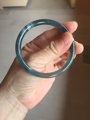 54.8mm Certified Type A 100% Natural dark green/blue/gray Guatemala slim round cut Jadeite bangle PD182-2480