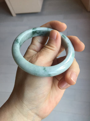 55mm Certified Type A 100% Natural icy watery light green/dark green/black round cut Jadeite bangle PD109-8541