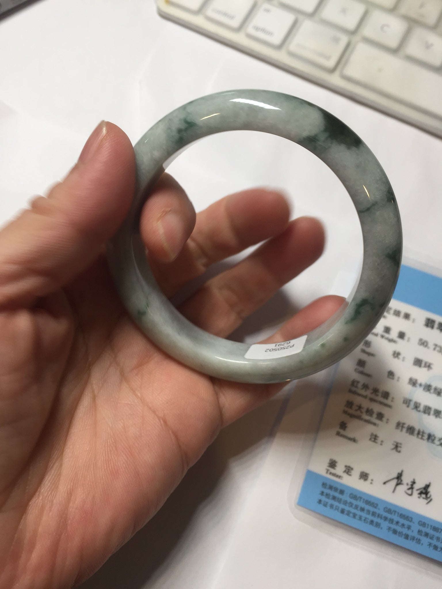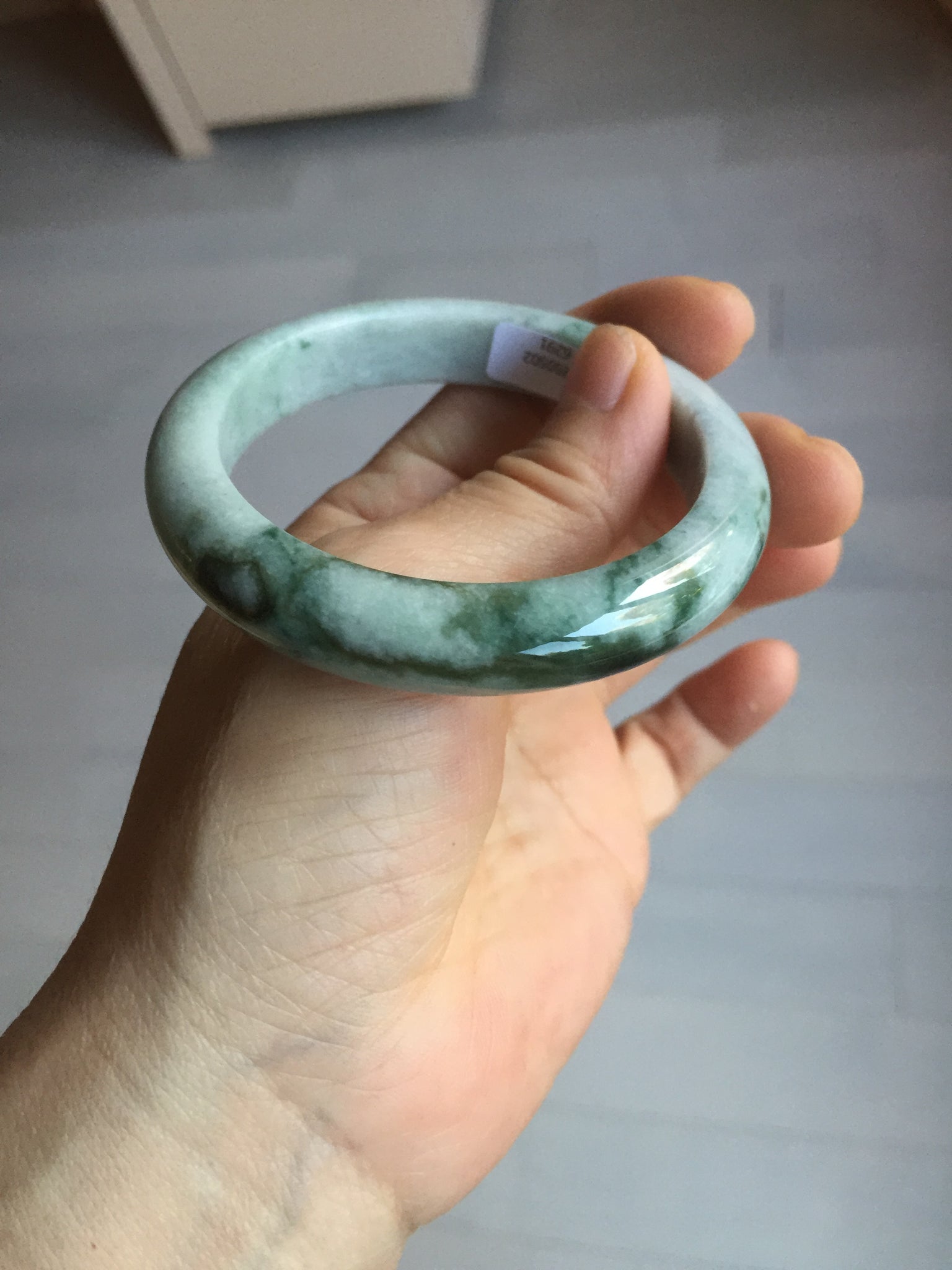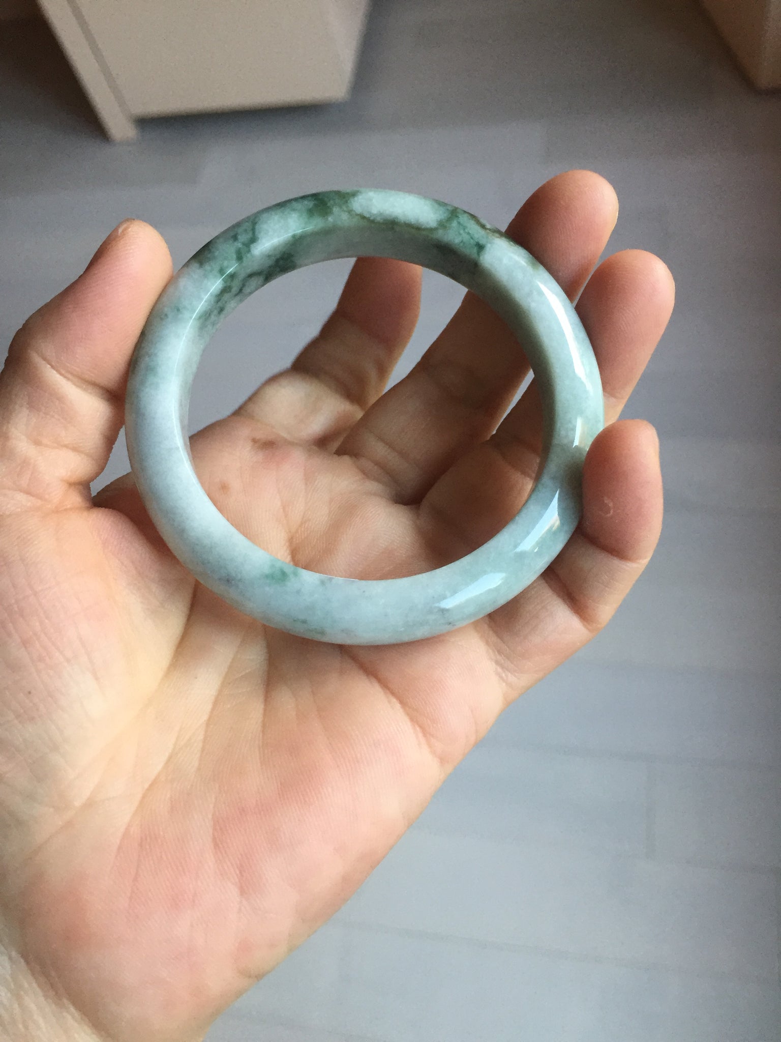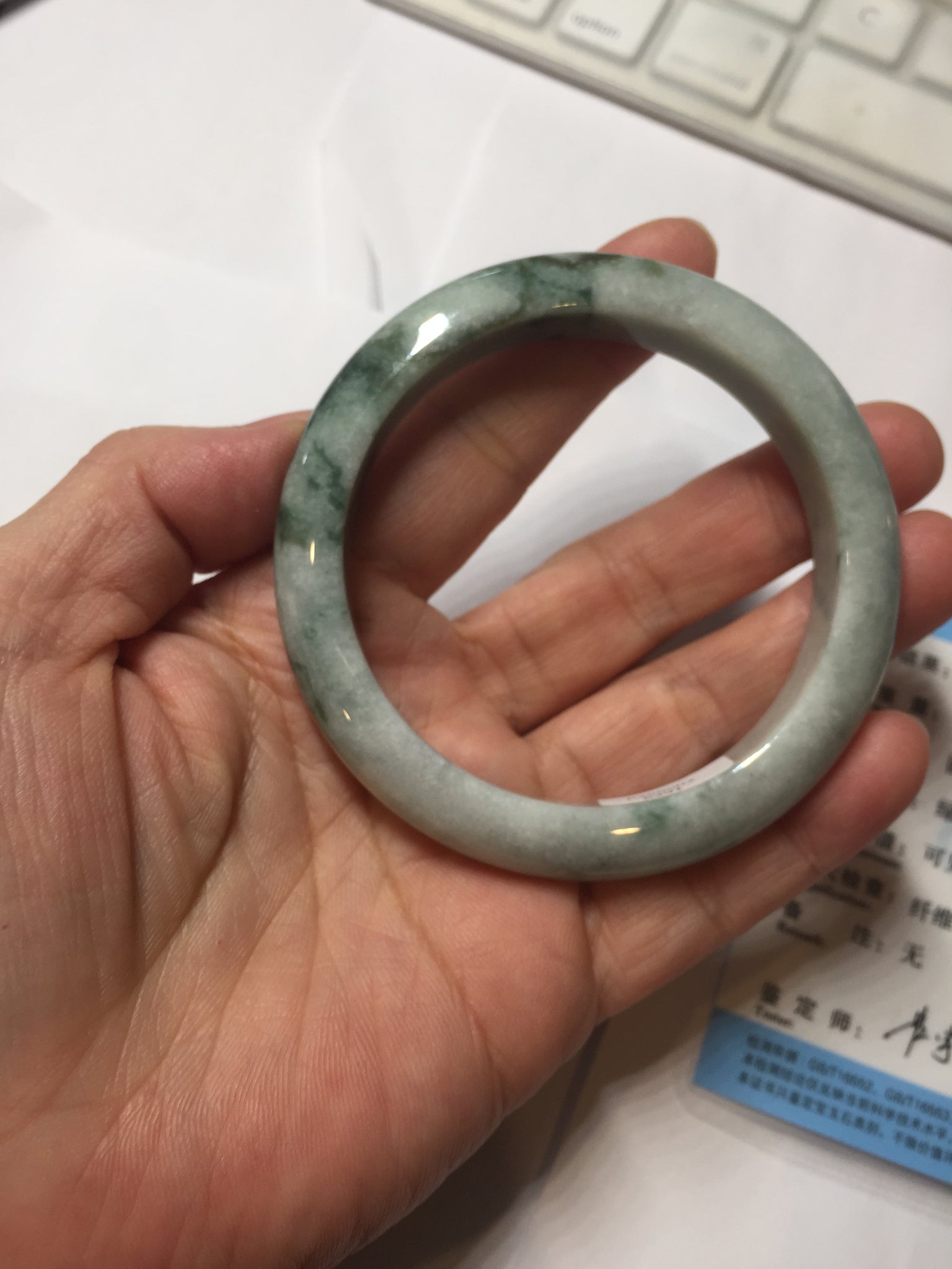 Some cracks and rough surfaces. The bangle is solid. Some hairlines and cotton lines. Some cotton areas. Not transparent. Not watery.