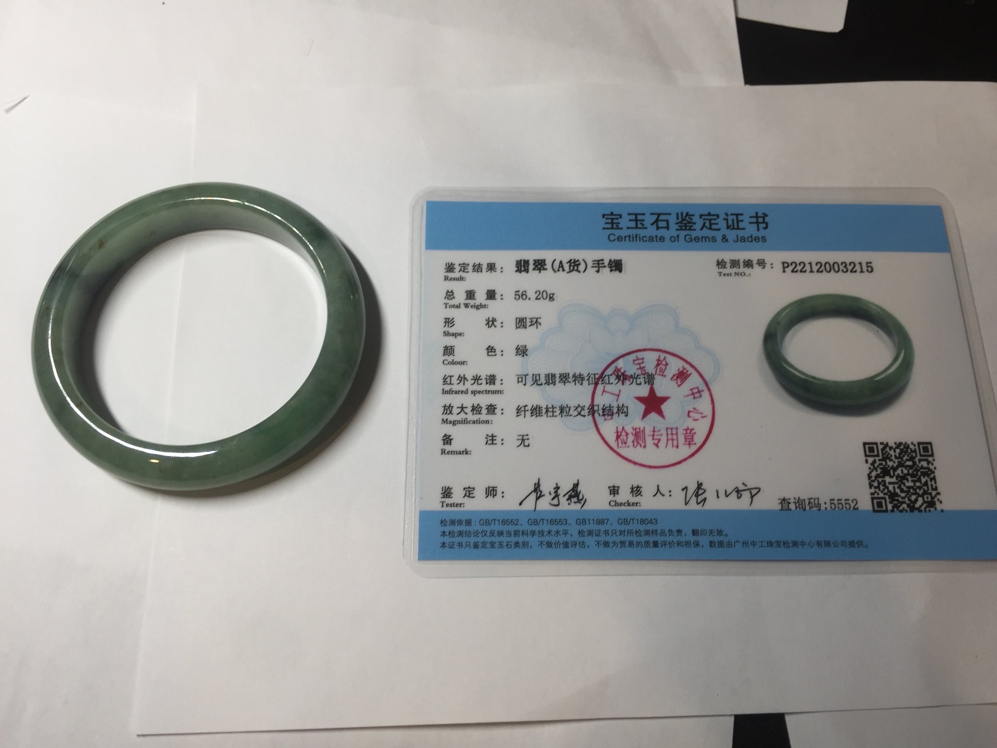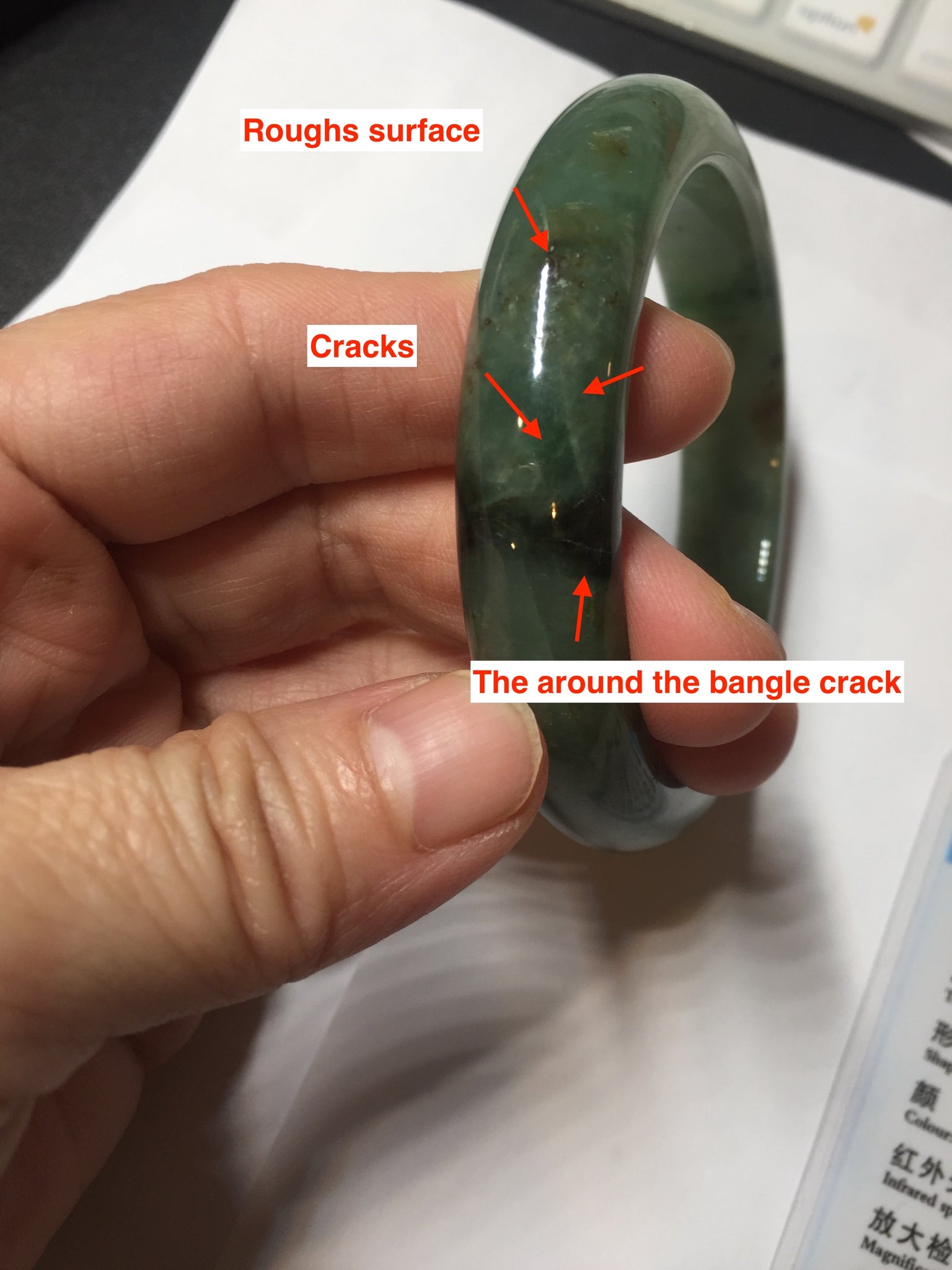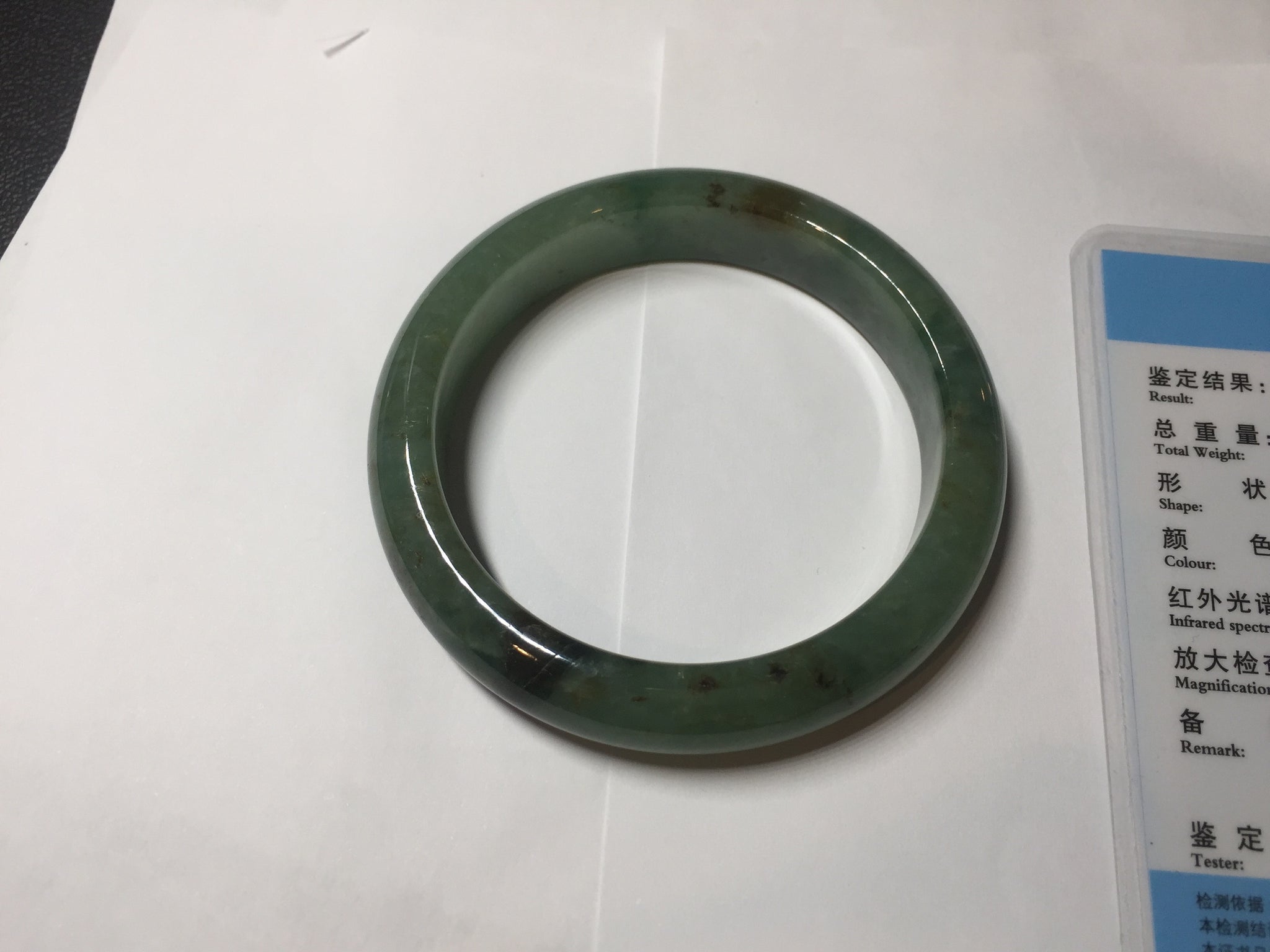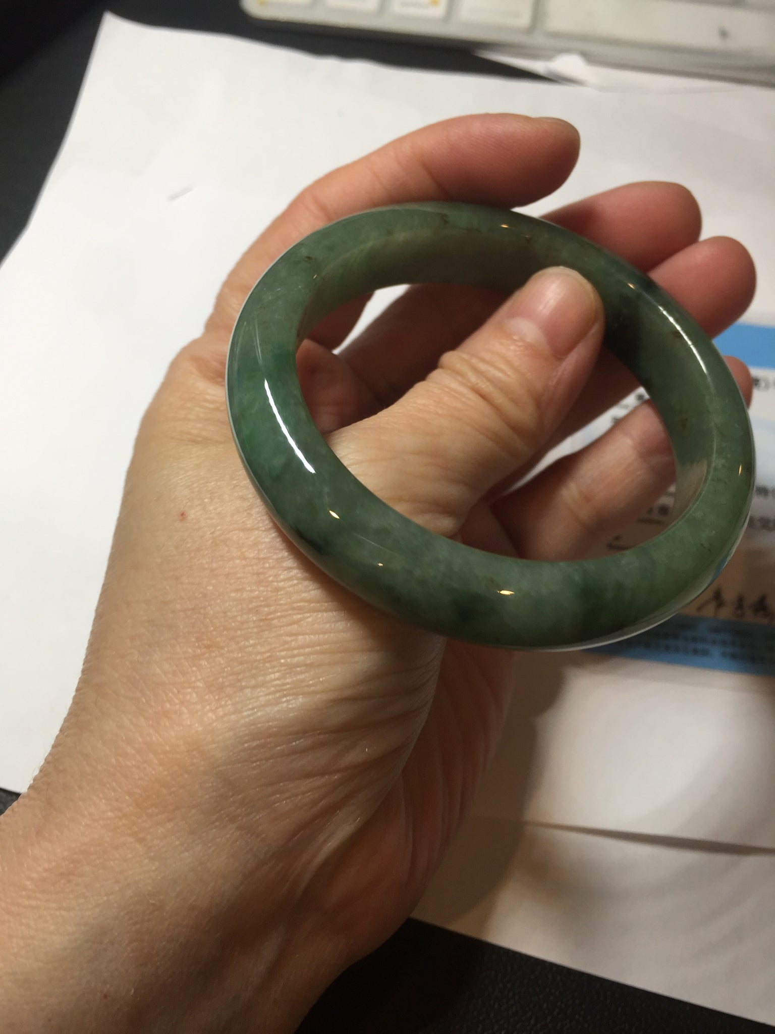 55.5mm Certified Type A 100% Natural oily dark green(老油青)/gray Jadeite bangle BG227-3215