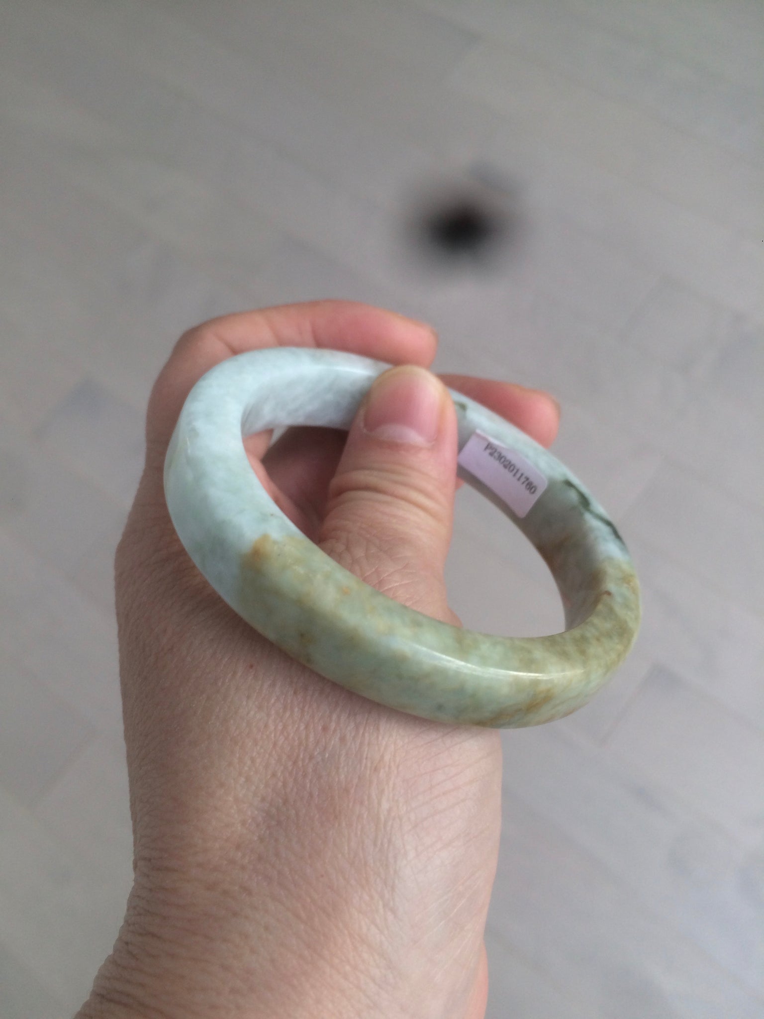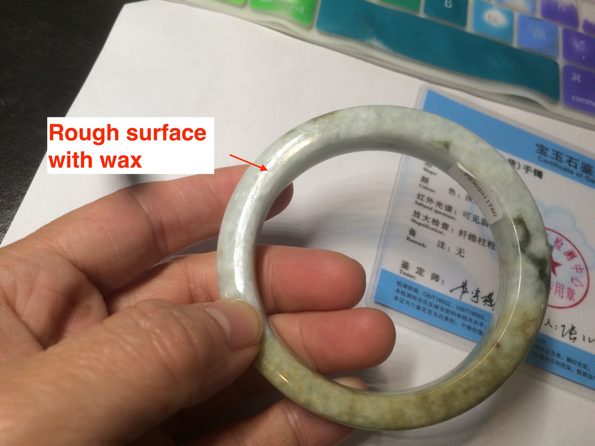 One ring shape color root crack. Some yellow color roots on rough surface. One rough surface with wax. One part is narrower and thinner than the other parts 11.9(11.5)/8.2(7.4)mm.