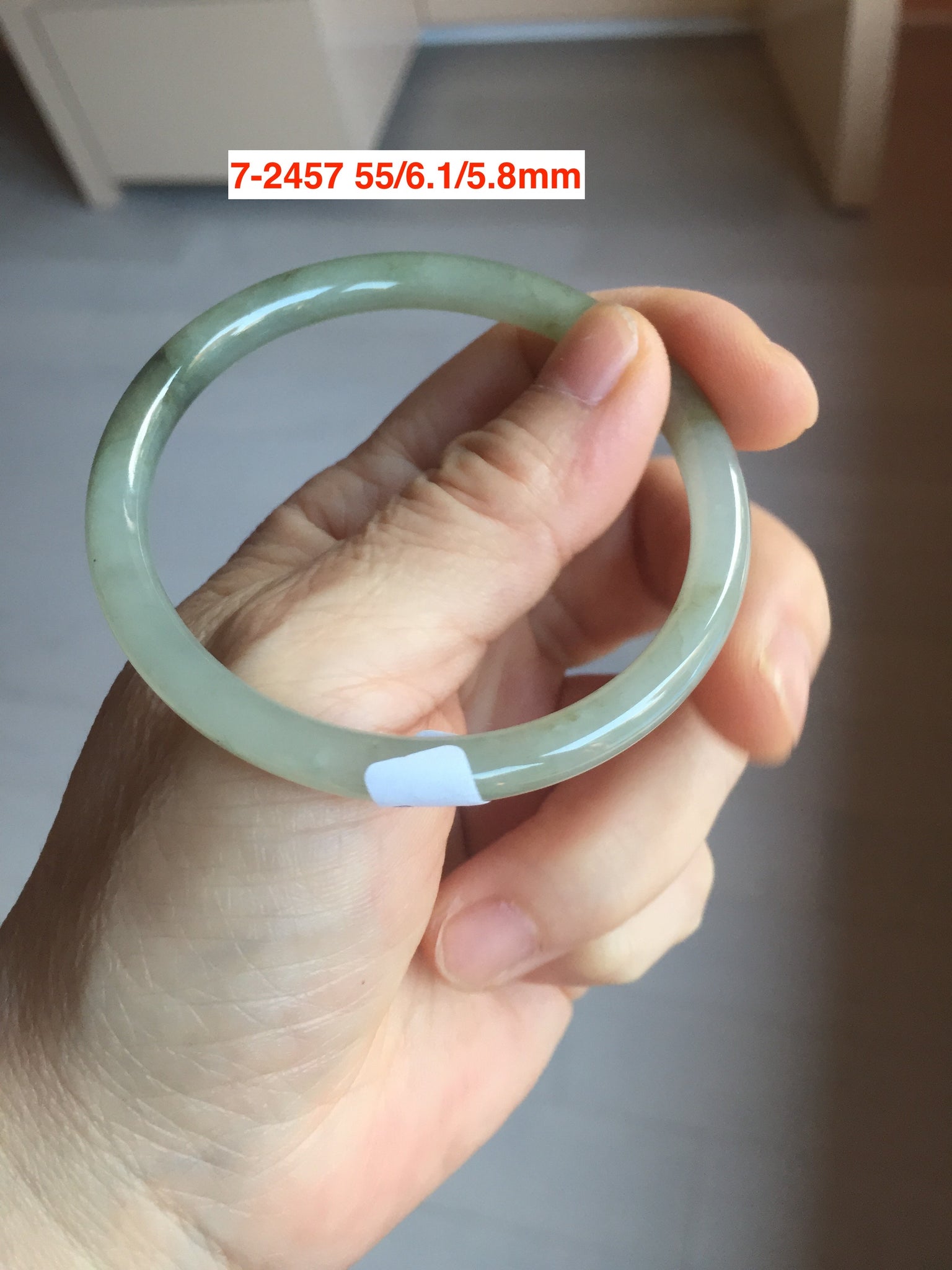 Jadeite Jade Bangle all come from the same rock. With this low price, they all have defects (Mostly black color root cracks, color roots, black areas, dark spots, cotton lines, and cotton areas.). All of them are solid. Make high sound when tapped.