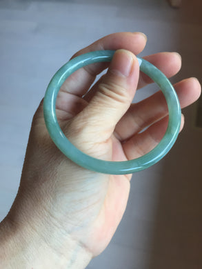 56mm Certified Type A 100% Natural icy watery spring-water green/blue/gray Guatemala slim round cut Jadeite bangle PA98-5539