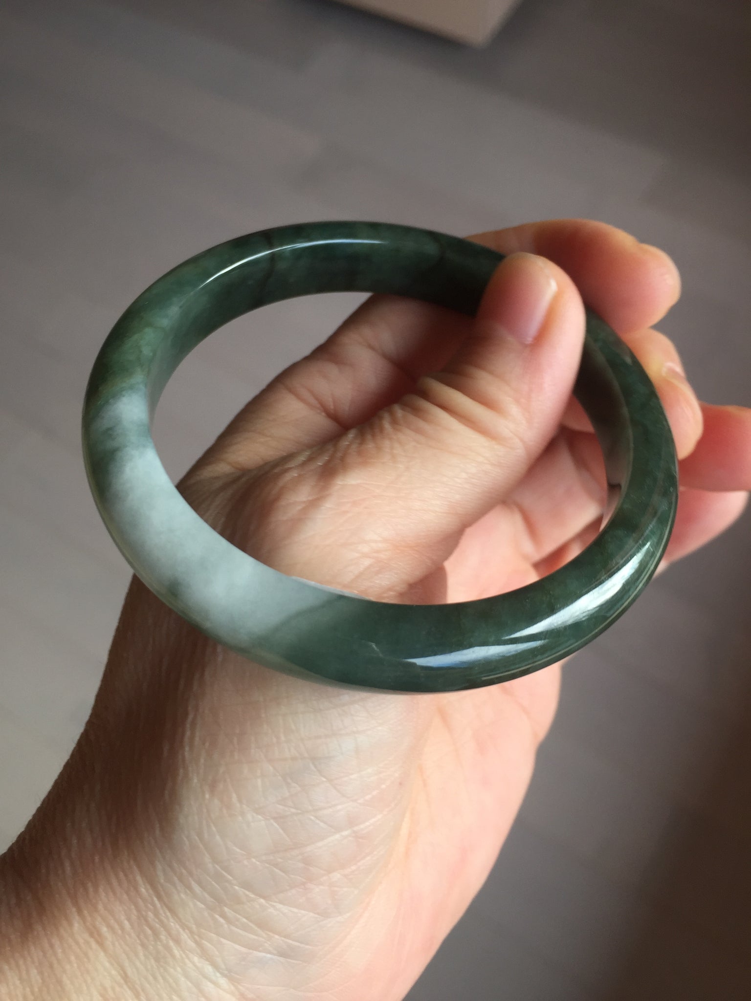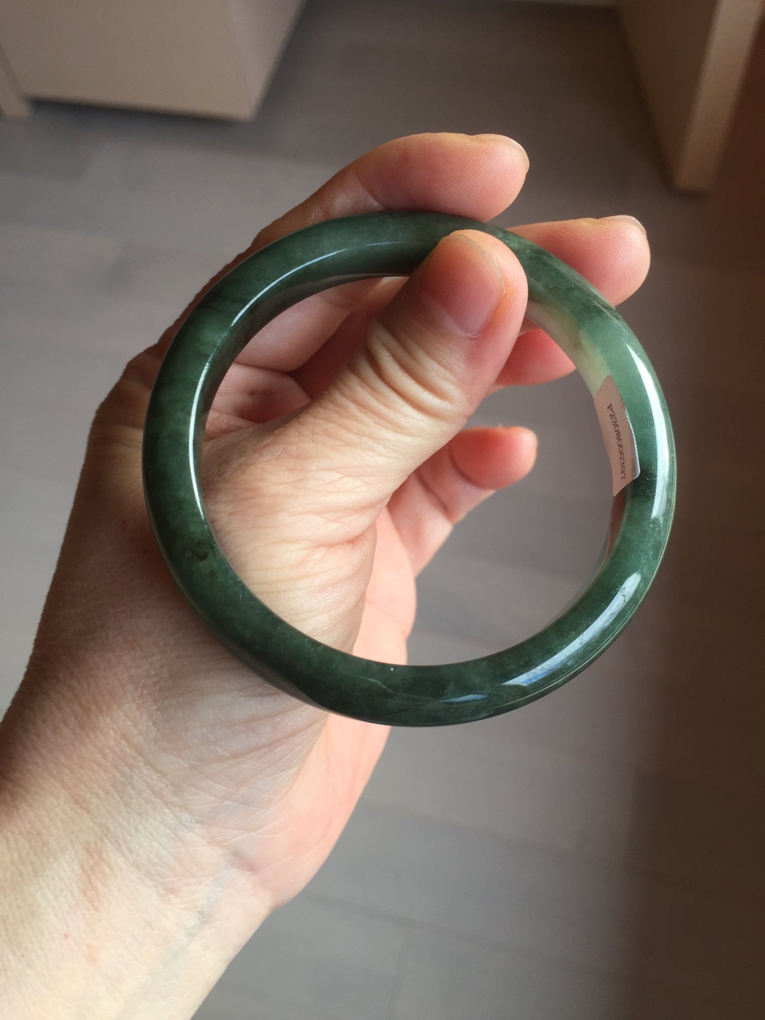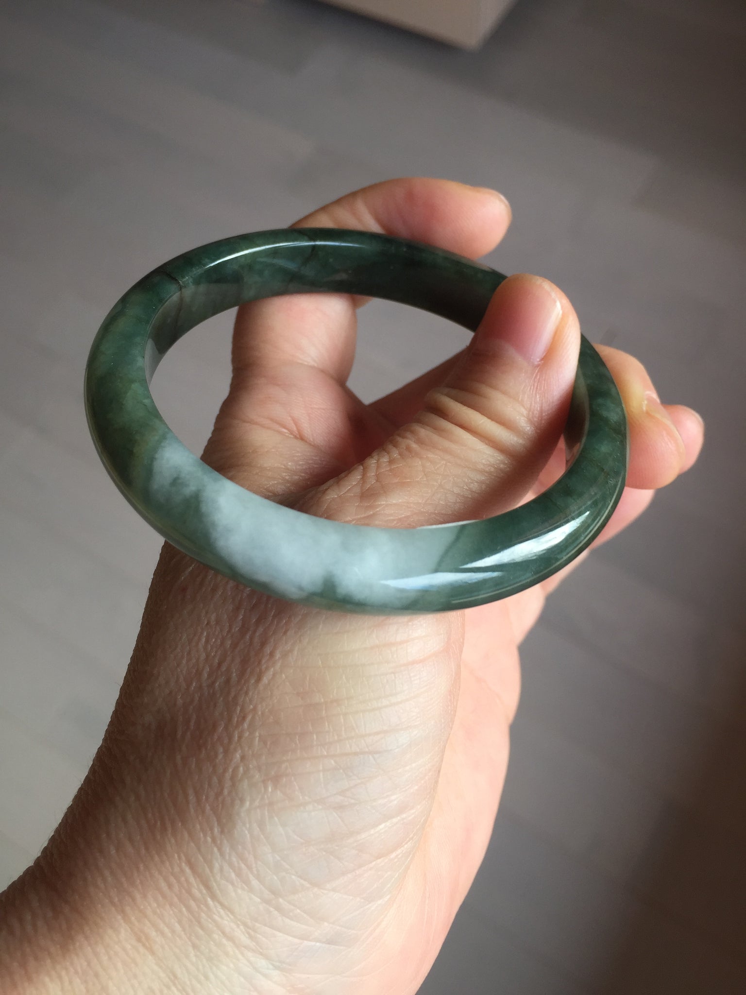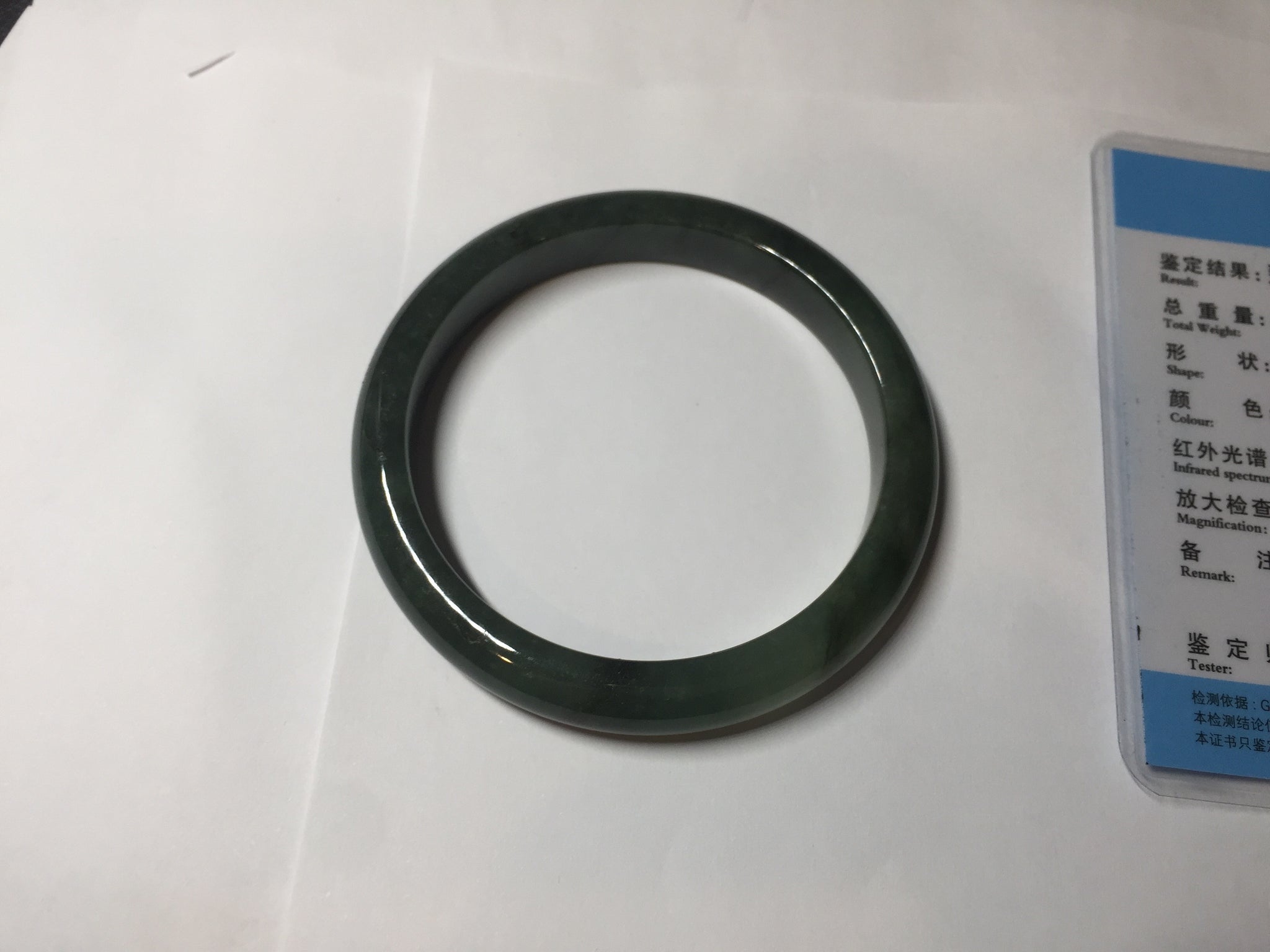 57.5mm Certified Type A 100% Natural oily dark green(老油青)/gray Jadeite bangle BG228-0397