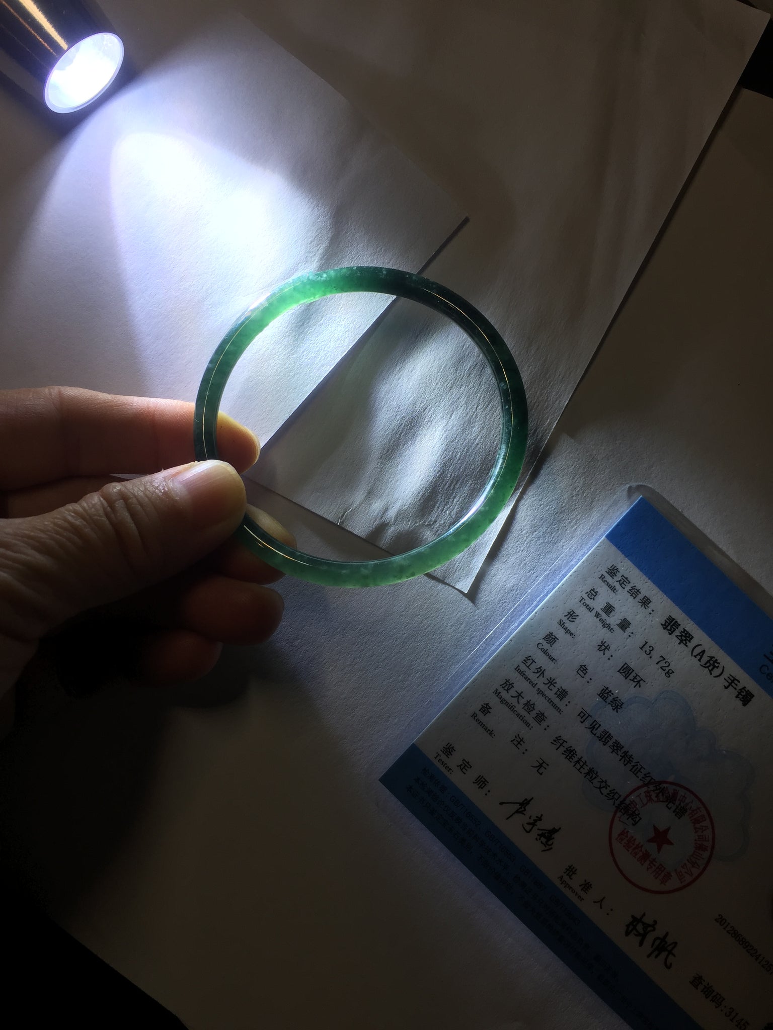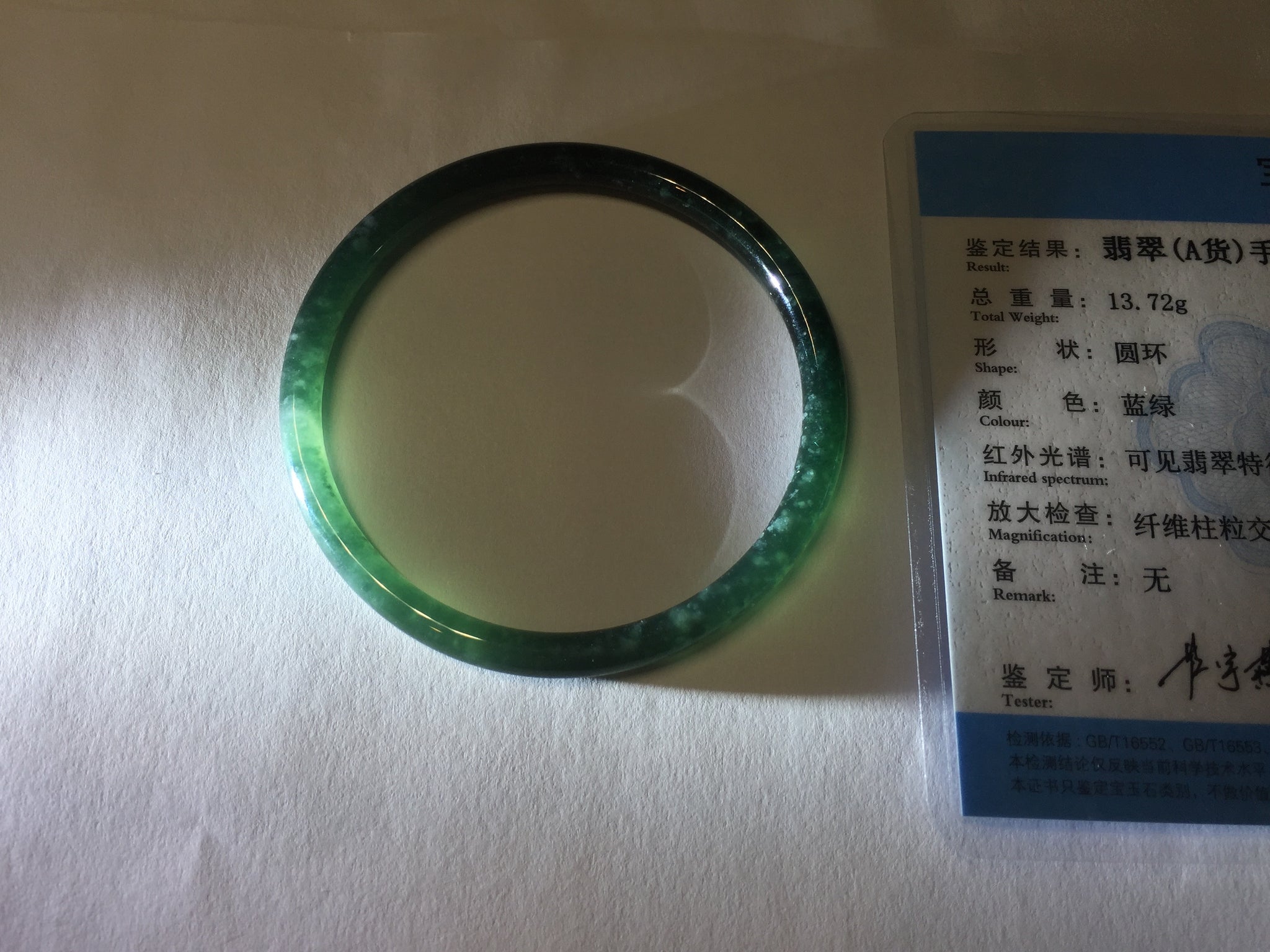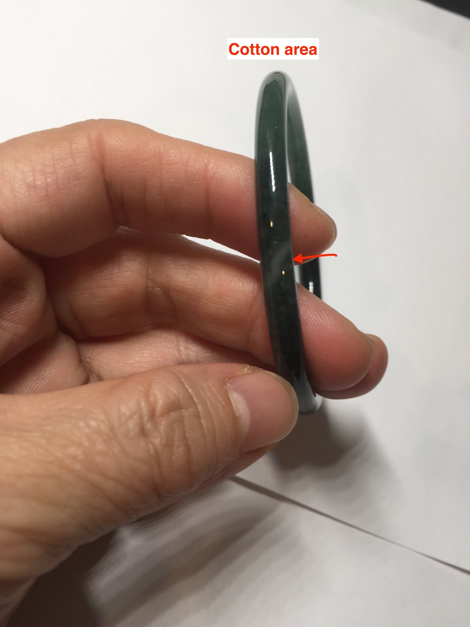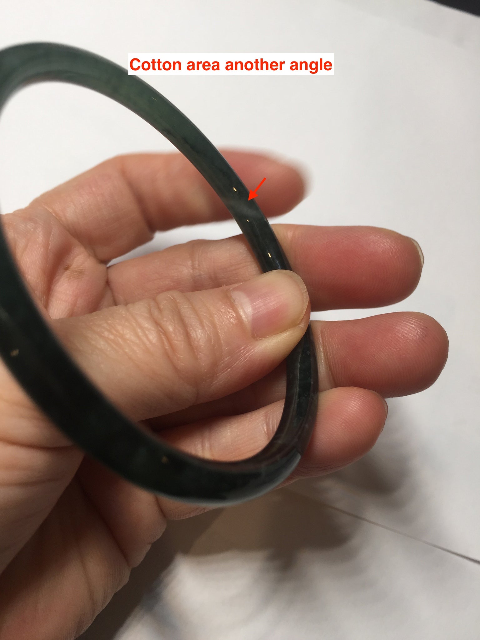 No crack. No hairlines. Some cotton areas, cotton lines, and cotton spots. The bangle has some gray/ black color.
