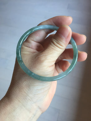 60mm Certified Type A 100% Natural light green/blue/gray Guatemala slim round cut Jadeite bangle PD73-8152