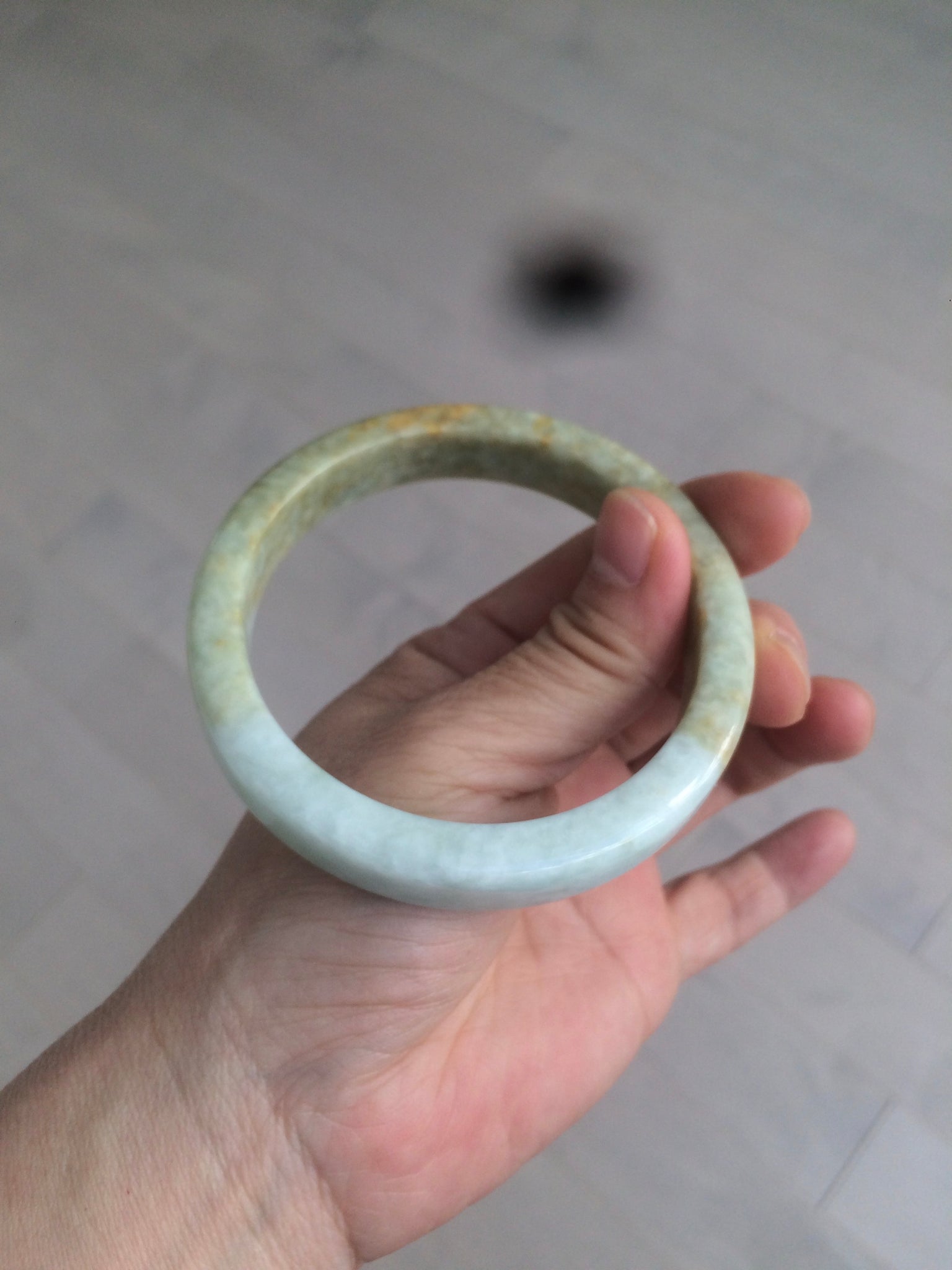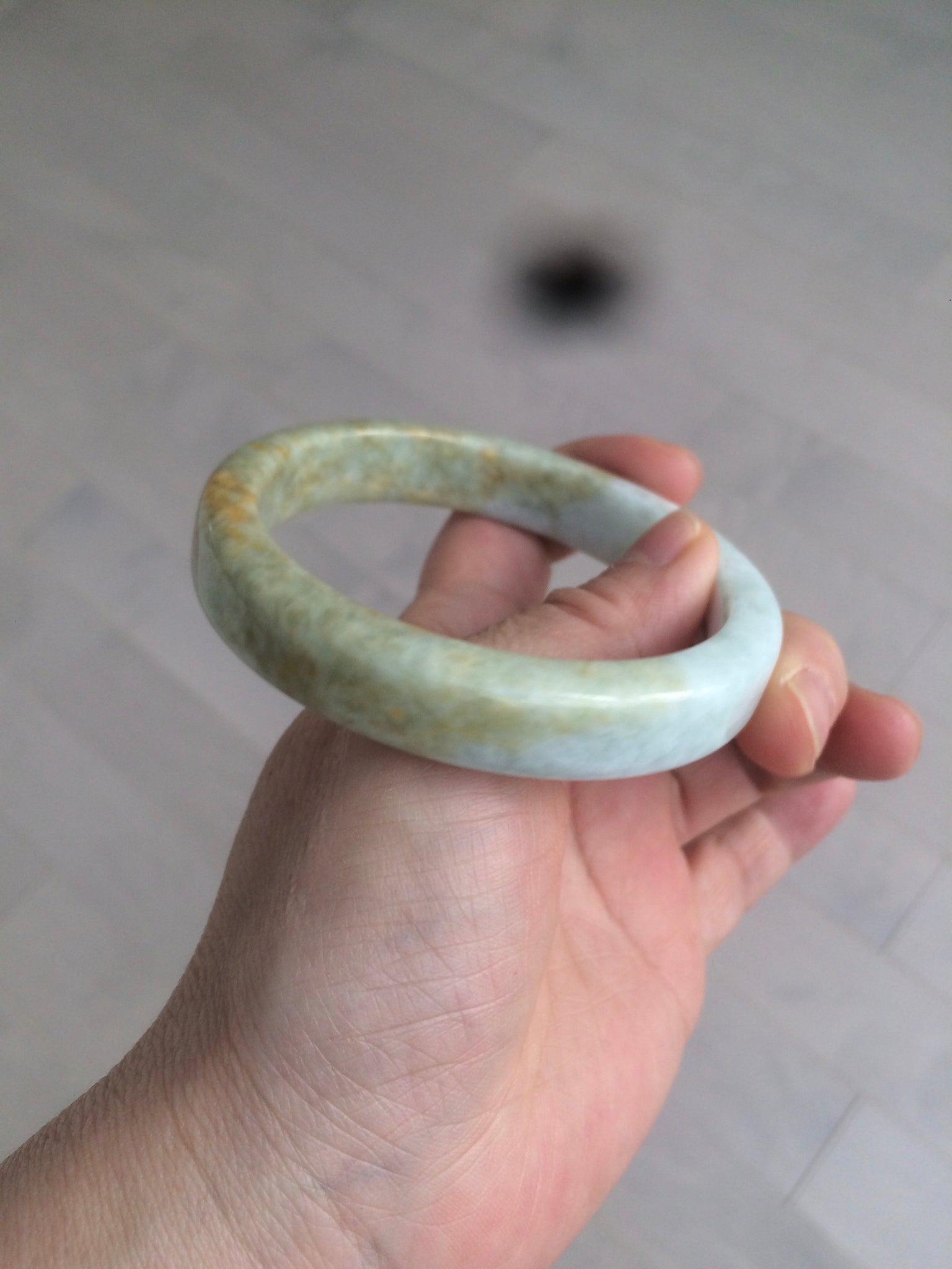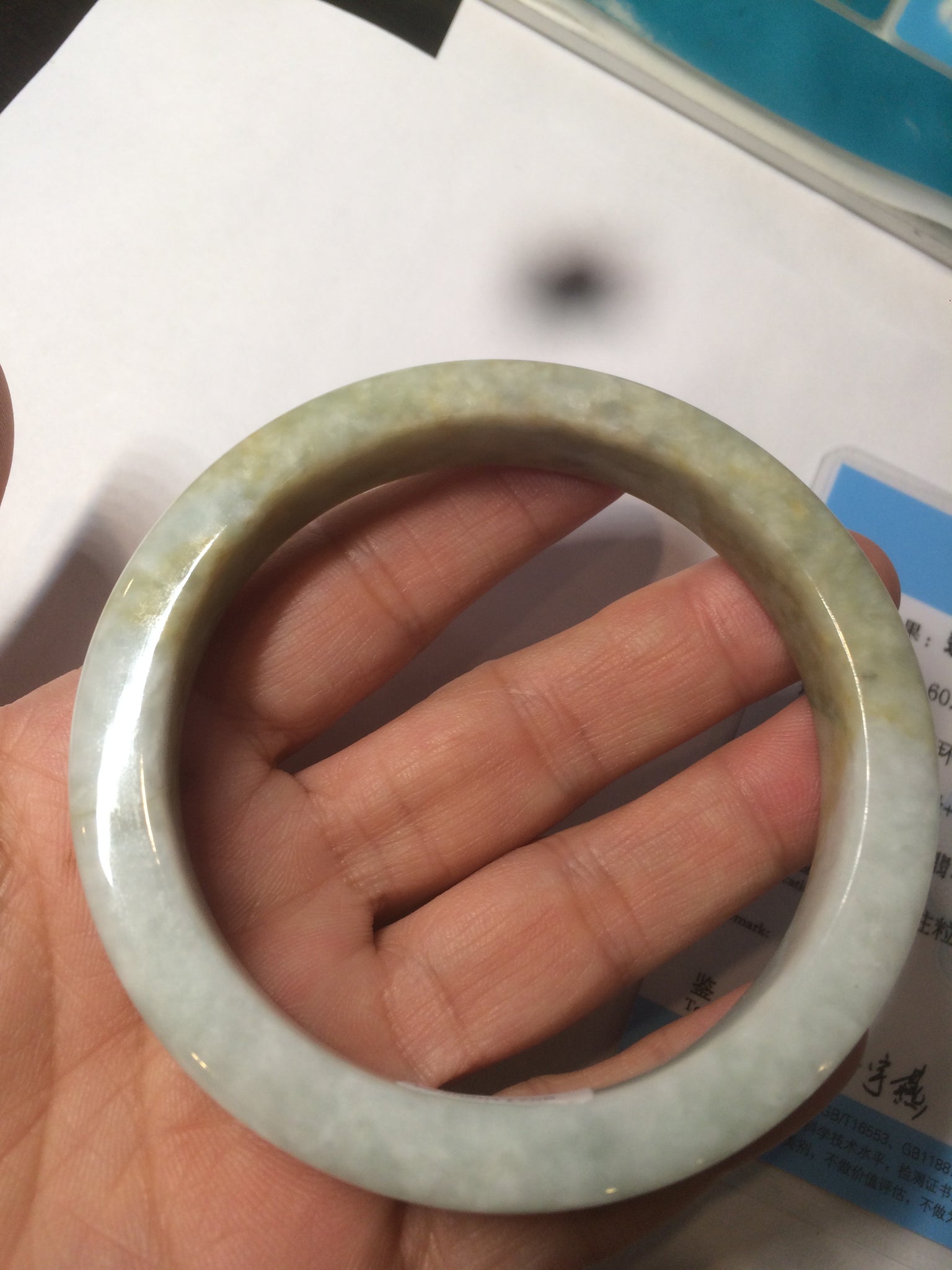 59.5mm certified Type A 100% Natural light green/brown square Jadeite Jade bangle R101-1758