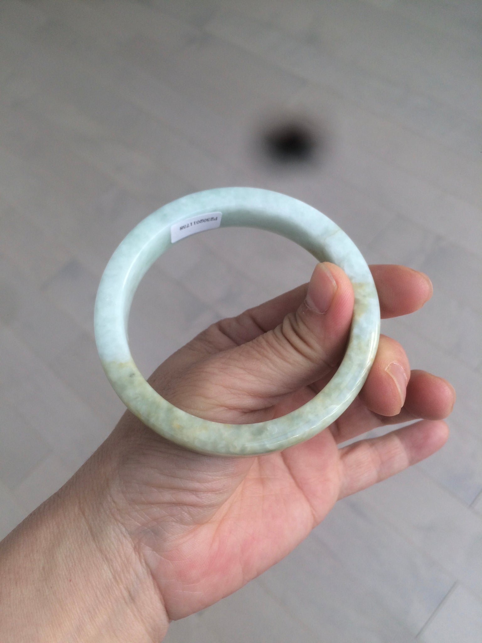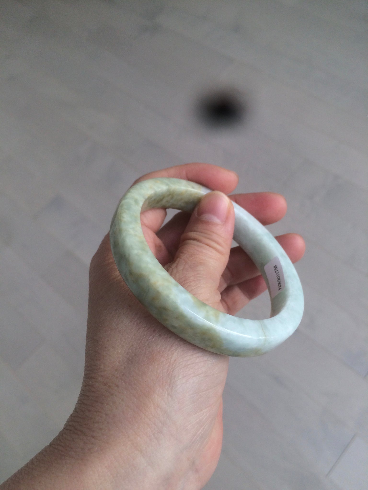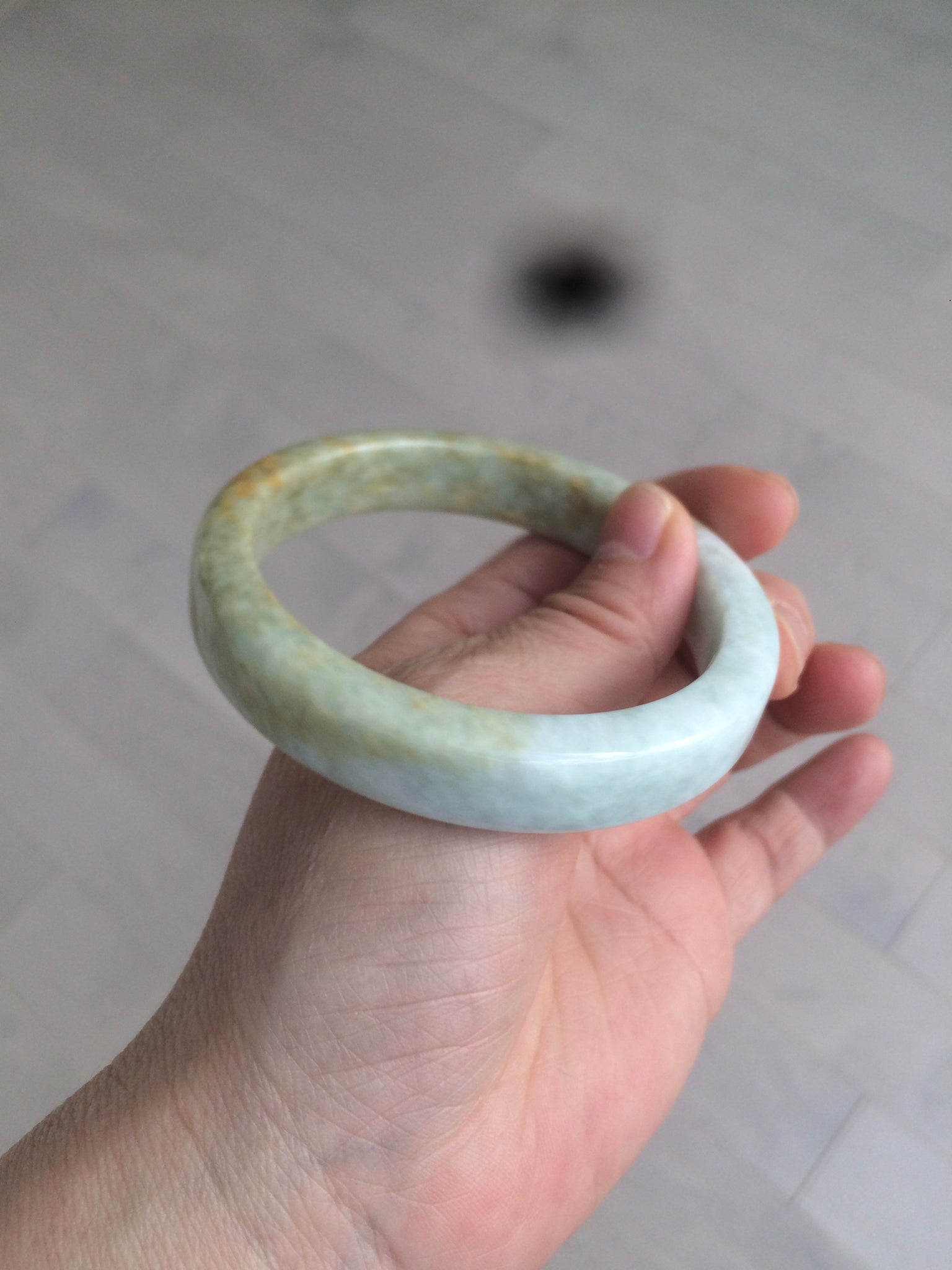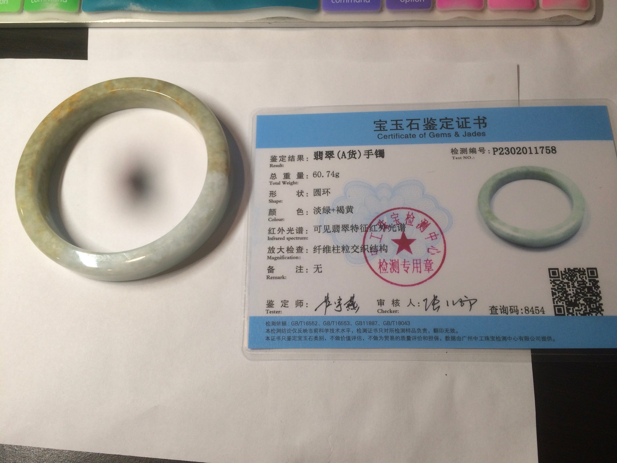 59.5mm certified Type A 100% Natural light green/brown square Jadeite Jade bangle R101-1758