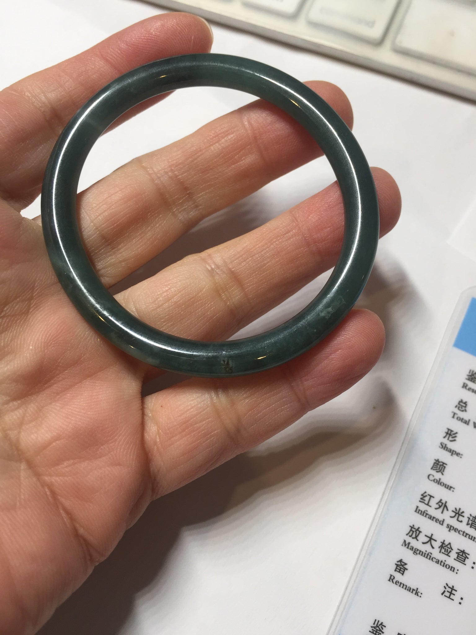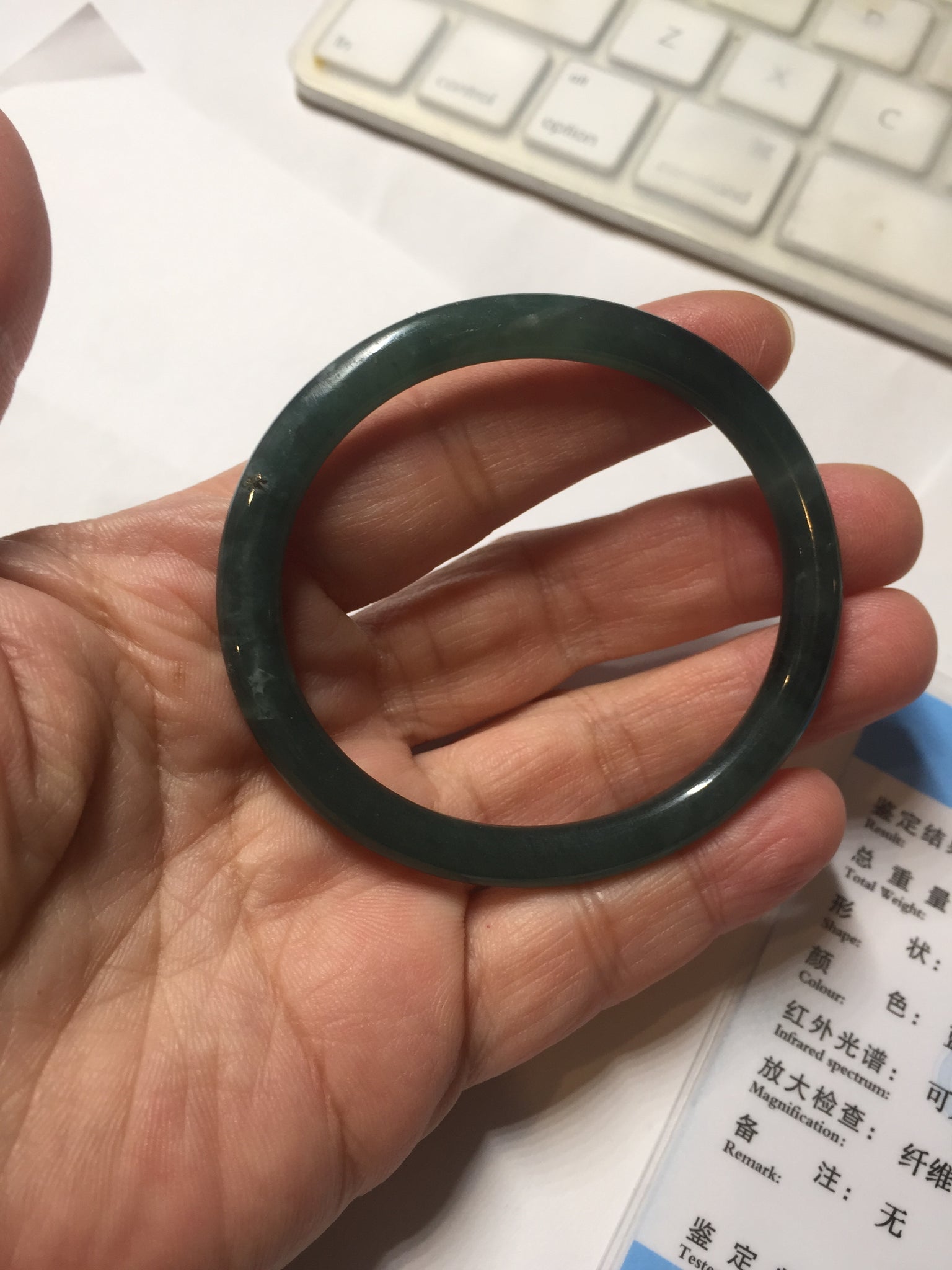 Some cotton and rough surface may with scratches or fissures. Not transparent. The bangle has some gray/ black color.