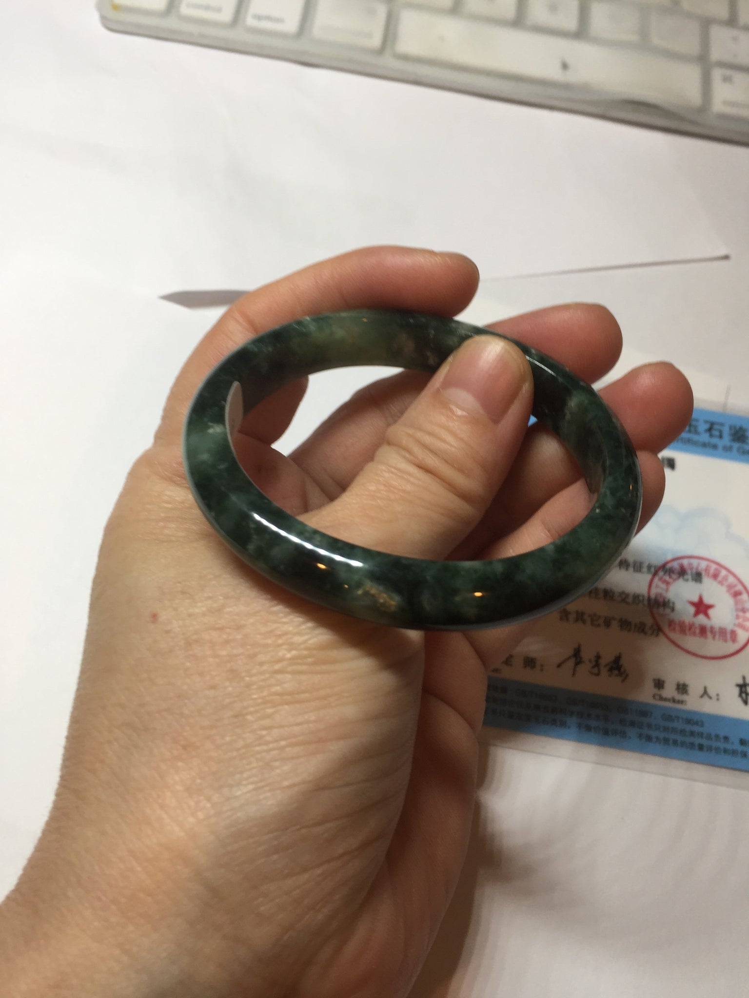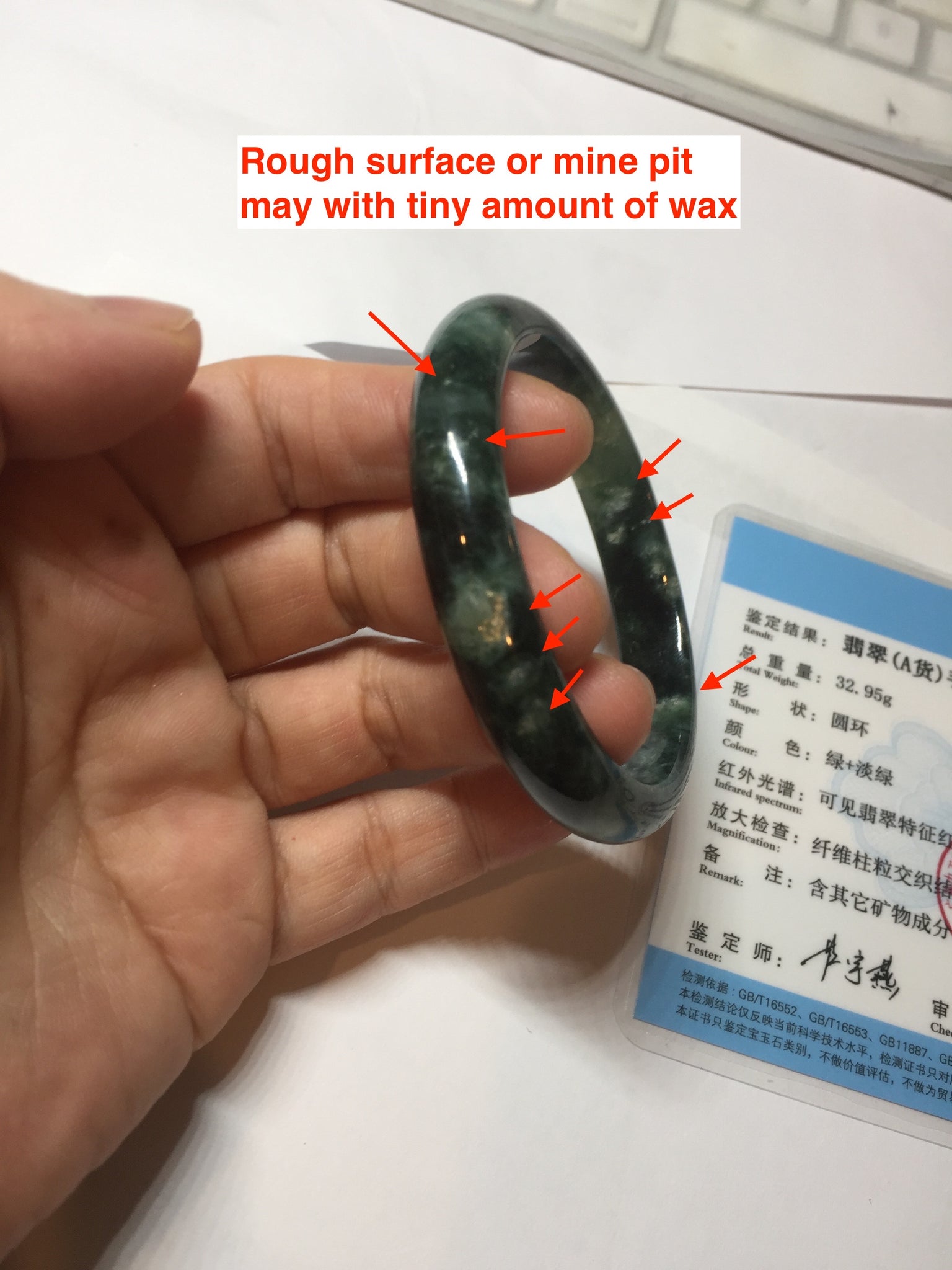 Some Rough surface or mine pit may with a tiny amount of wax. The bangle is solid. No transparent.