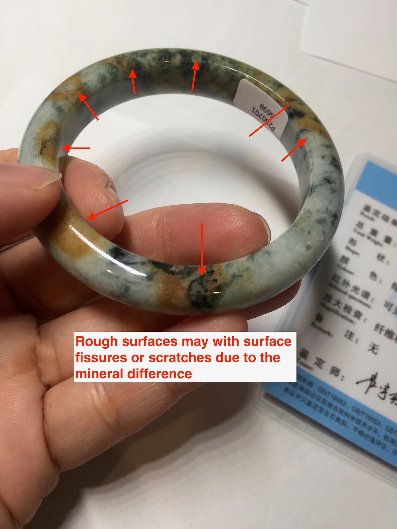 Some rough surfaces with surface scratches or fissures due to the mineral difference. The bangle is solid(Guaranteed). Some cotton lines and cotton spots. Not transparent. Not watery.