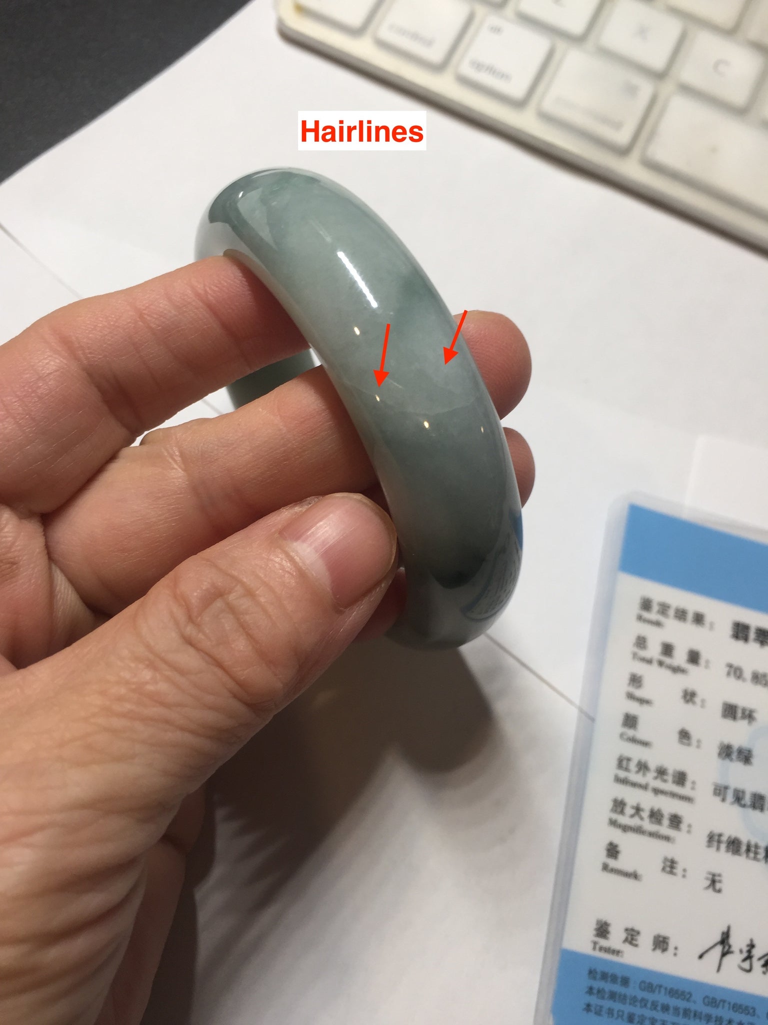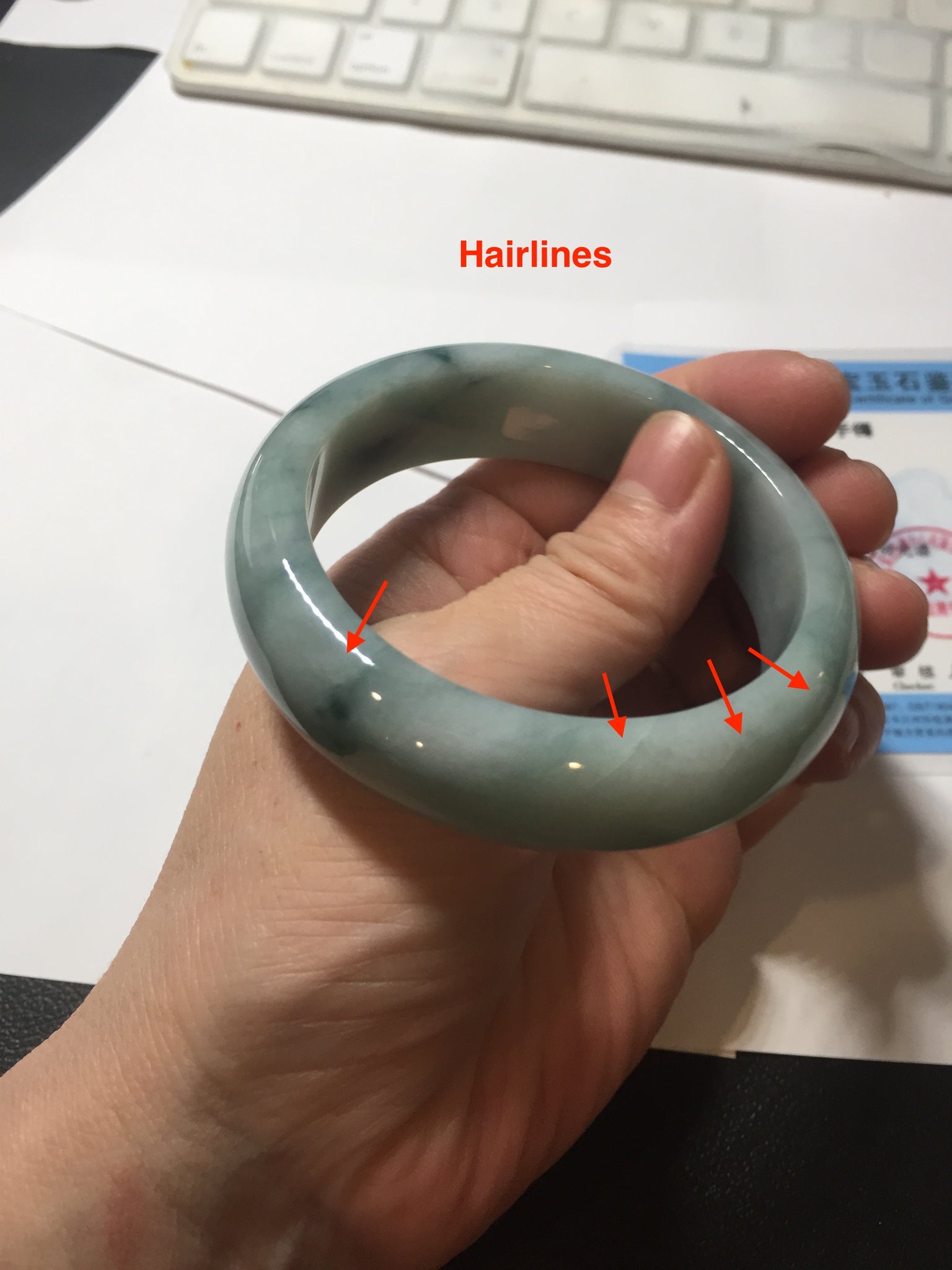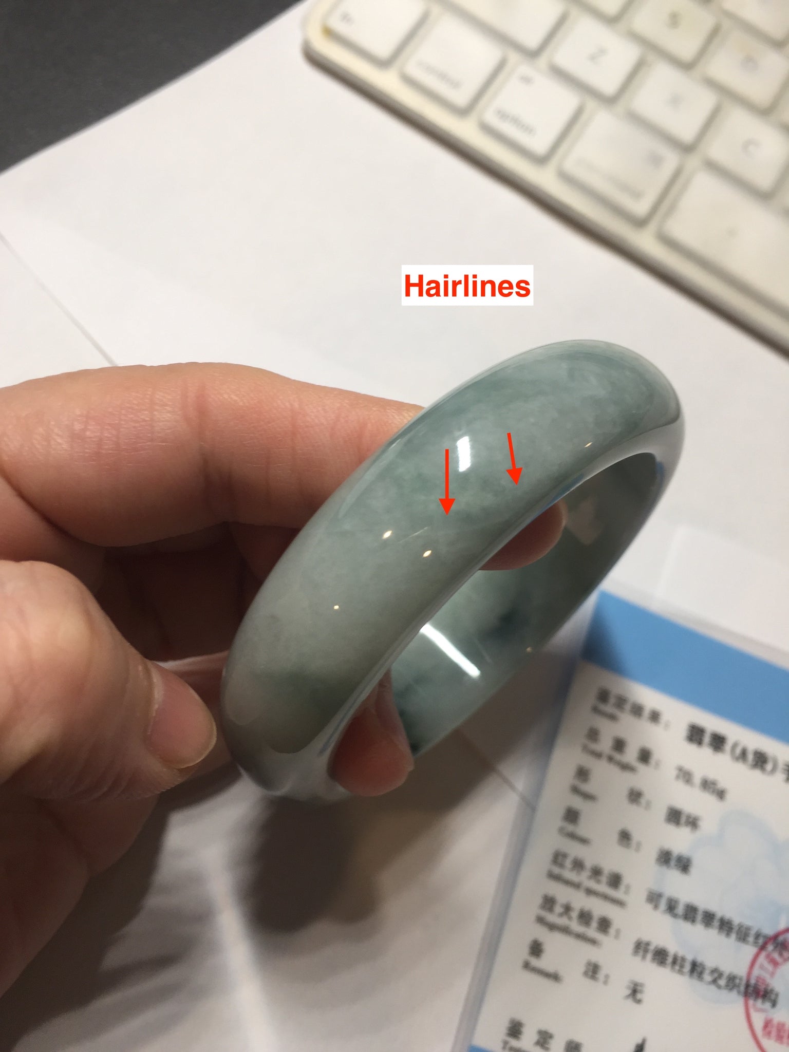 No crack. Some hairlines and cotton lines. Some cotton areas. Not transparent.