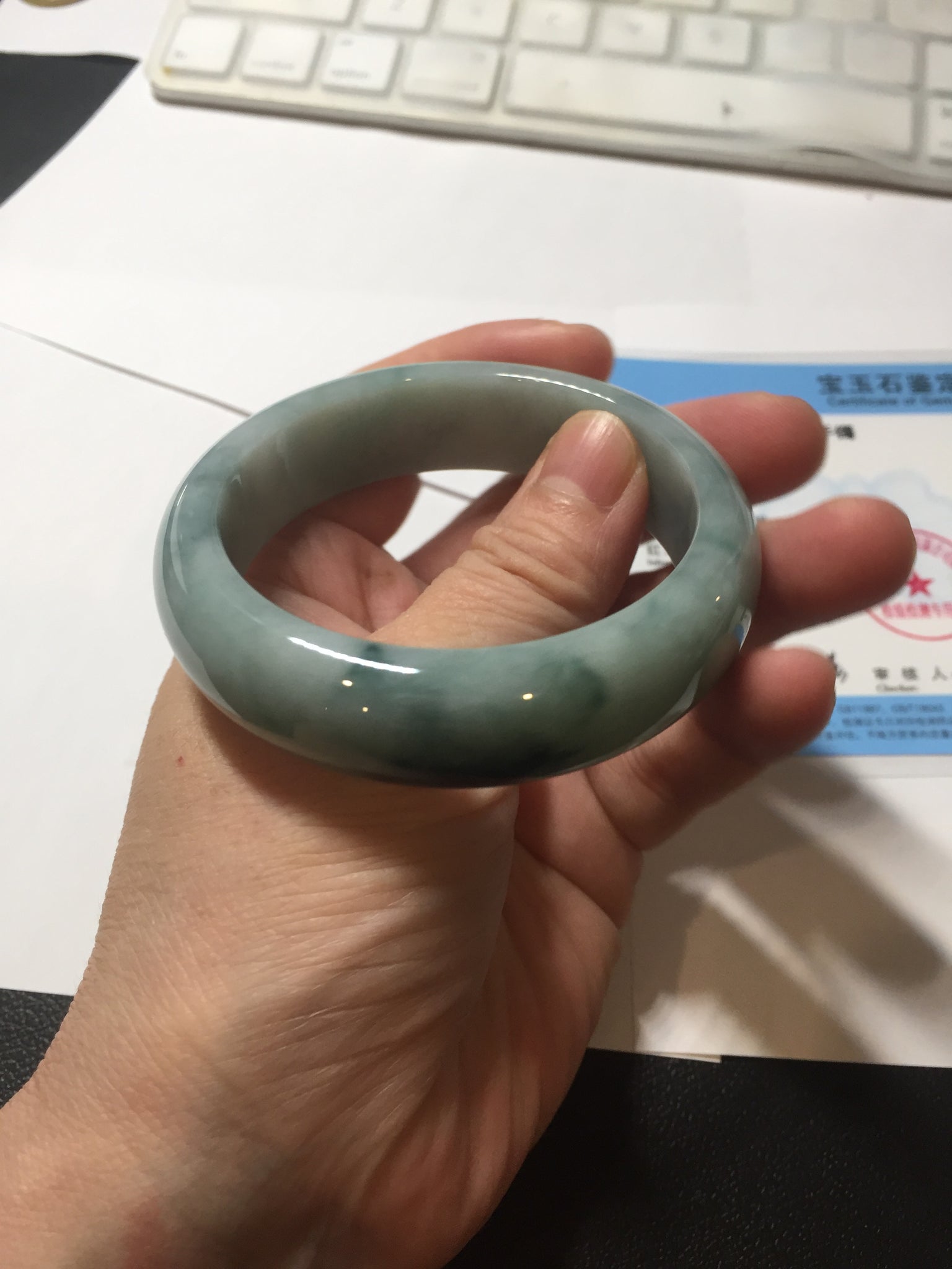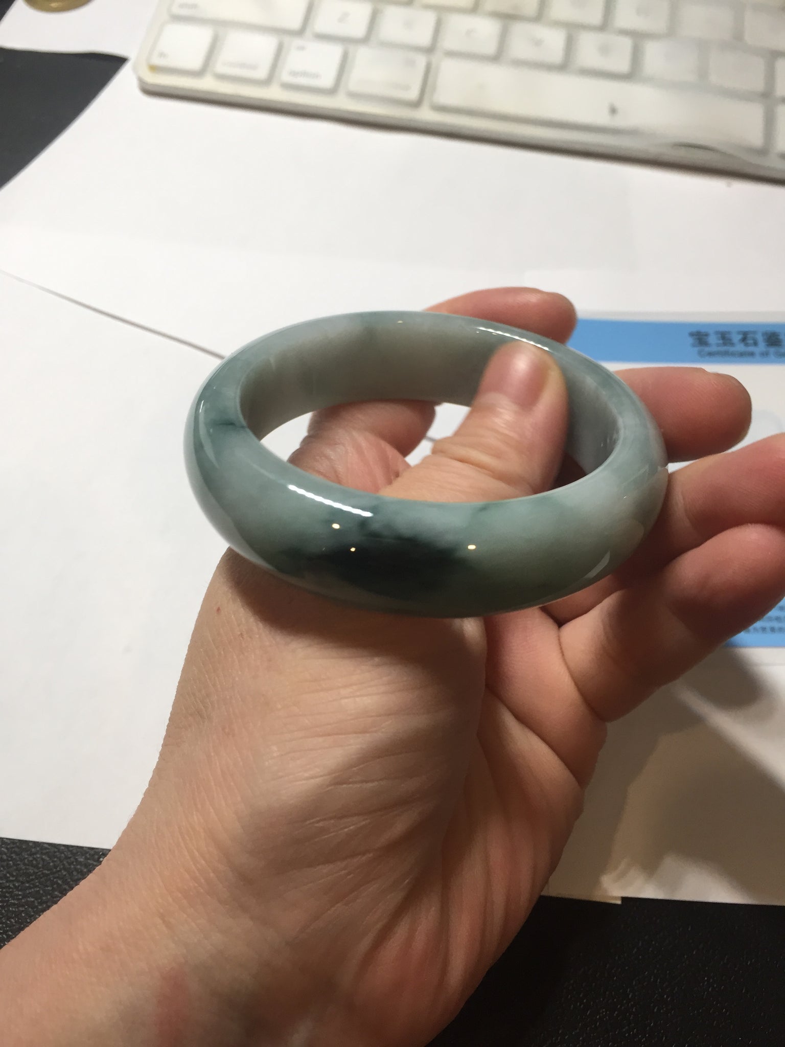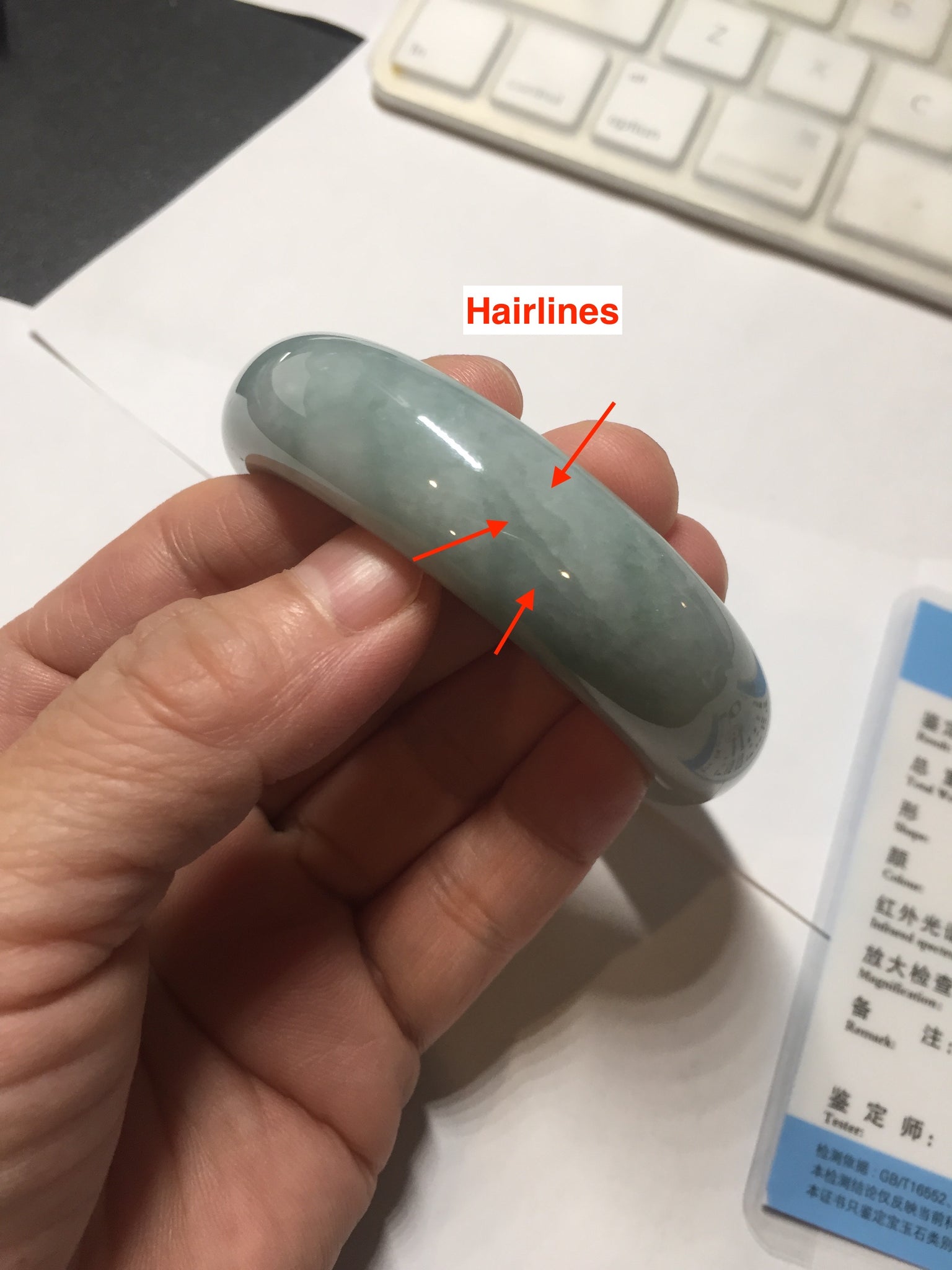 No crack. Some hairlines and cotton lines. Some cotton areas. Not transparent.