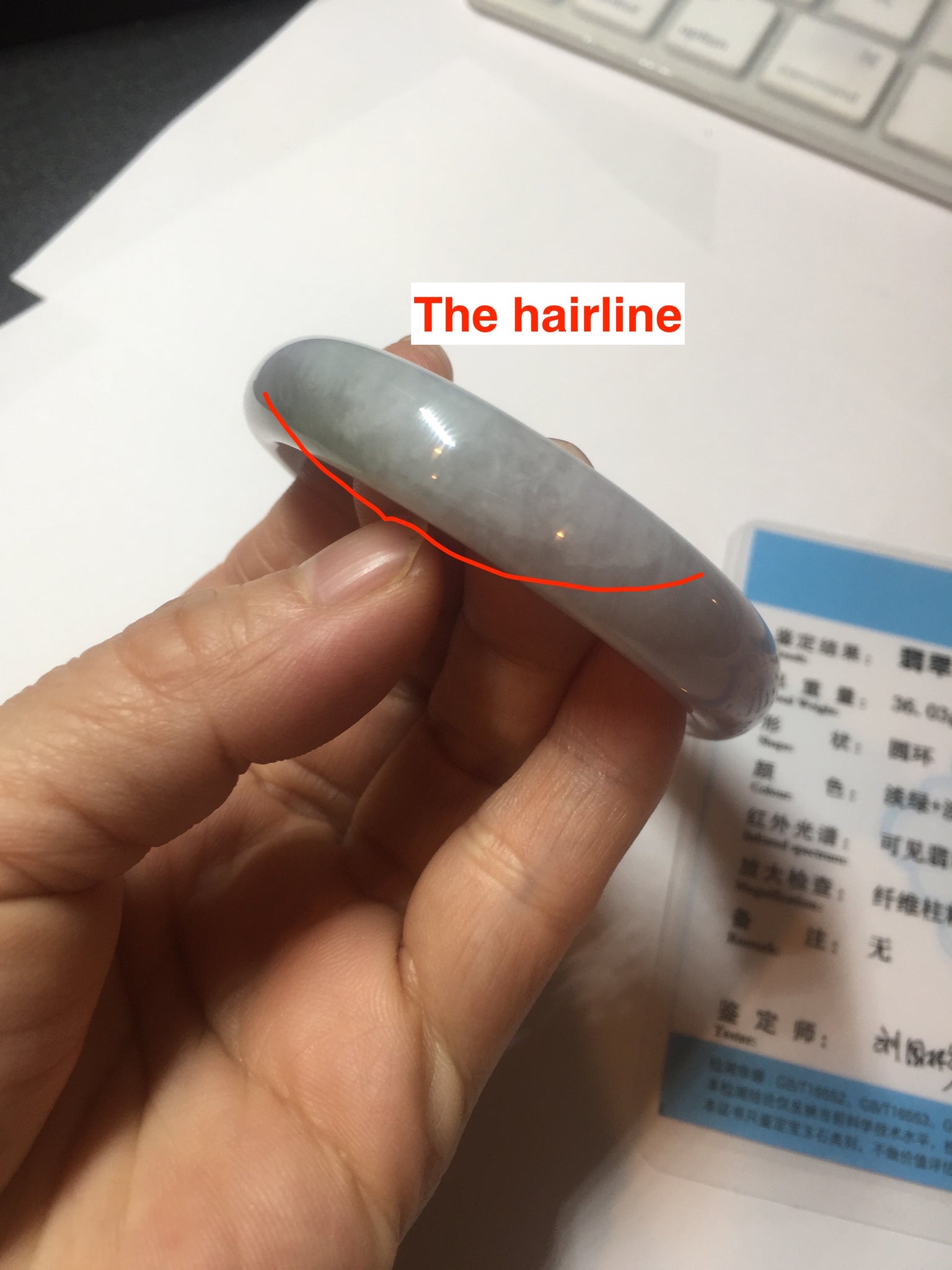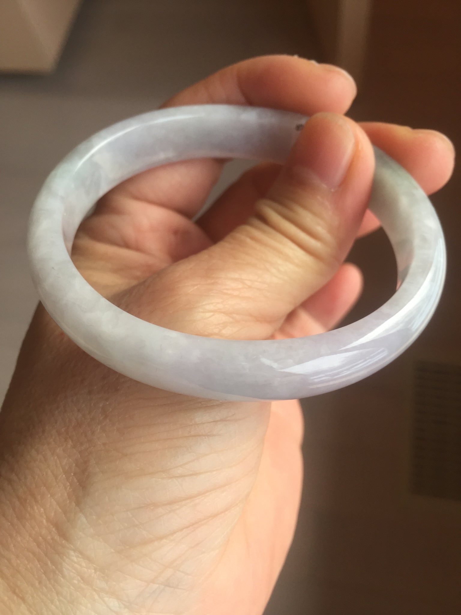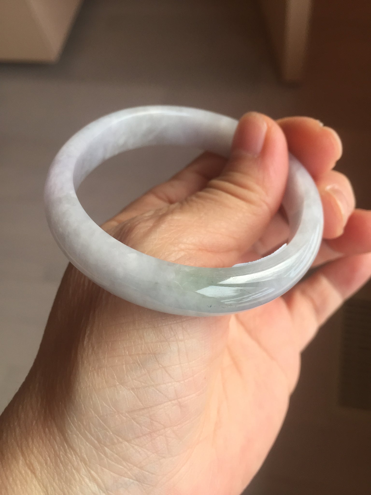 One color root crack. The bangle is solid (guaranteed!). It makes a high-pitched sound when clicked. Some hairlines, cotton lines, or cotton areas/spots. The green is a small area. The purple is super light, lighter than in the photos due to the purple color always being more camera-friendly.
