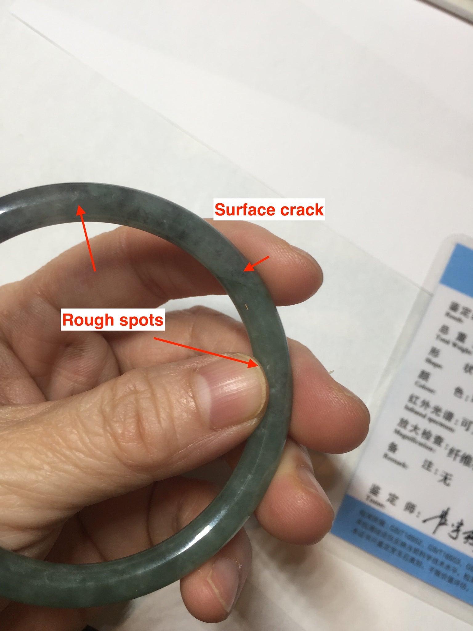 One crack. Some surface scratches and rough spots. Some cotton lines, cotton spots, and cotton areas.
