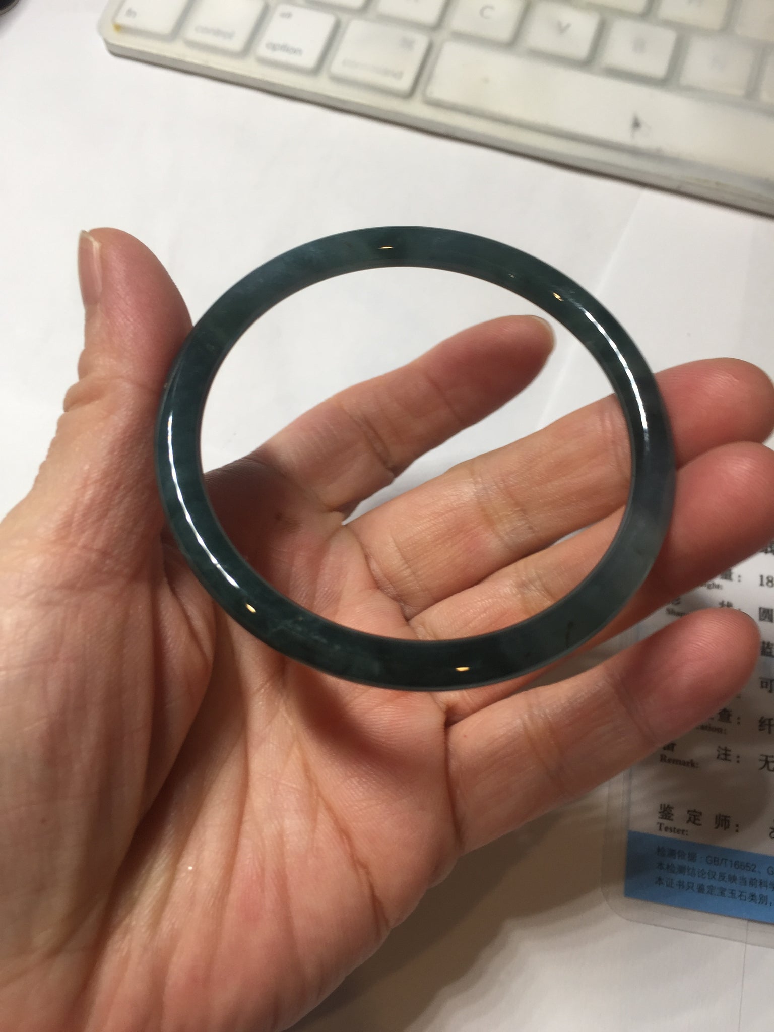 Some surface cracks. Some cotton areas, cotton lines, and cotton spots. Not transparent . The bangle has some gray/ black color.