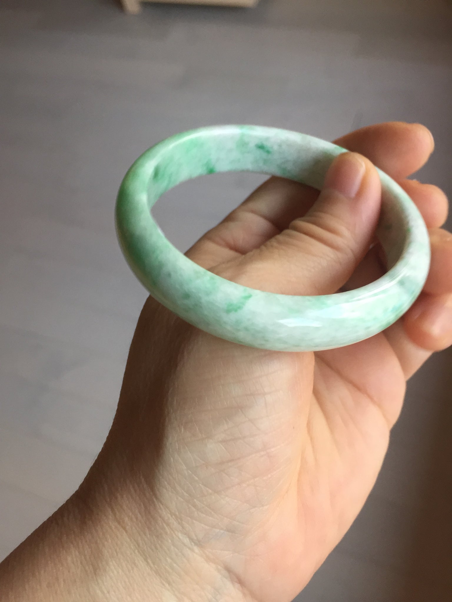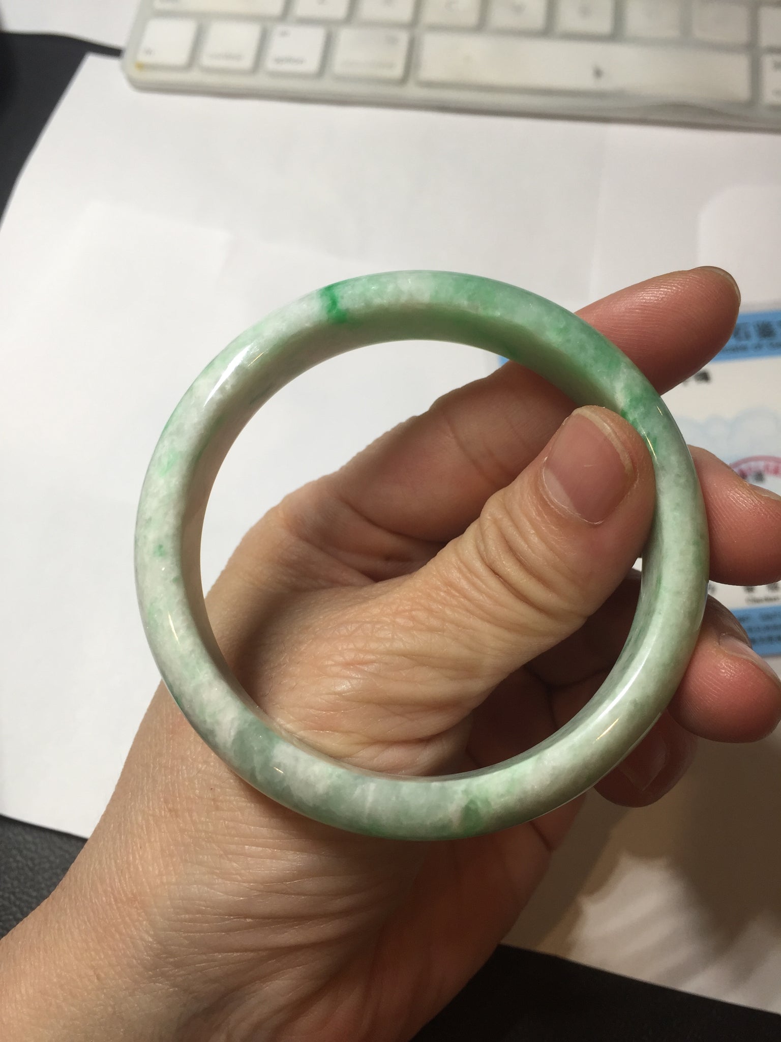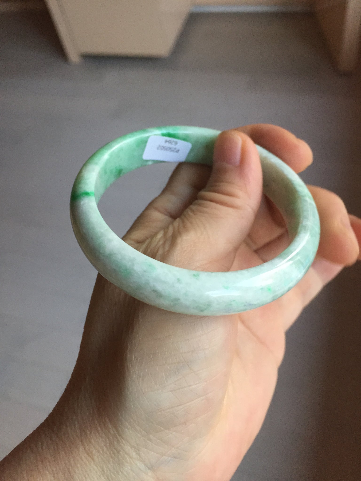 56mm certified 100% natural Type A sunny green white jadeite bangle PD147-6264