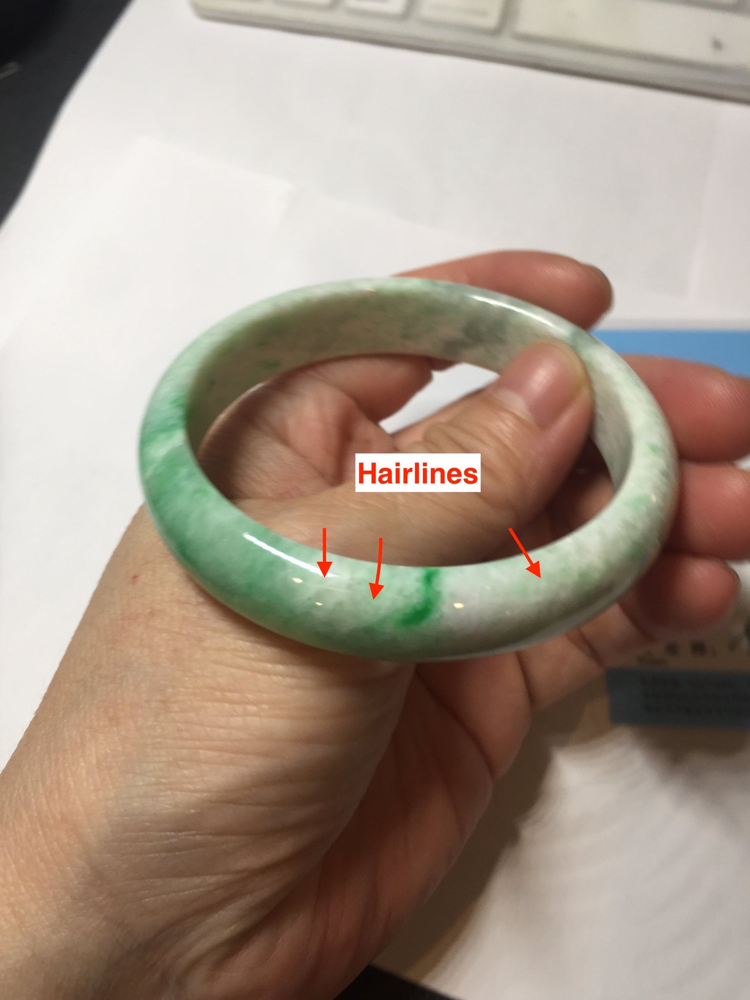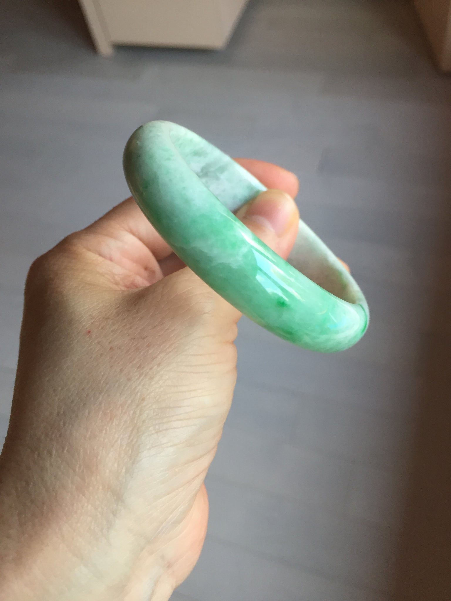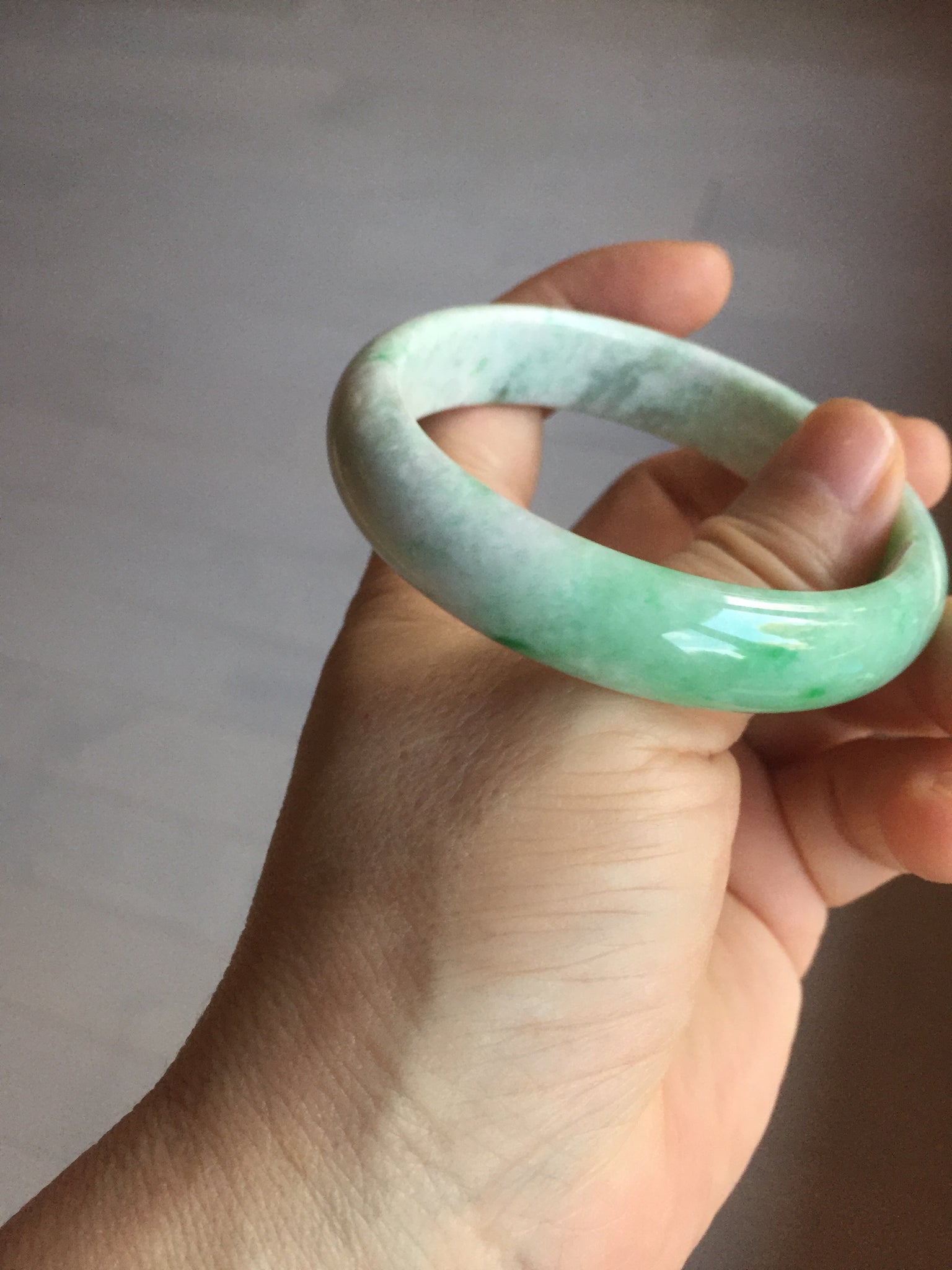 56mm certified 100% natural Type A sunny green white jadeite bangle PD147-6264