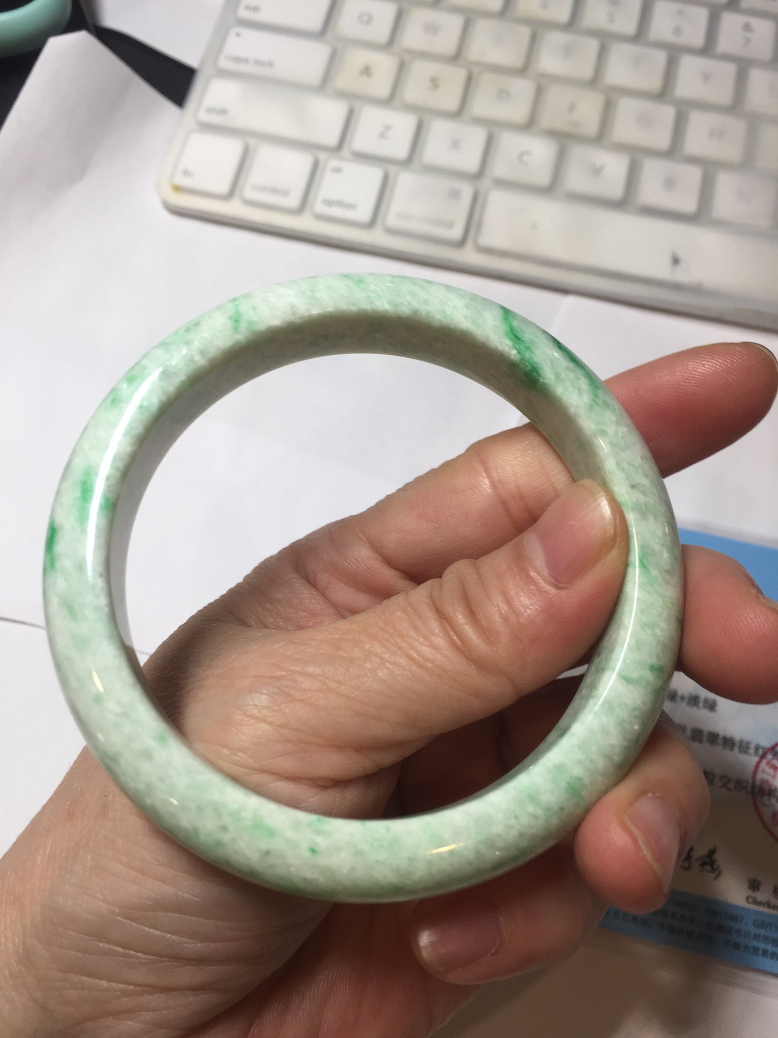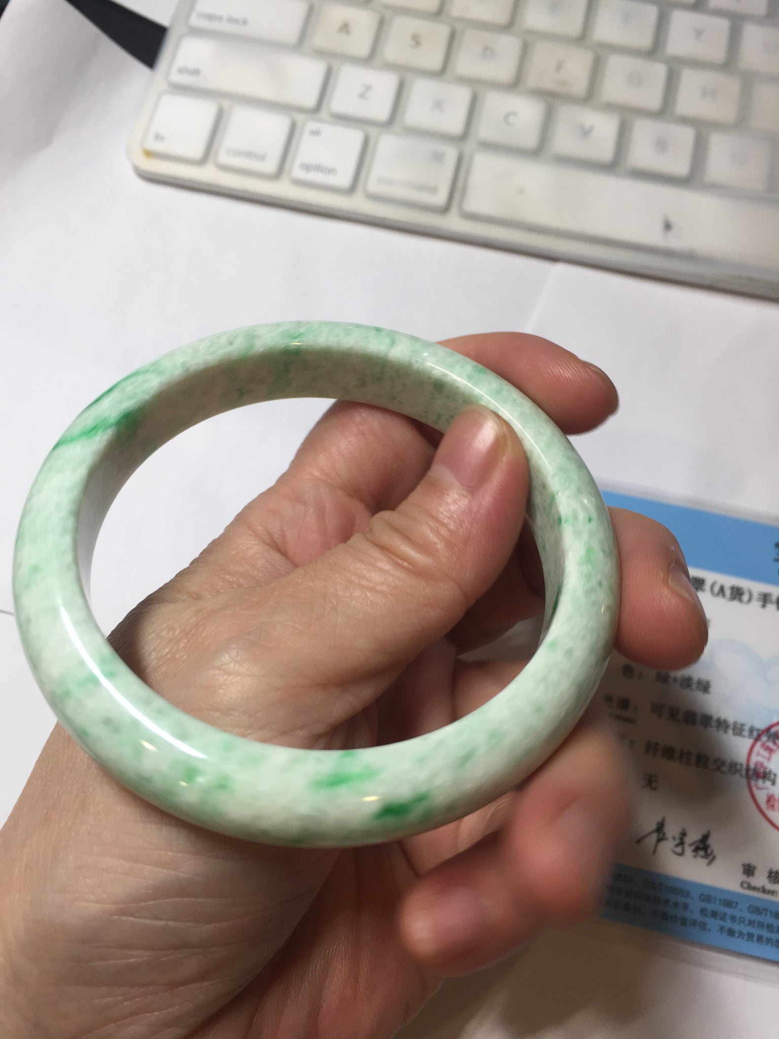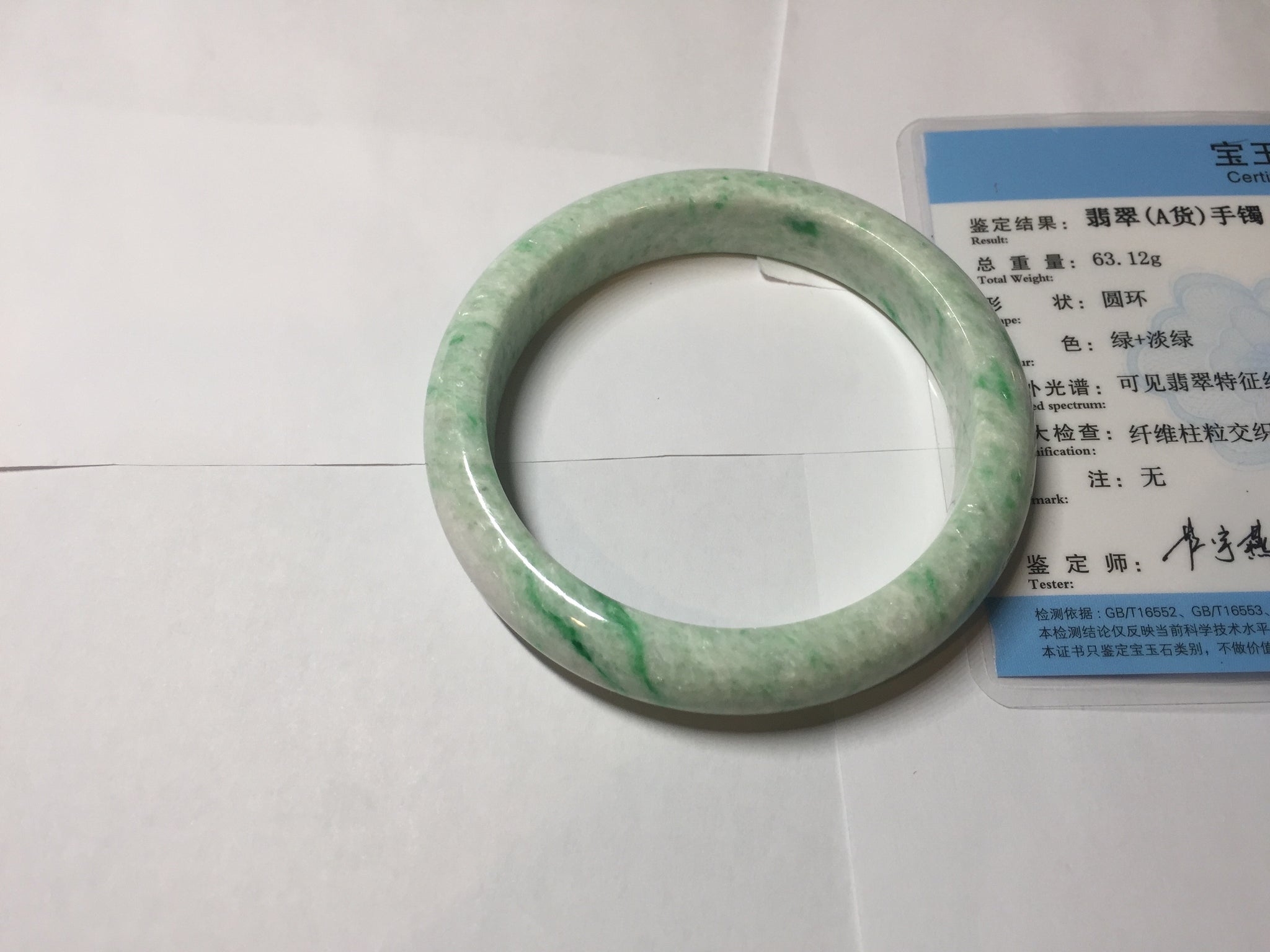 56mm certified 100% natural Type A sunny green white jadeite bangle PD149-6261