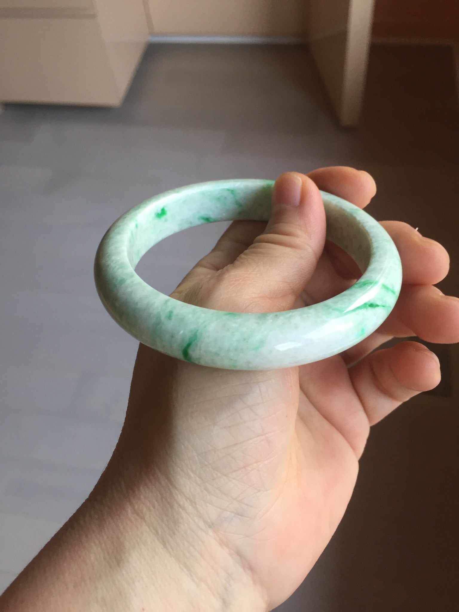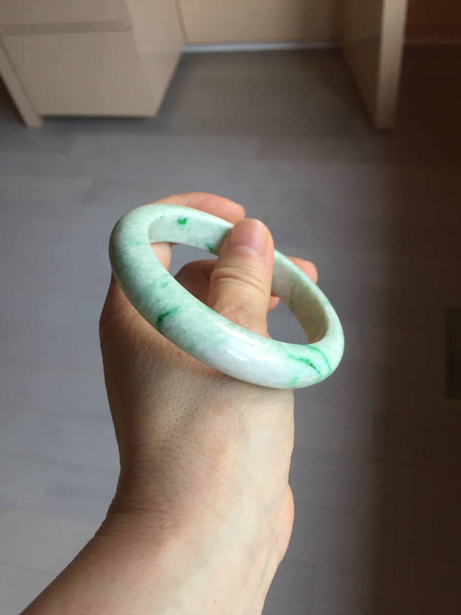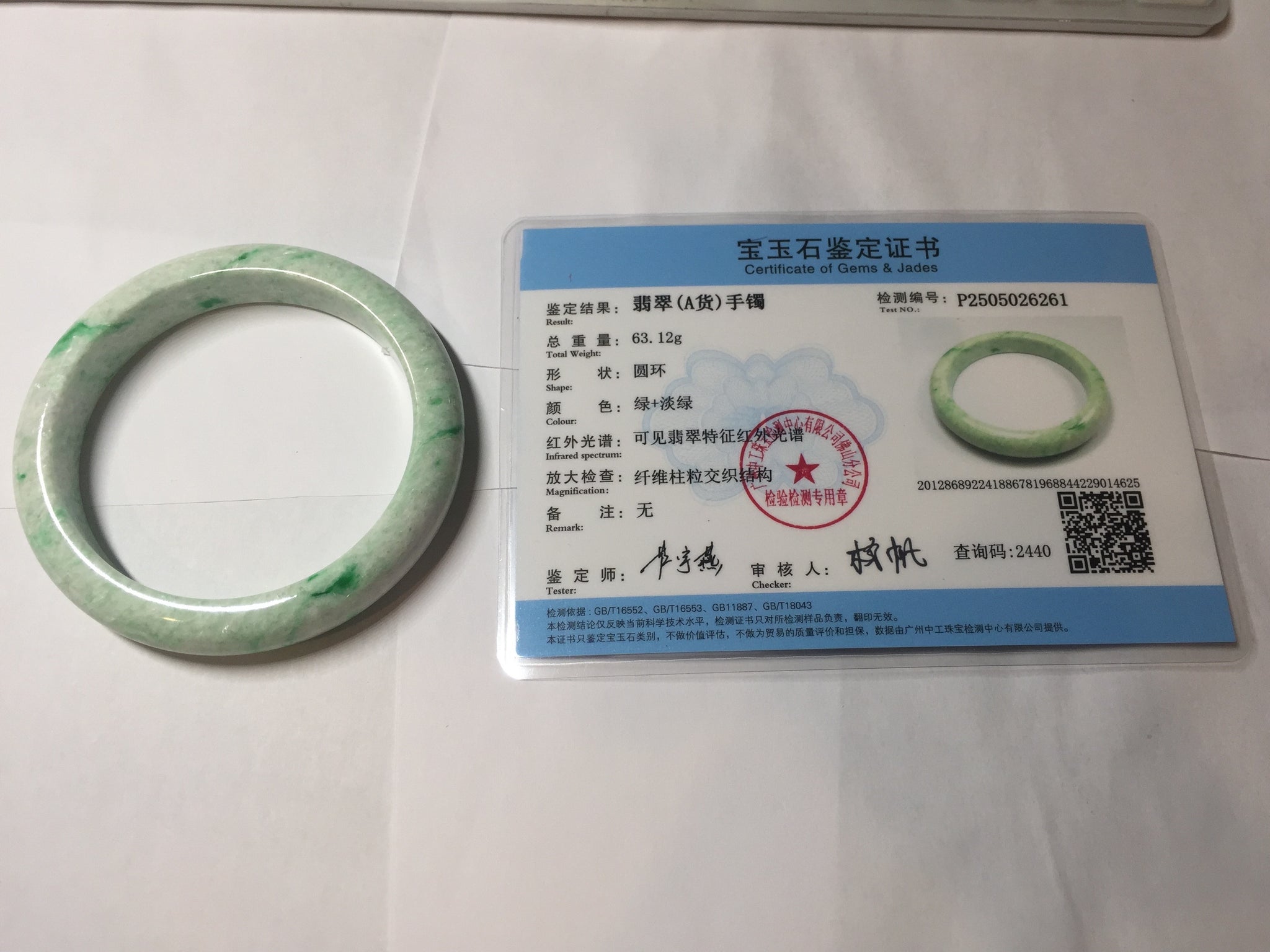 56mm certified 100% natural Type A sunny green white jadeite bangle PD149-6261