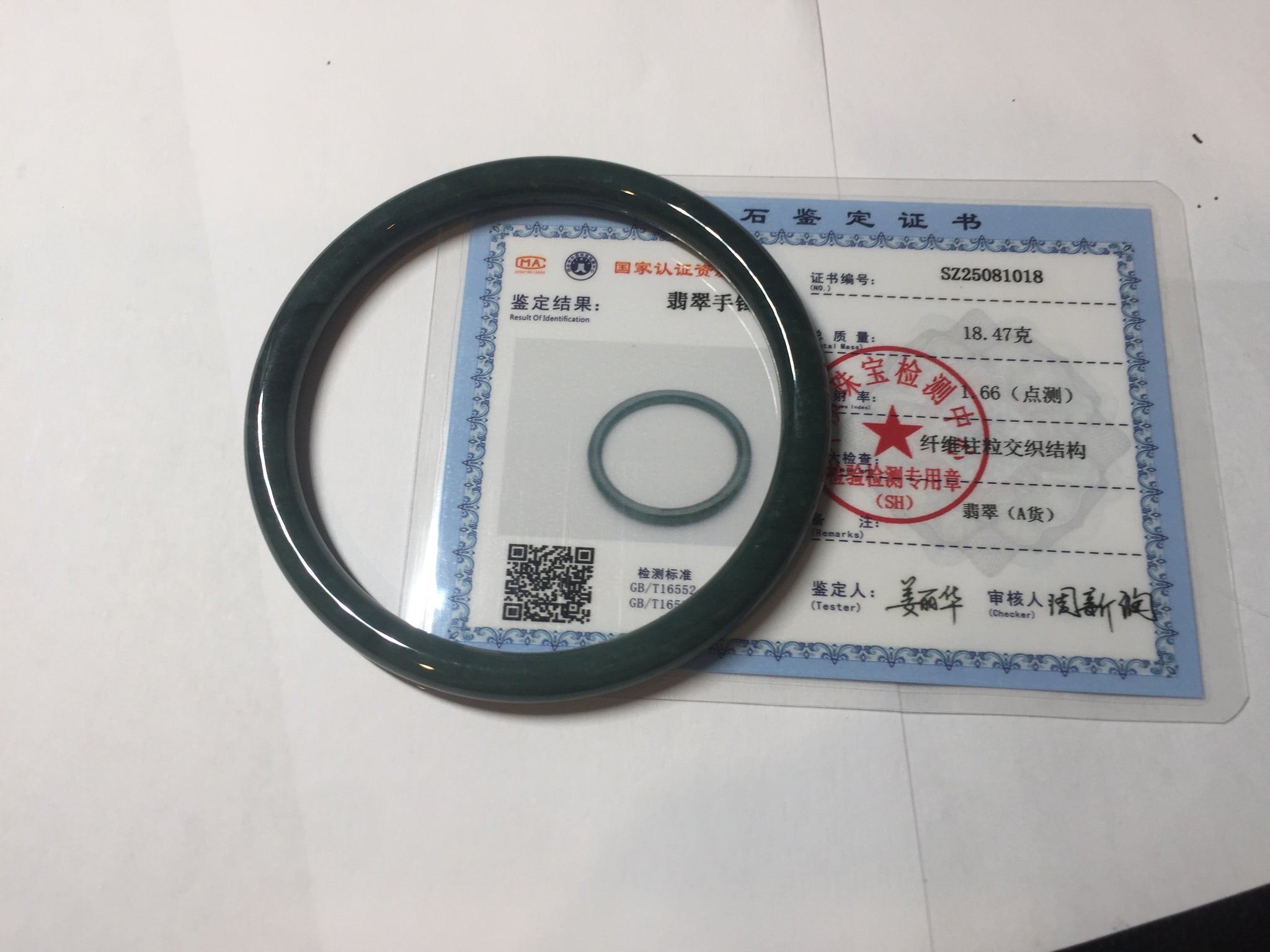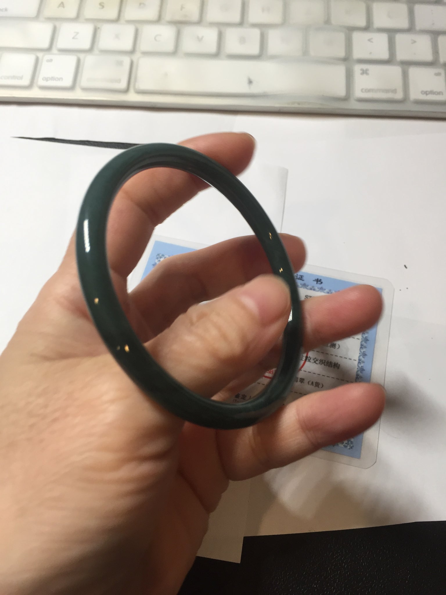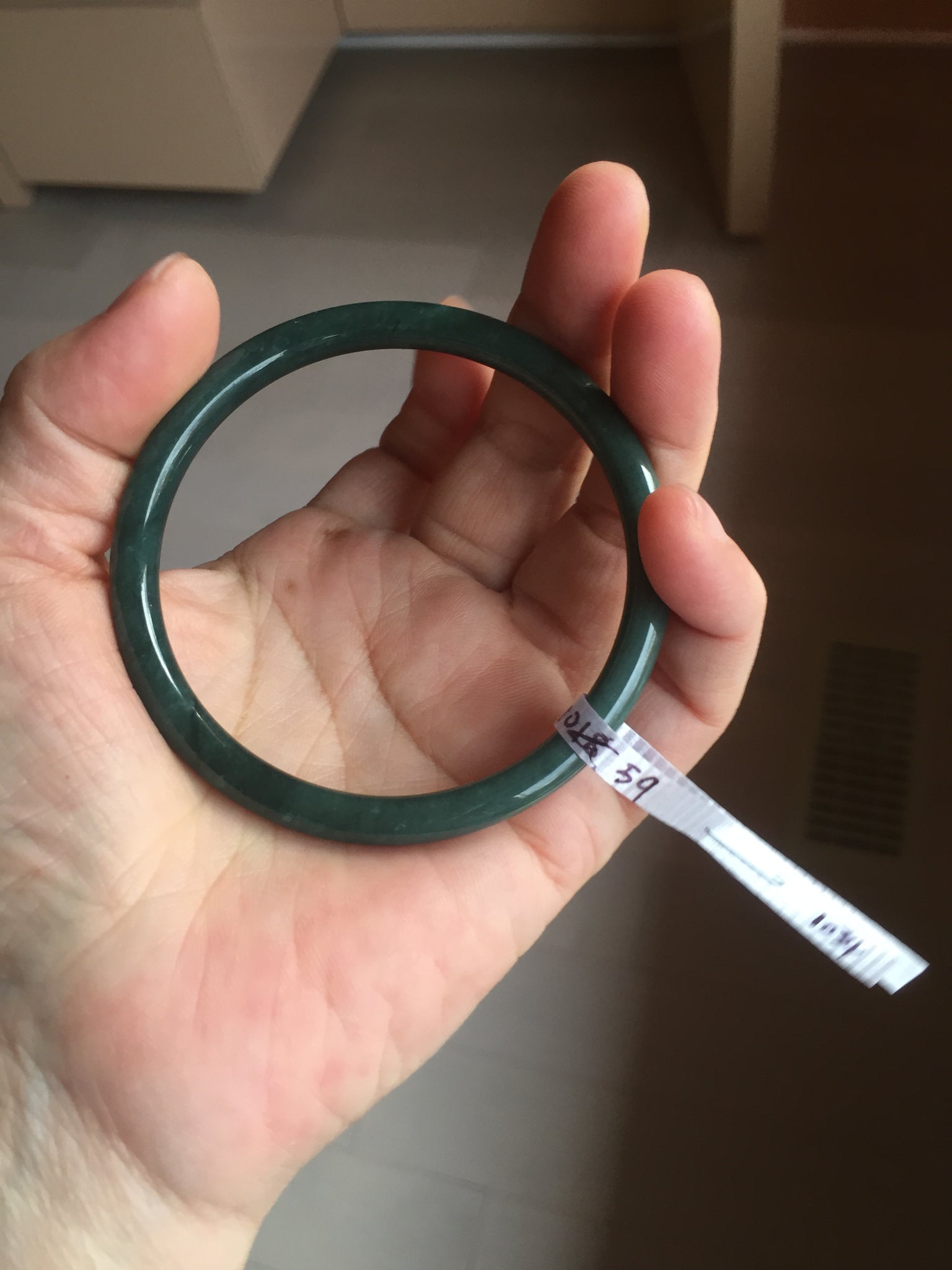 No crack. No hairline. Some cotton areas, cotton lines, and cotton spots. Not transparent . The bangle has some gray/ black color.