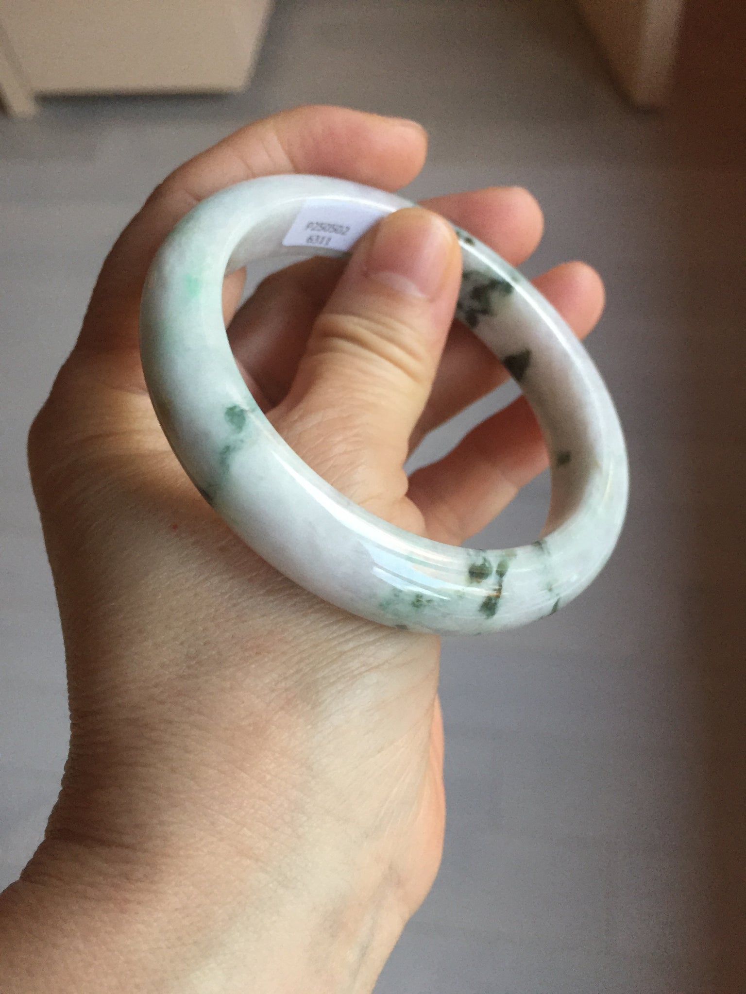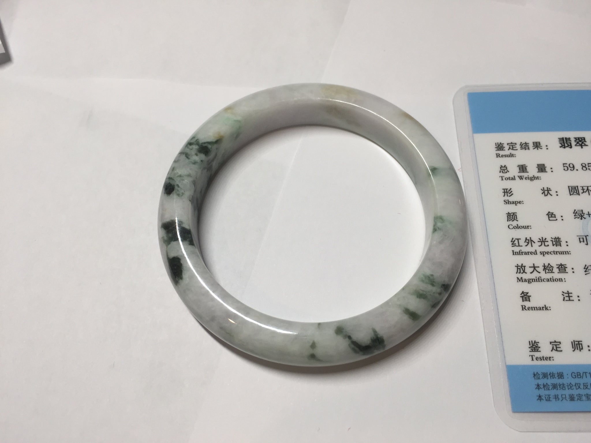 57.7mm certified 100% natural green/purple/brown(Fu Lu SHOU) with green floating flowers jadeite jade bangle PD141-6311