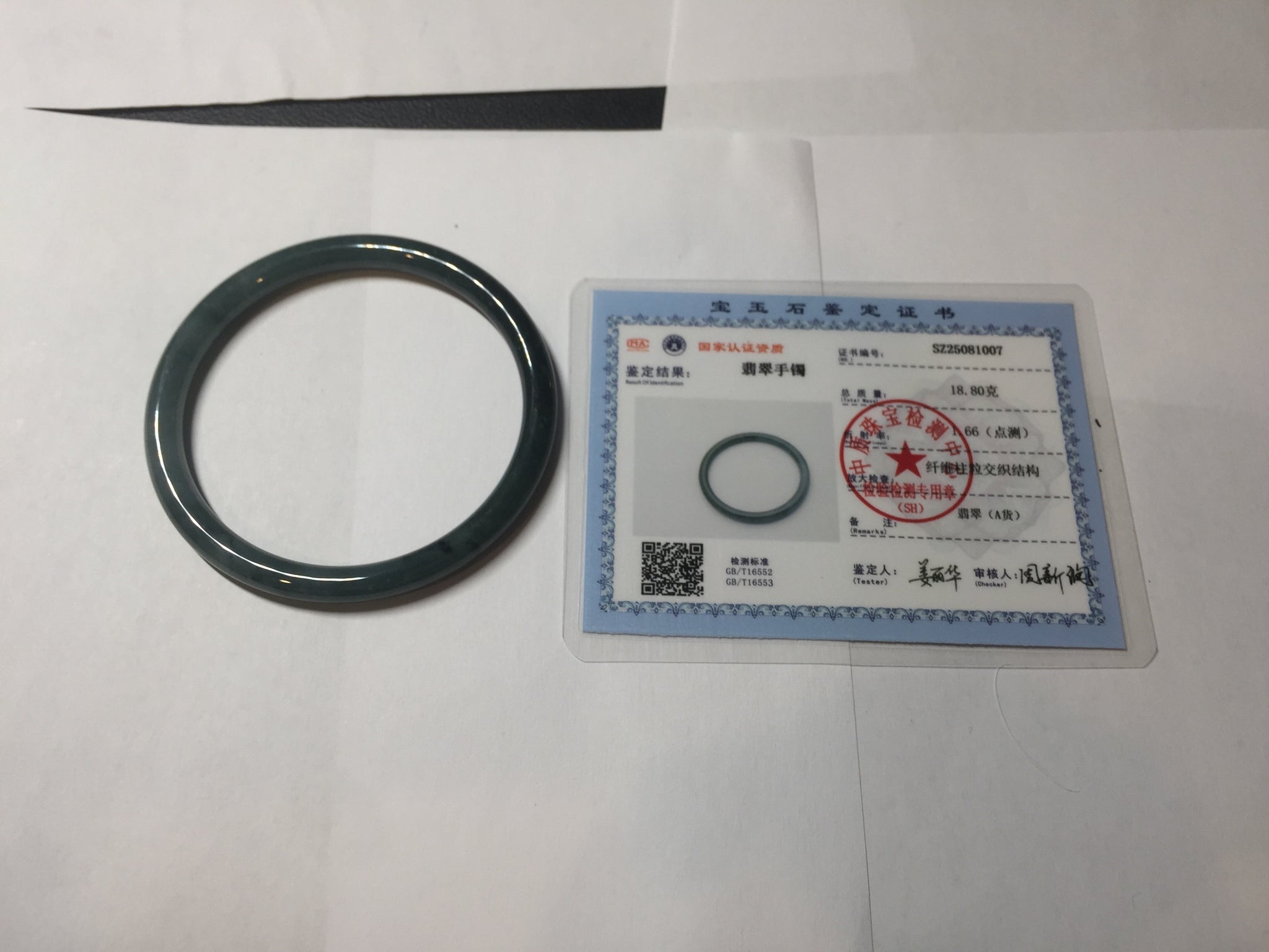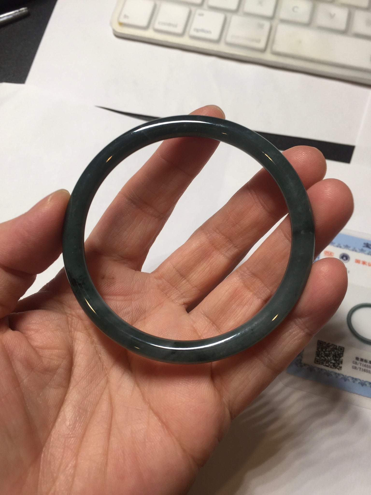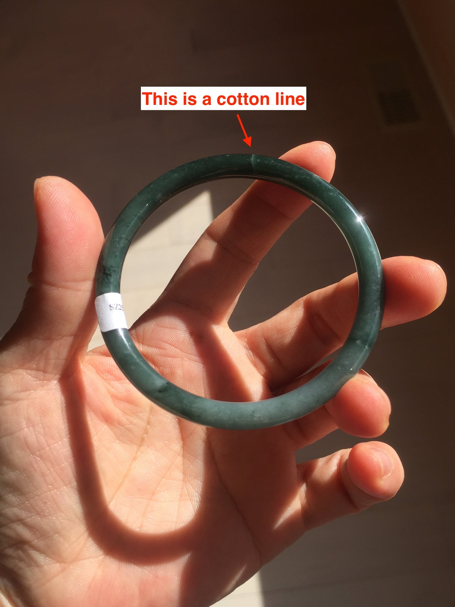 No crack. Some cotton areas, cotton lines, and cotton spots. Not transparent The bangle has some gray/ black color.