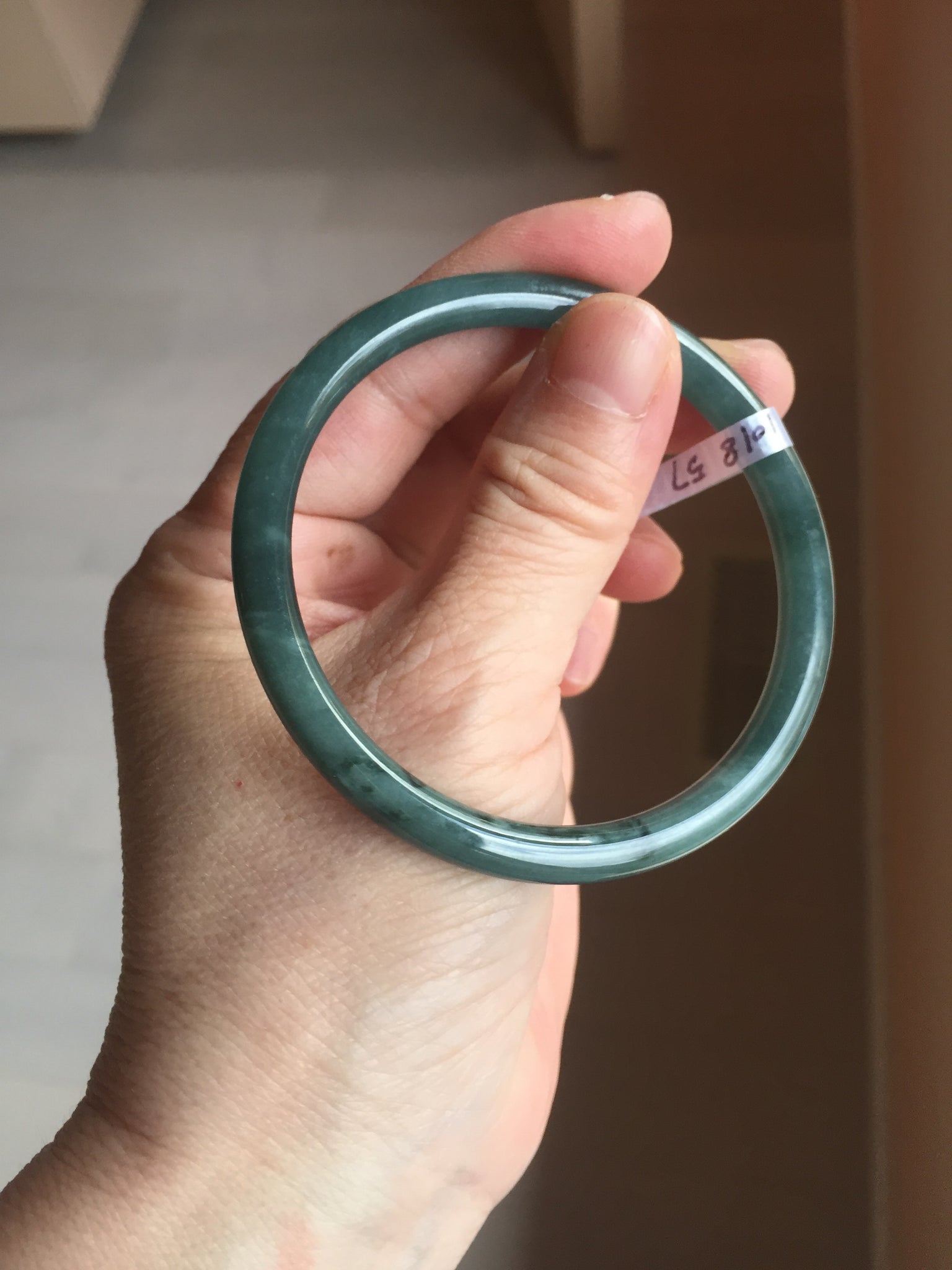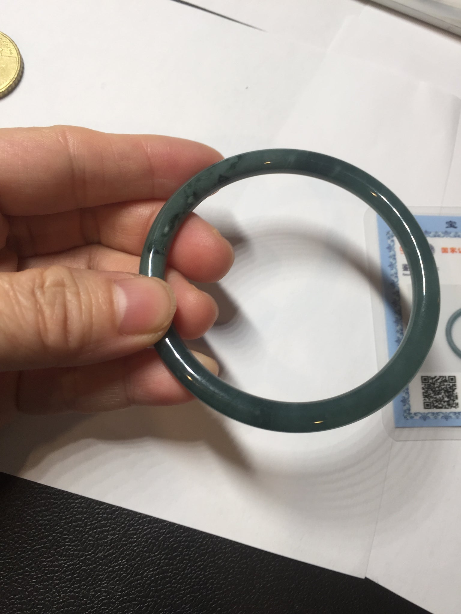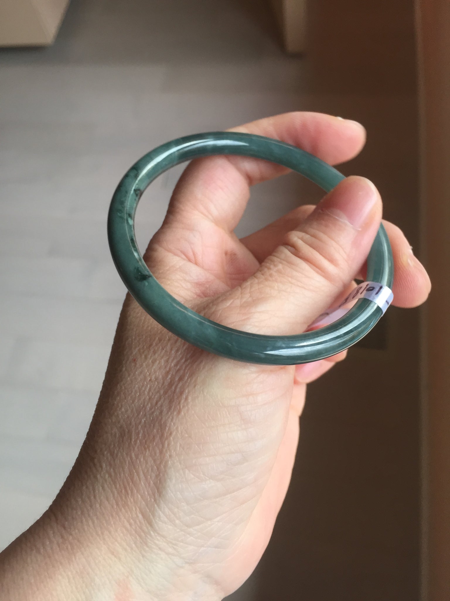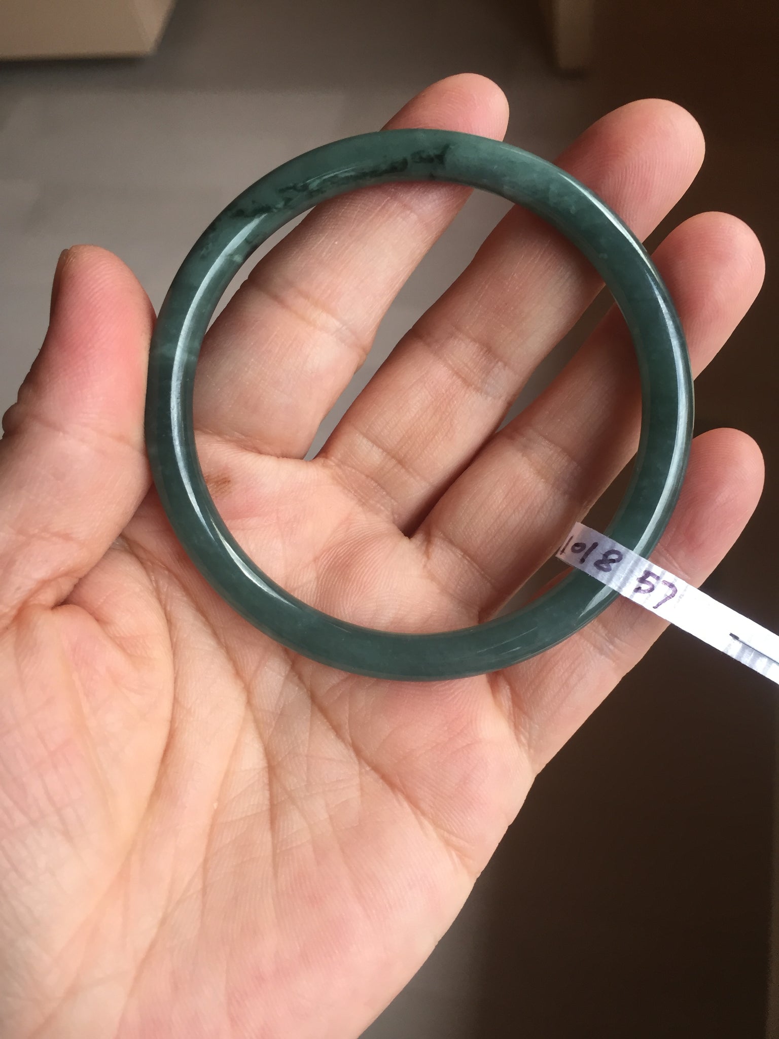 57mm Certified Type A 100% Natural light green/blue/gray with black floating flowers Guatemala slim round cut Jadeite bangle BP213-1018