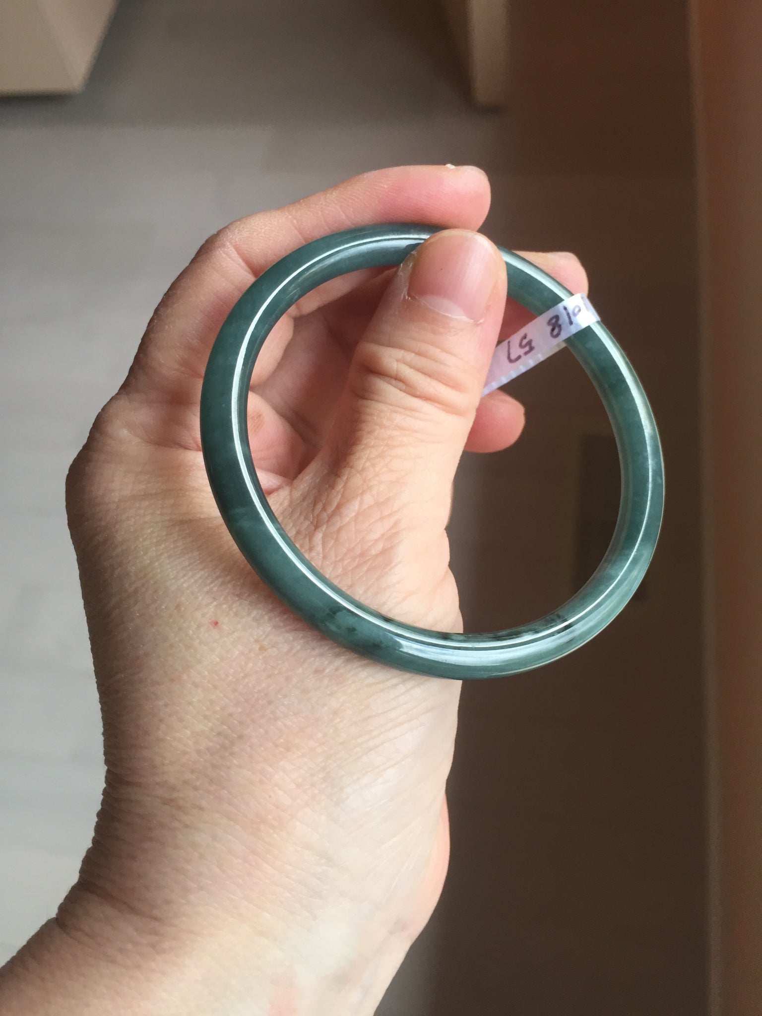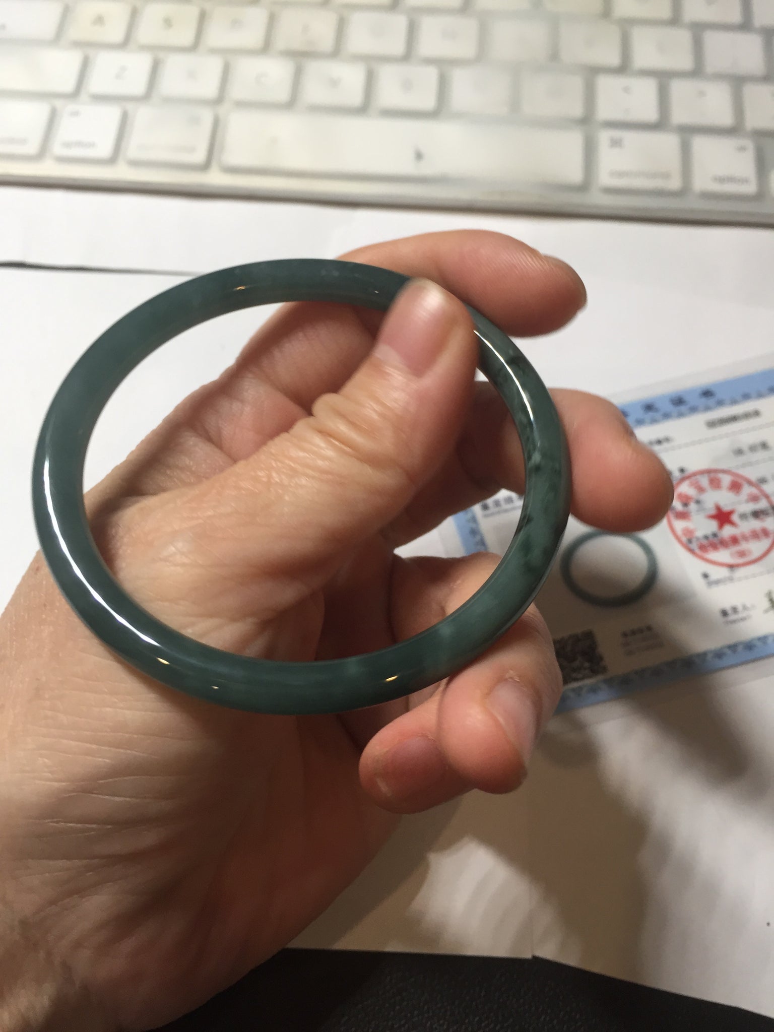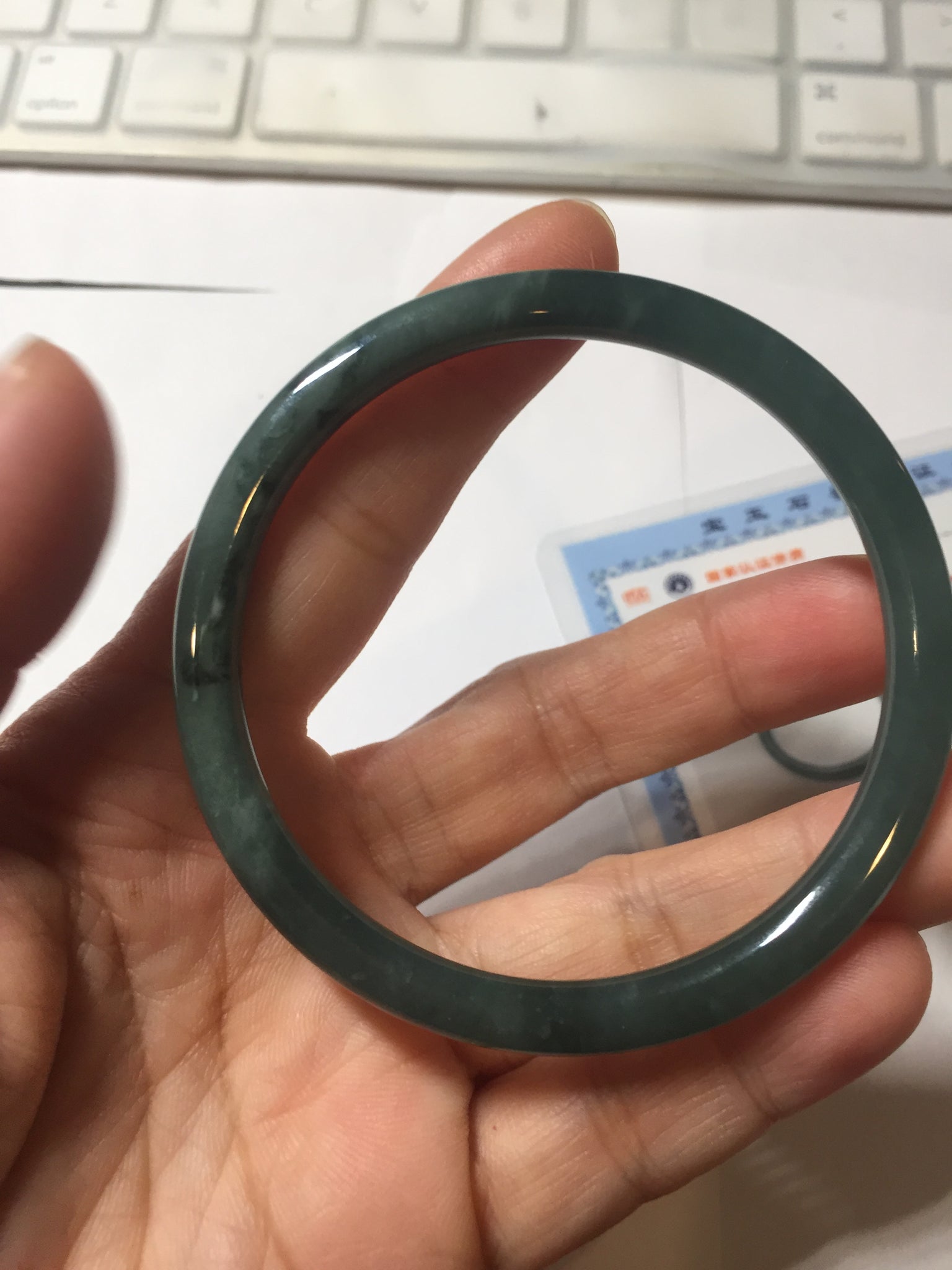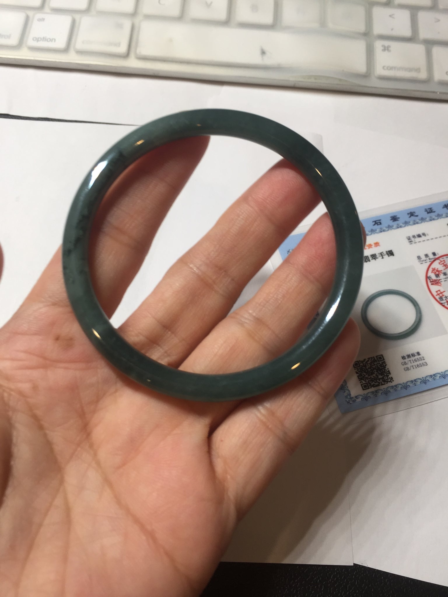 57mm Certified Type A 100% Natural light green/blue/gray with black floating flowers Guatemala slim round cut Jadeite bangle BP213-1018