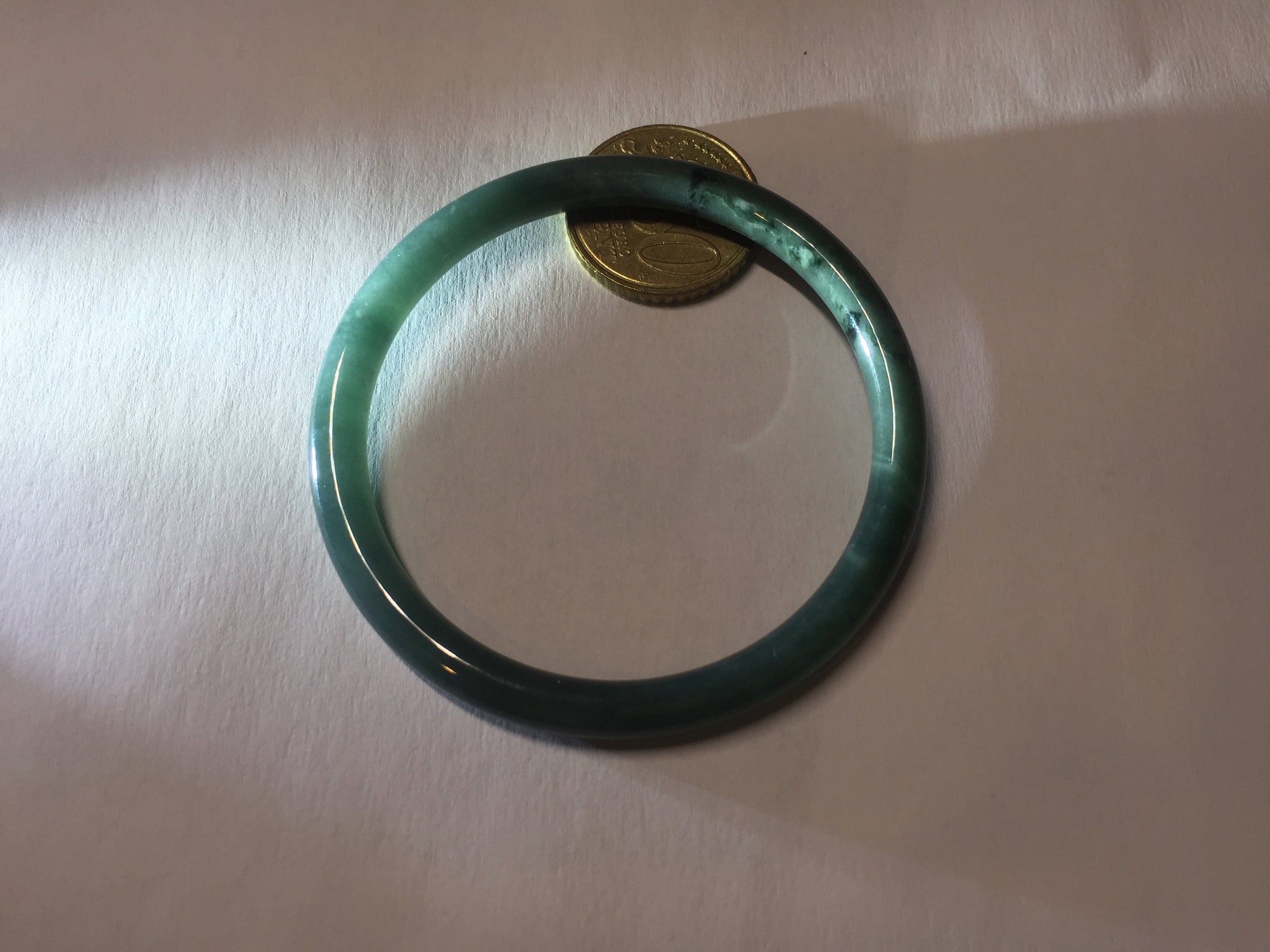 No crack. No hairline. Some black floating flowers. Some cotton areas, cotton lines, and cotton spots. Not transparent. The bangle has some gray/ black color.