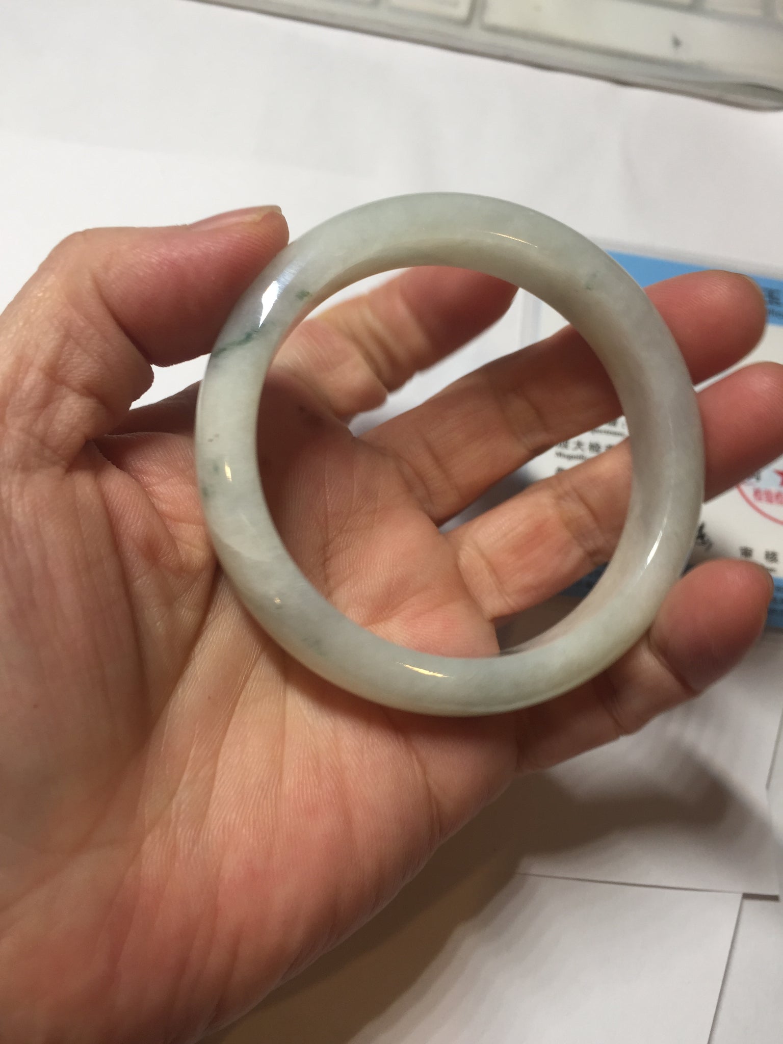 Some cracks. One is an around the bangle. The bangle is solid. Yellow rough surface. Some color roots, cotton lines, cotton areas, and cotton spots. porcelain background. Not transparent.
