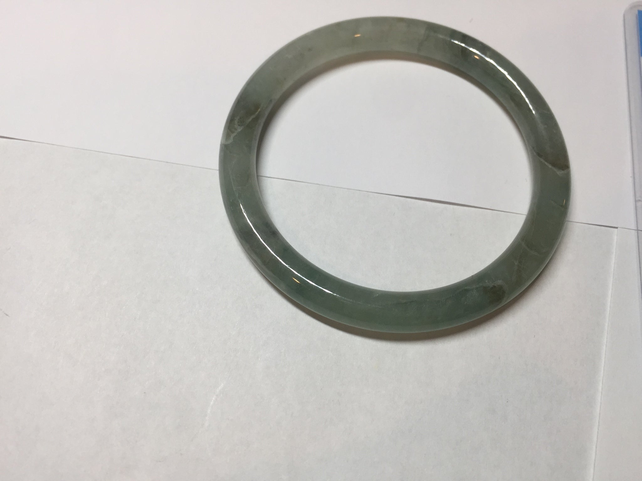55mm Certified Type A 100% Natural icy watery light green/dark green/black round cut Jadeite bangle PD109-8541