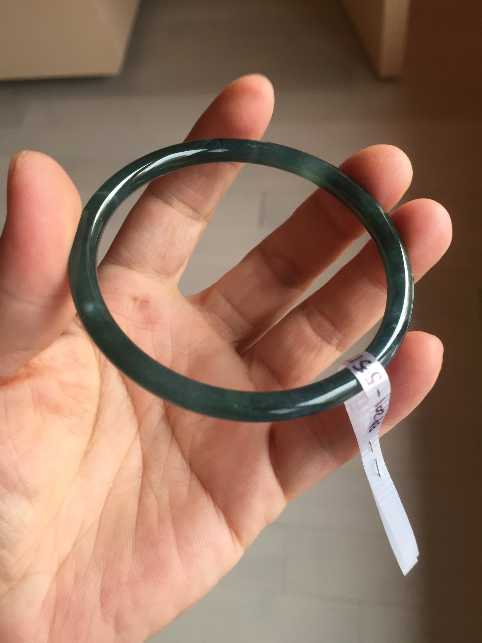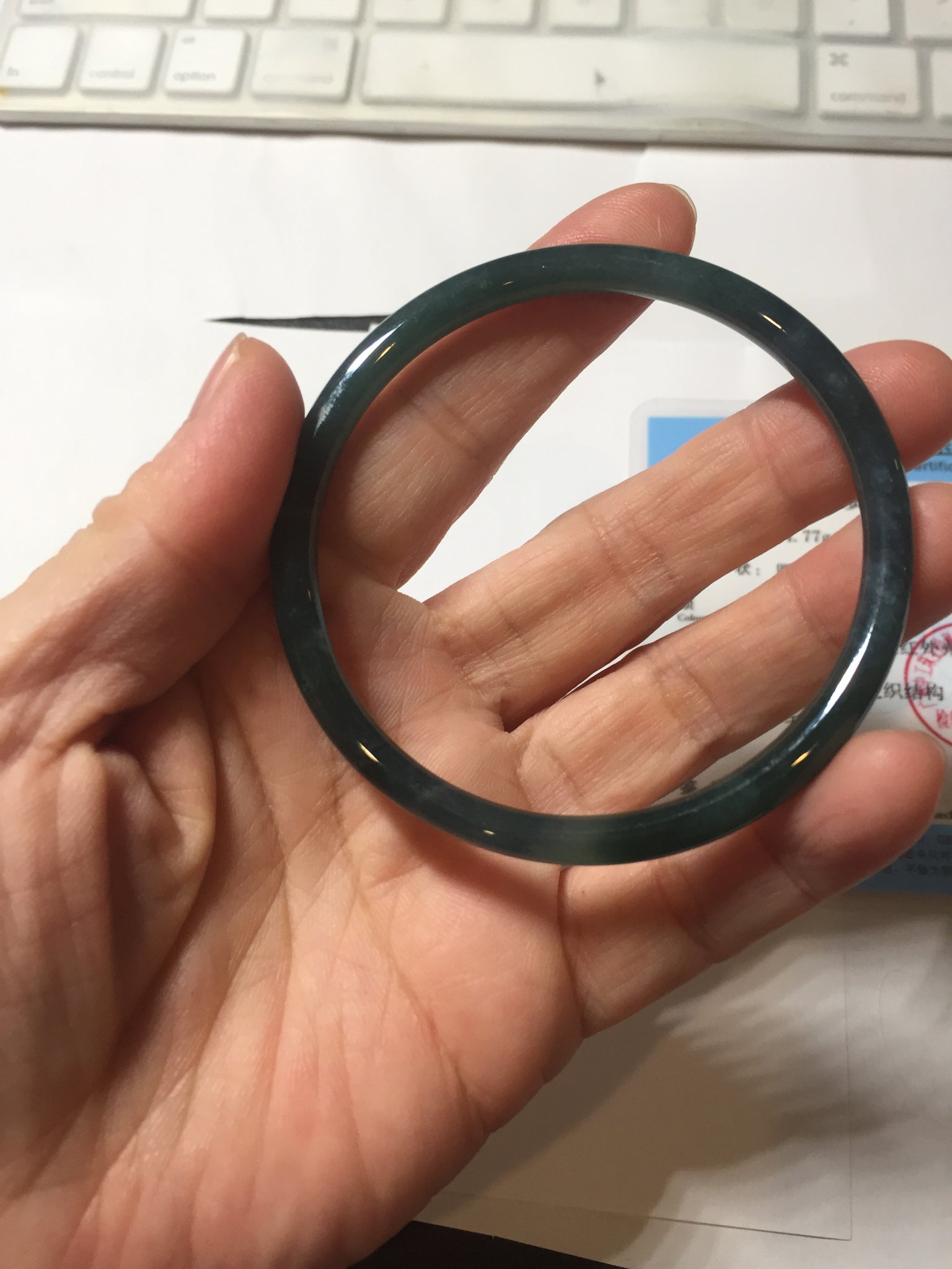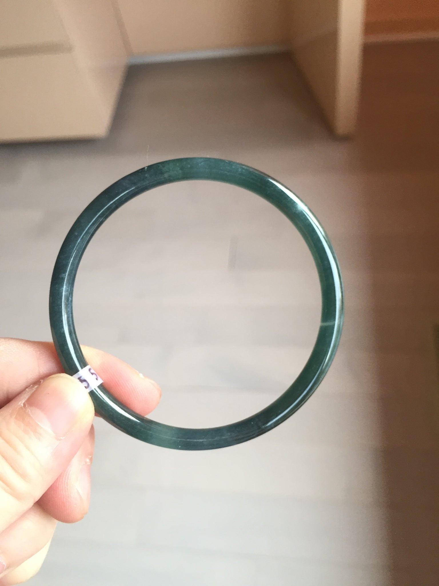 No crack. No hairline. Some cotton areas, cotton lines, and cotton spots. Not transparent . The bangle has some gray/ black color.