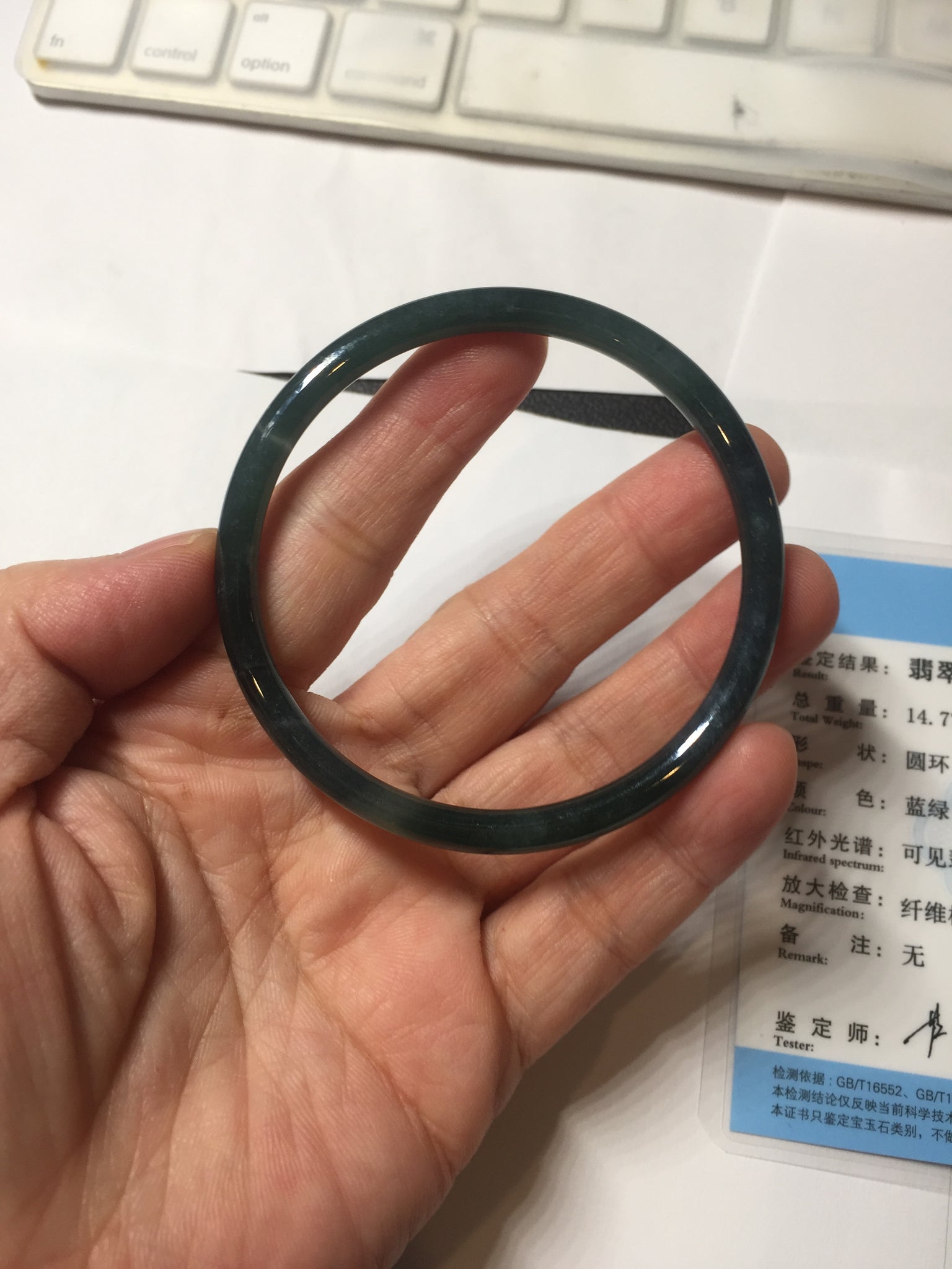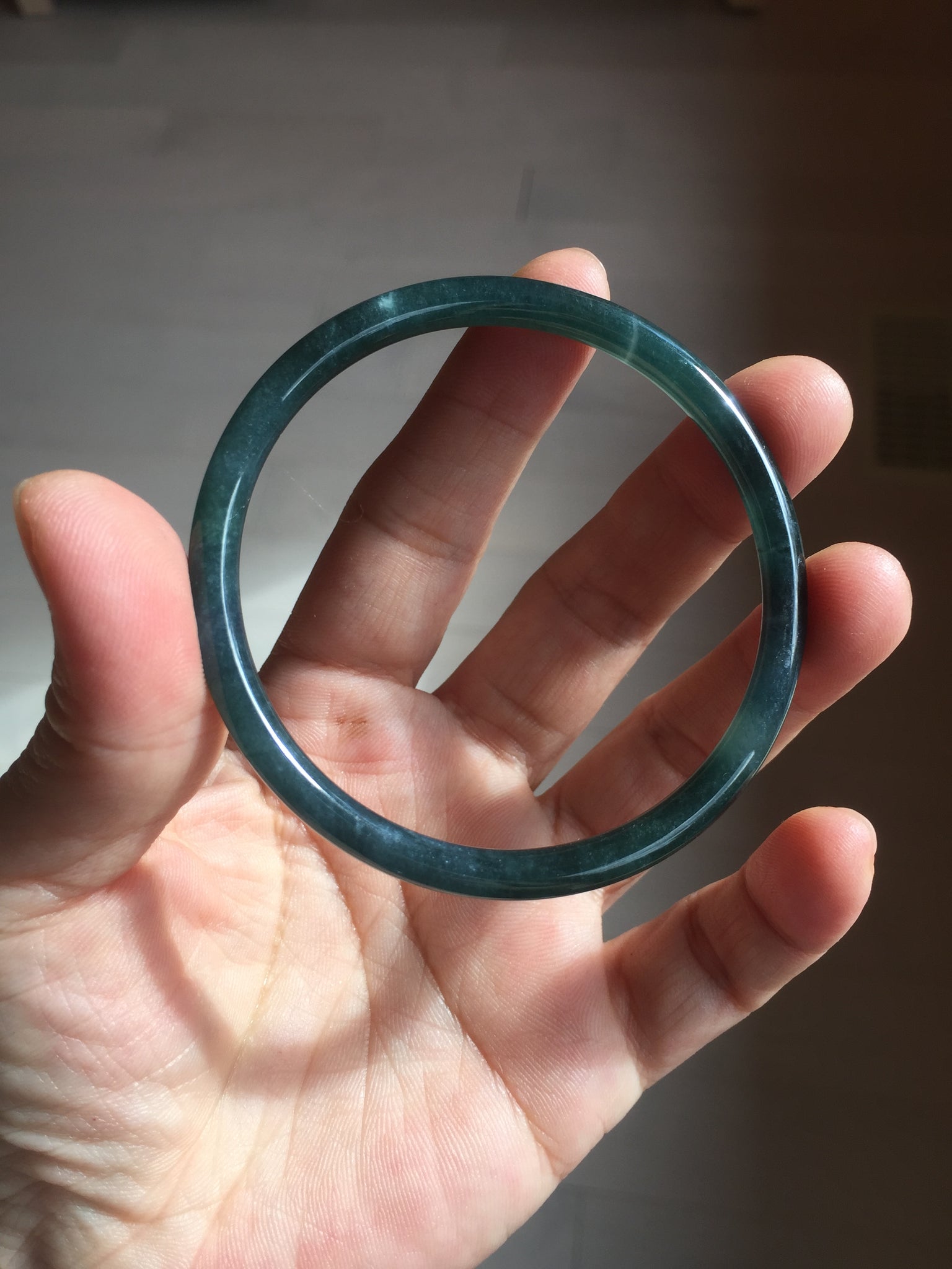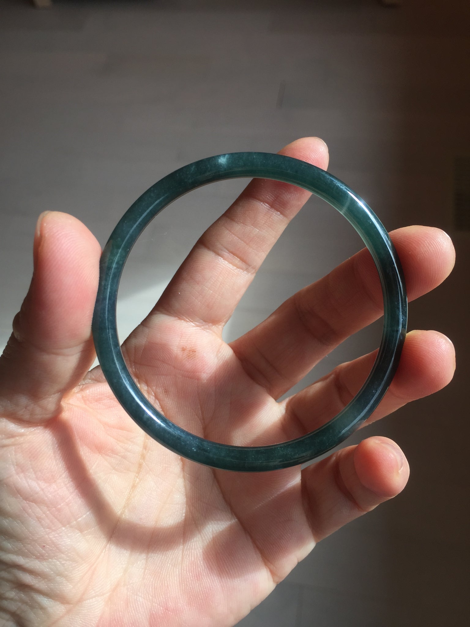 No crack. No hairline. Some cotton areas, cotton lines, and cotton spots. Not transparent . The bangle has some gray/ black color.