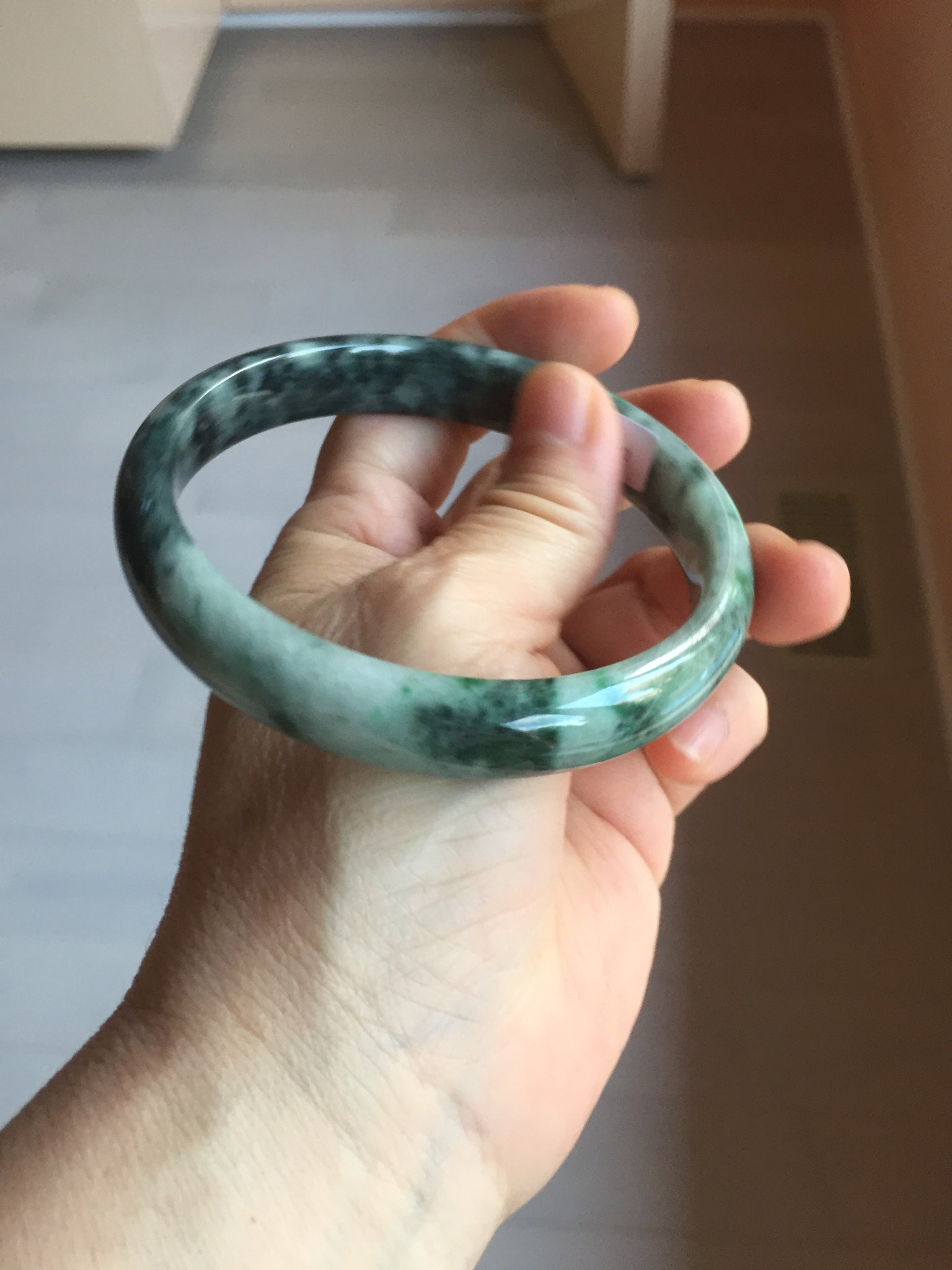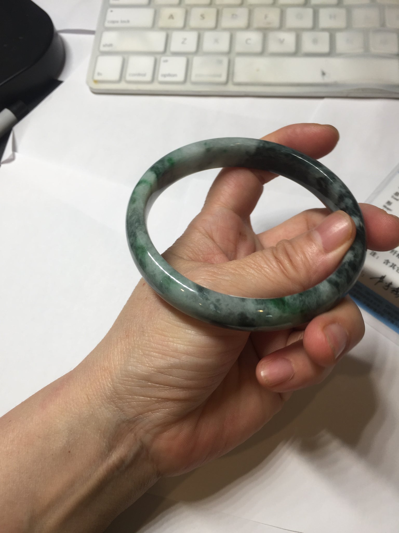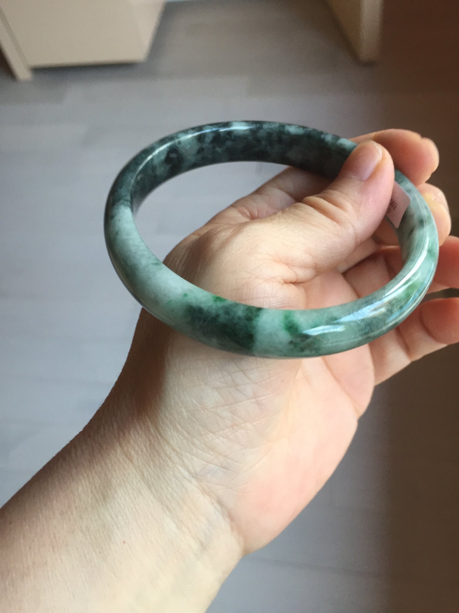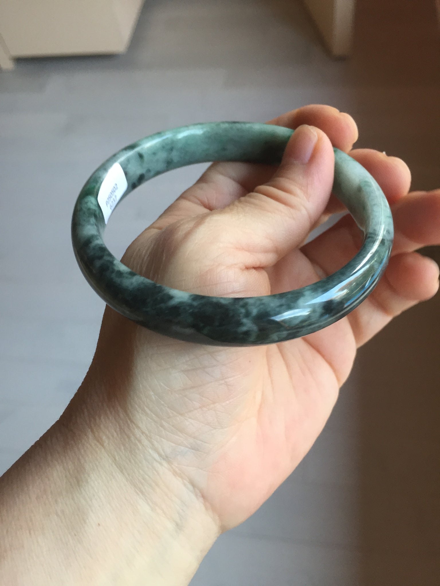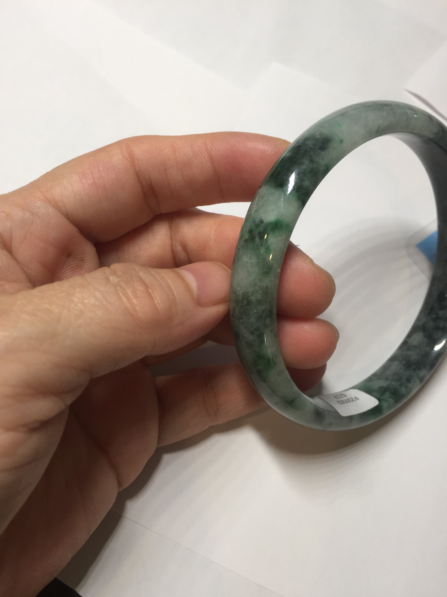 No crack. One small rough spot. Some cotton lines, cotton areas, and cotton spots. Black spots. Not transparent. Not watery.