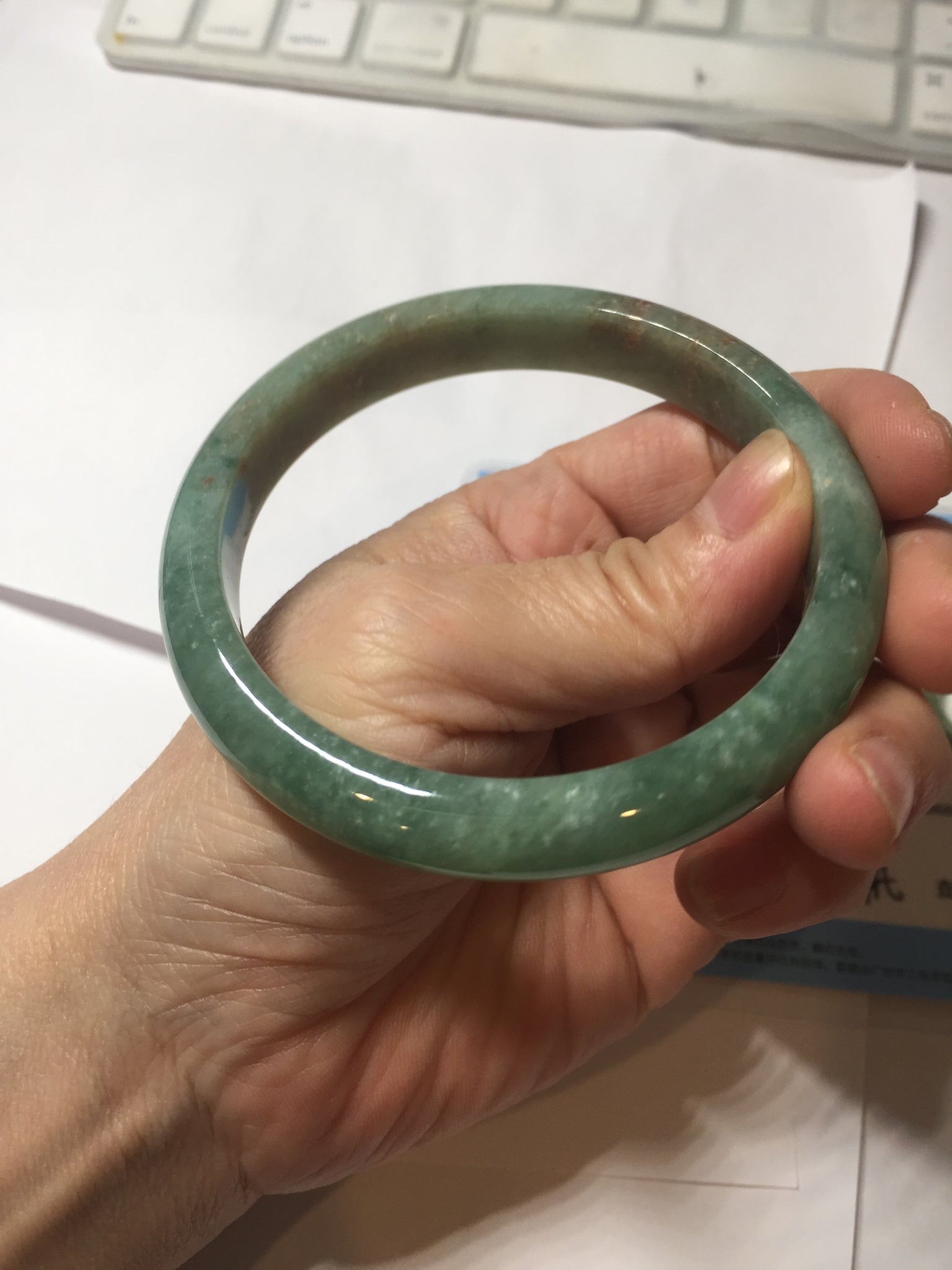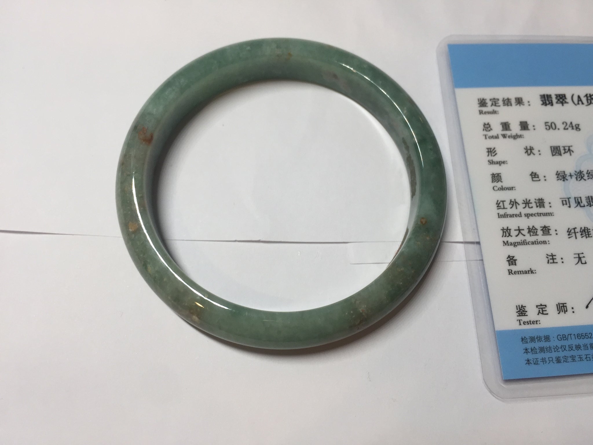No crack. No hairline. Some brown red rough surfaces and spots may with wax. Some cotton lines, cotton areas, and cotton spots. Not transparent.