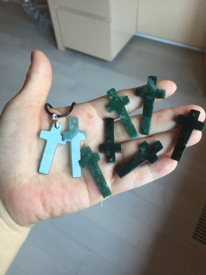 100% Natural type A dark green/blue/black/gray Guatemala jadeite Jade Hand-held cross or cross pendant group PD93