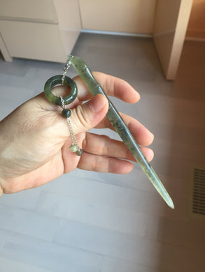 13.5cm 100% Natural green blue black Xiu Jade Serpentine hairpin AW30
