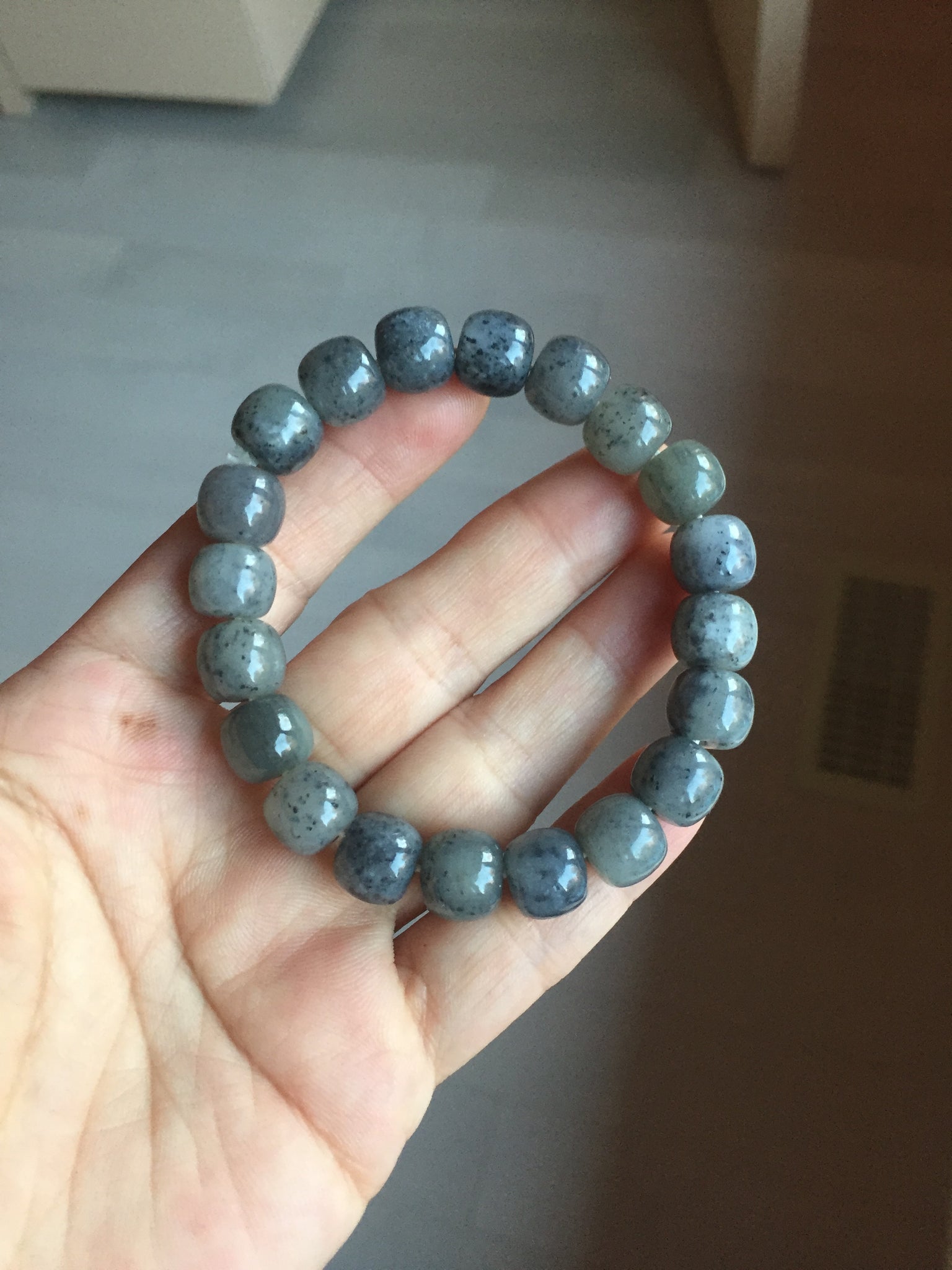 9/10mm 100% Natural black sesame paste(芝麻糊青花) vintage style nephrite Jade bead bracelet HN30