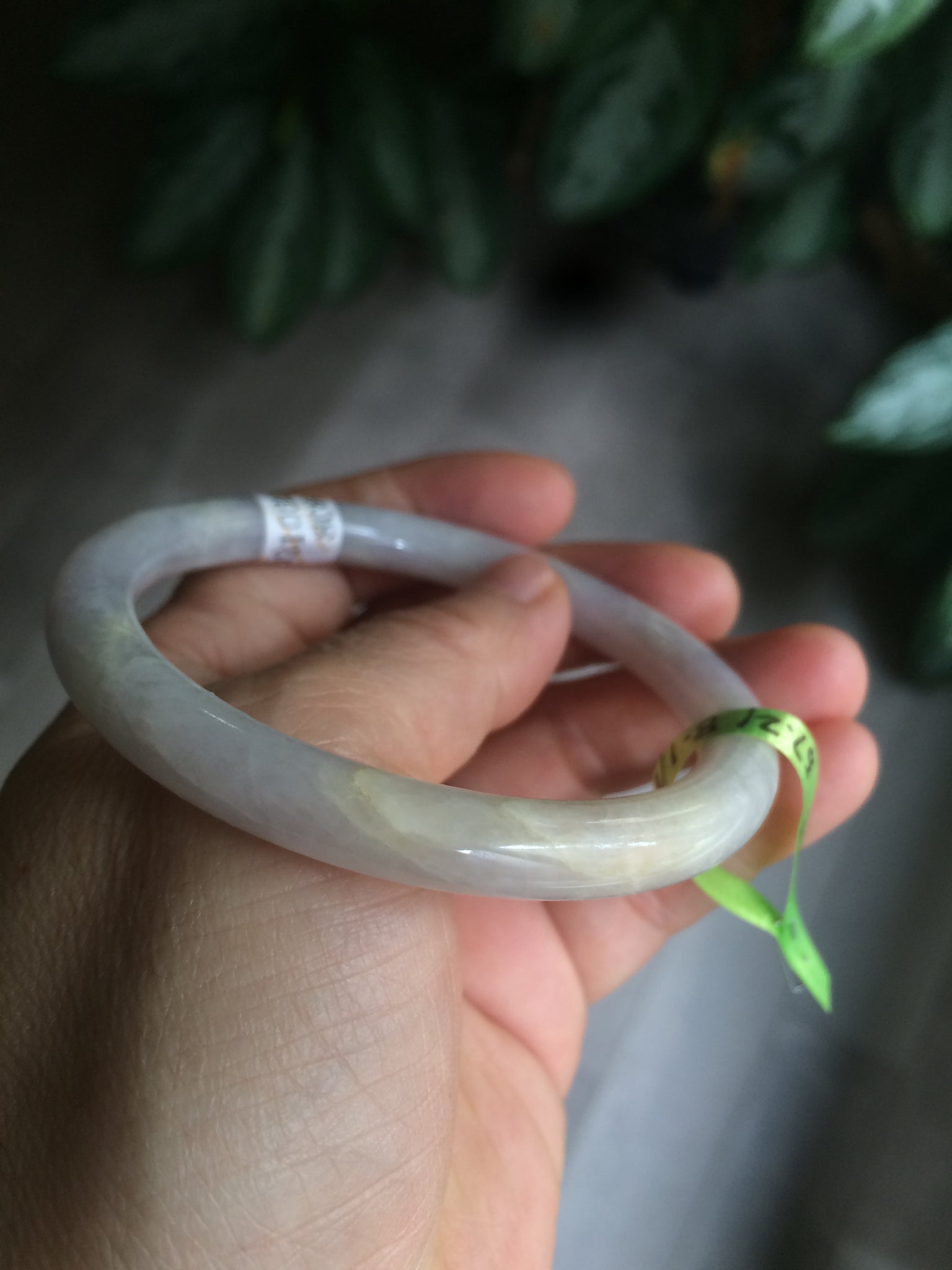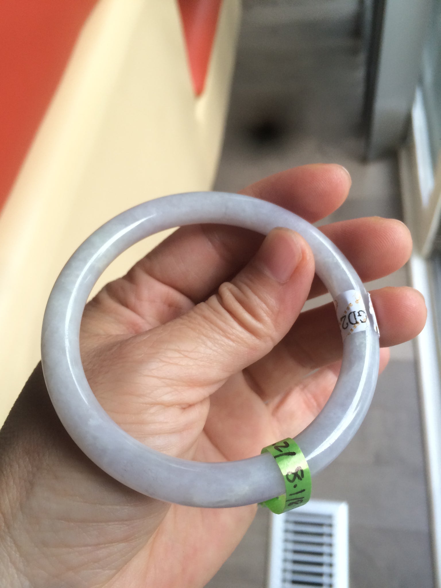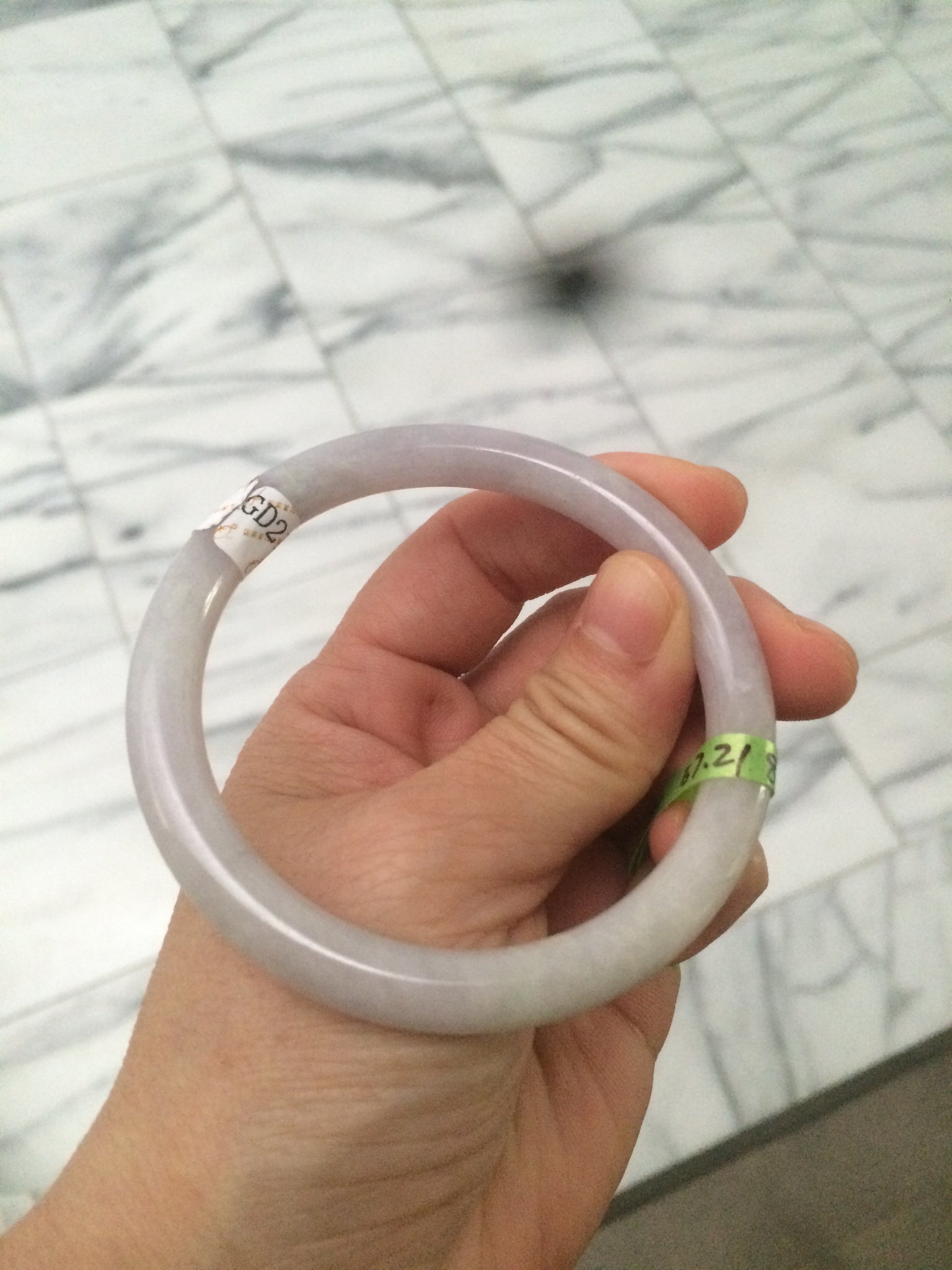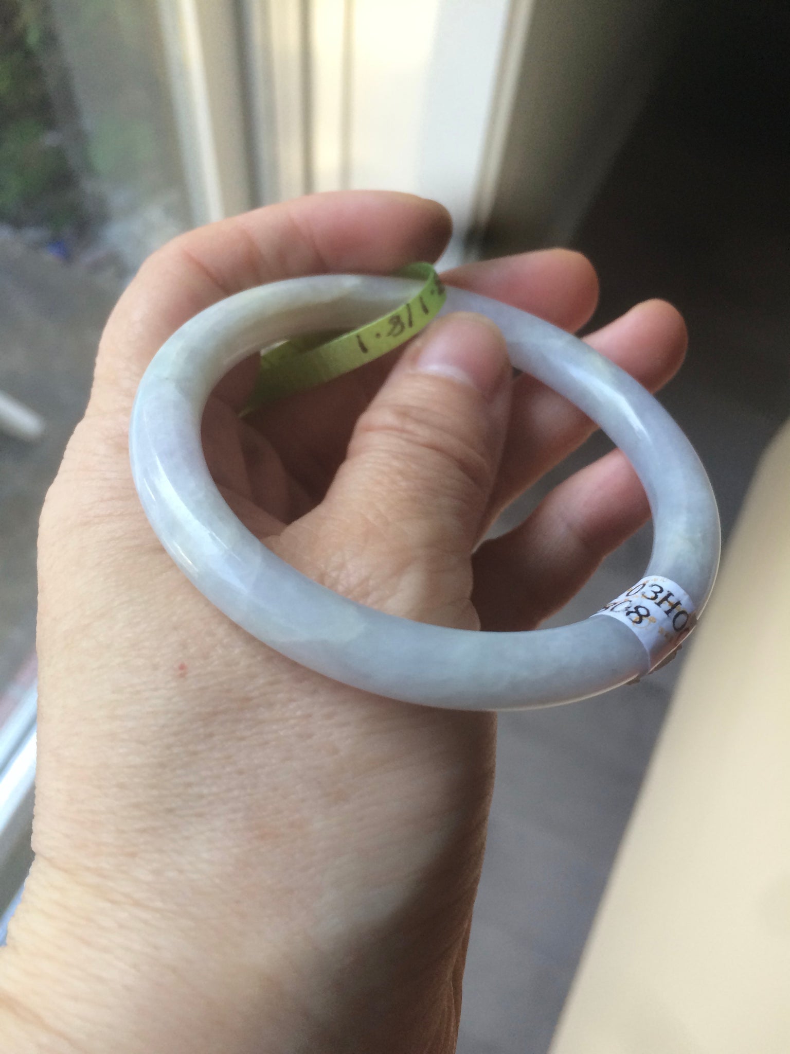 Some cracks (at least 8) and hairlines. Some of them are long U shape with a tiny trace of wax. But none of them are around the bangle or cut-through crack. Cotton spots. The purple is lighter than photos due to the purple always being camera-friendly.