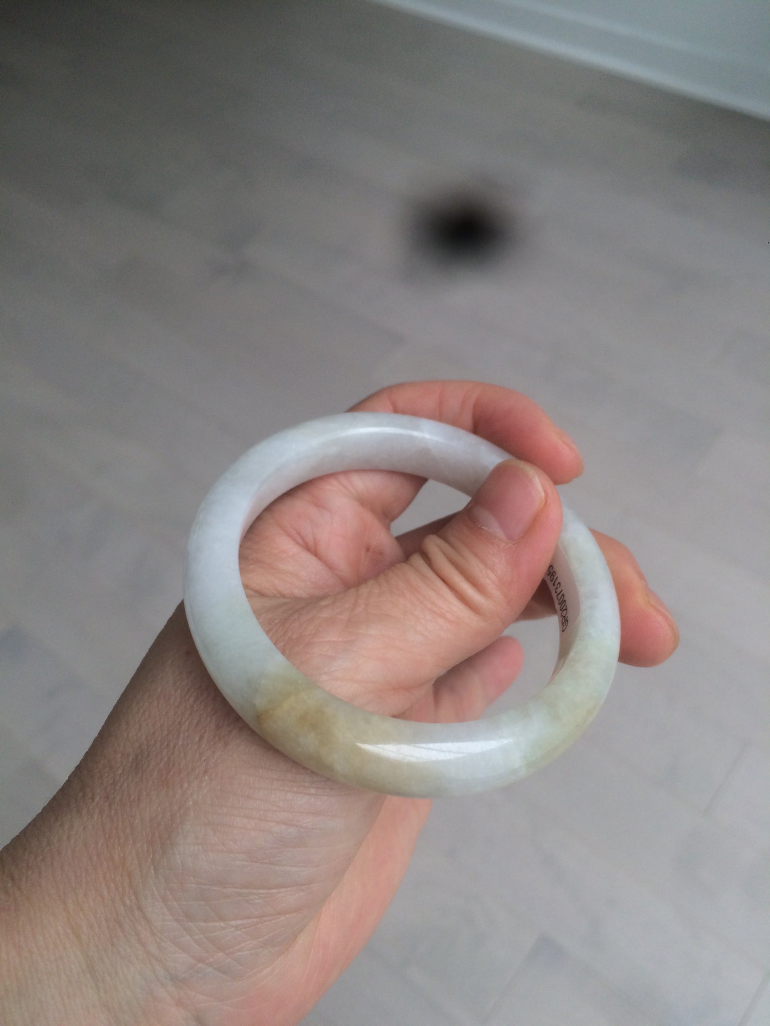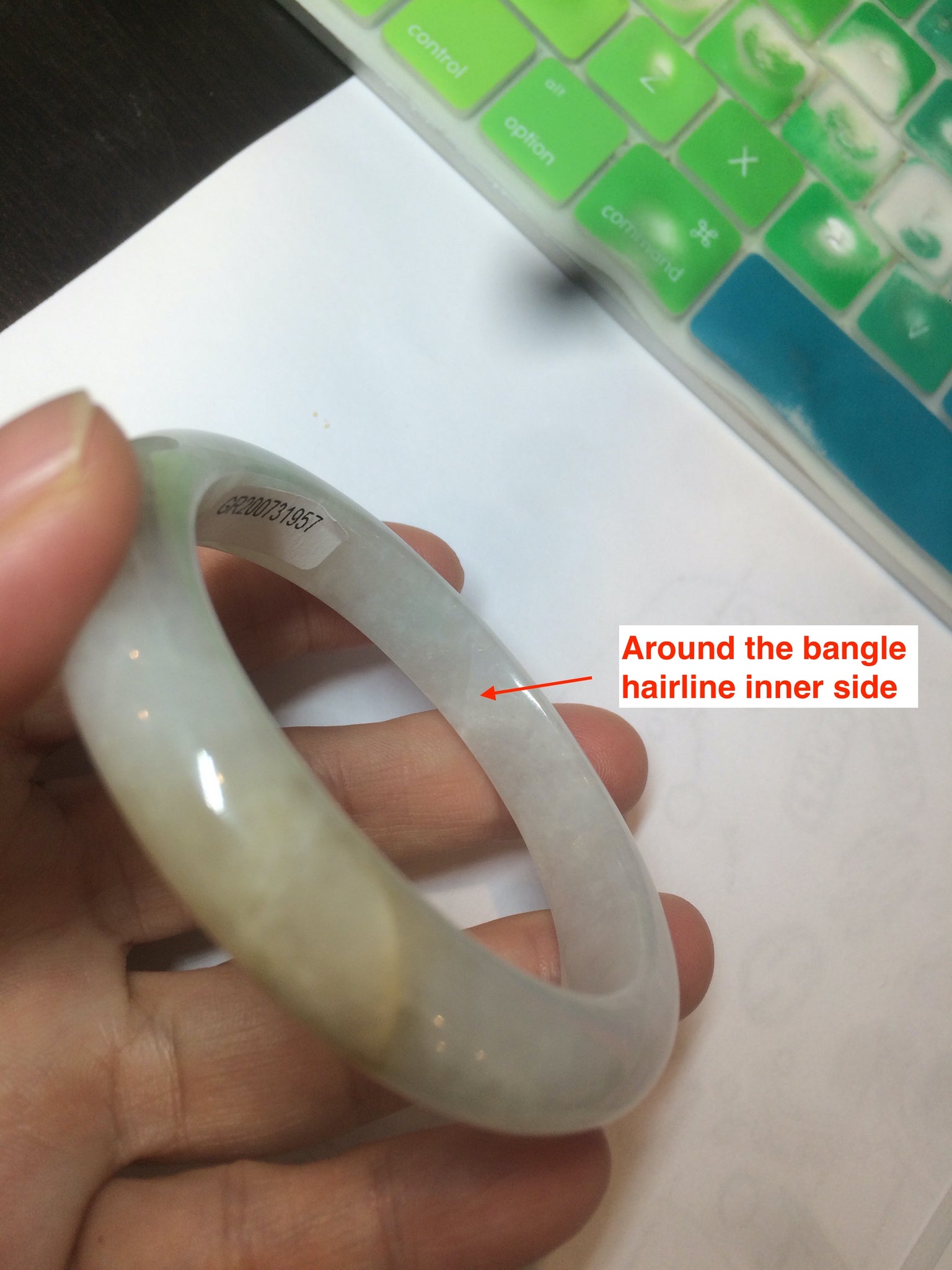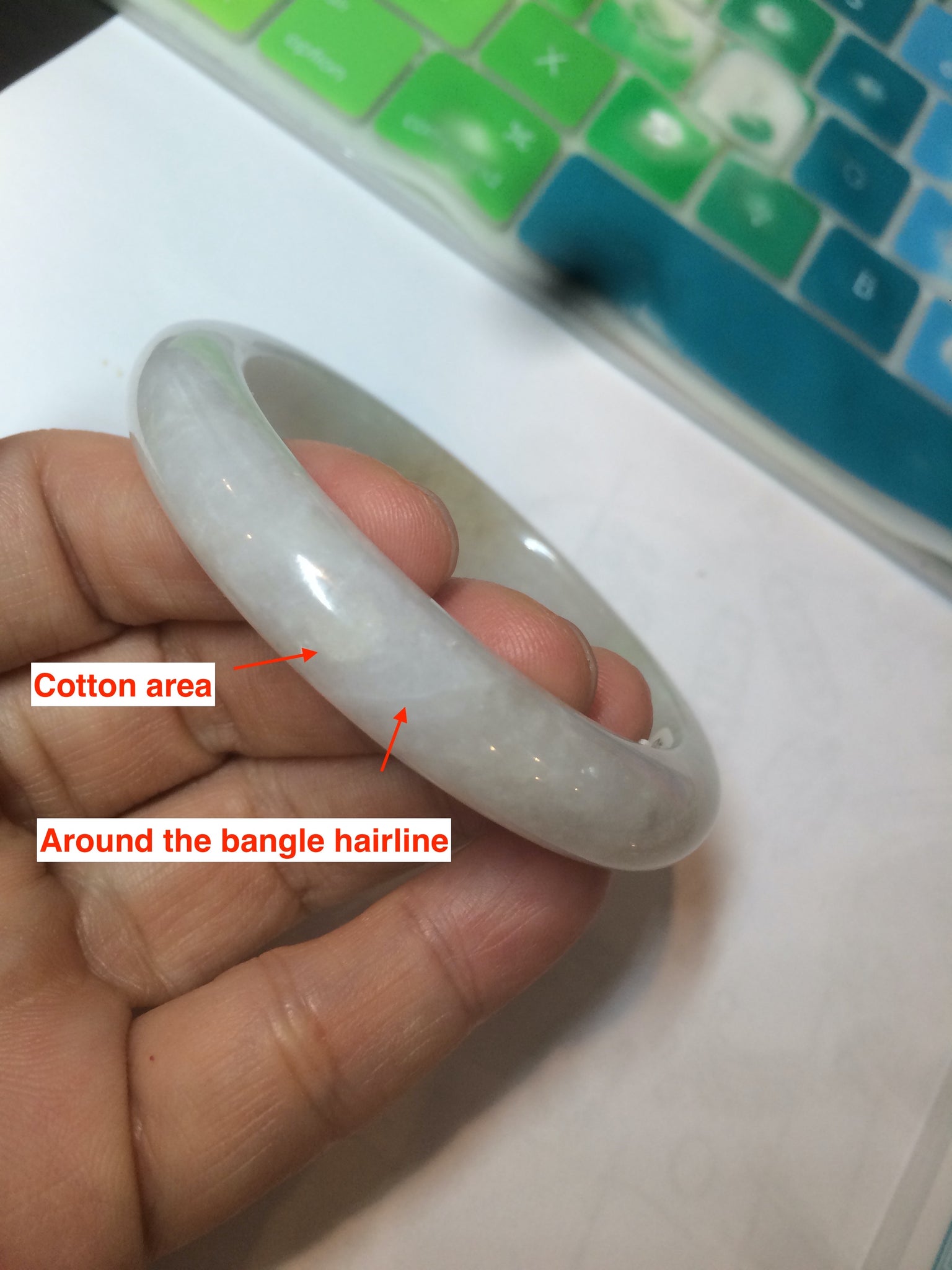 Some hairlines. One is around the banlge hairline. The bangle is still firm. Some cotton lines and spots.