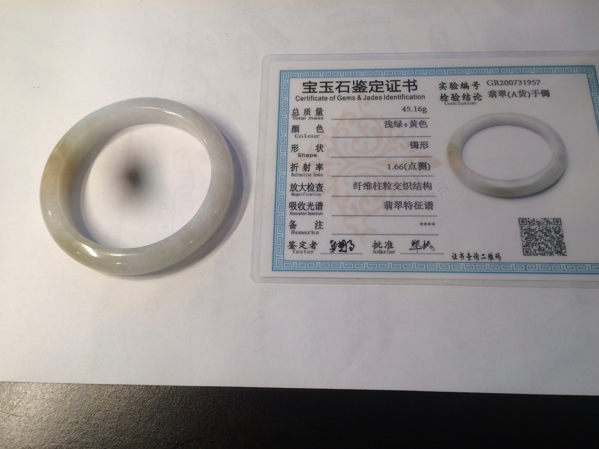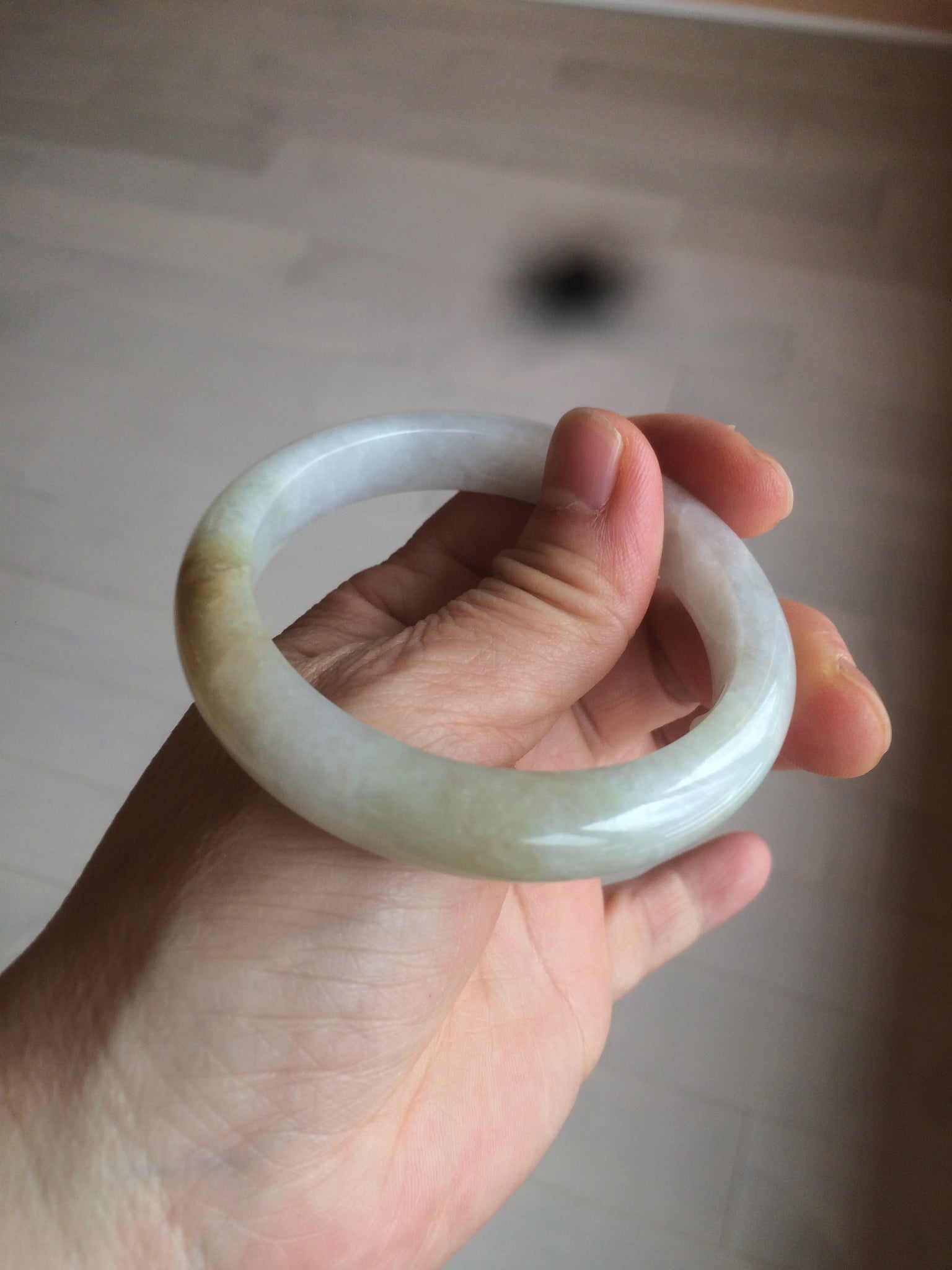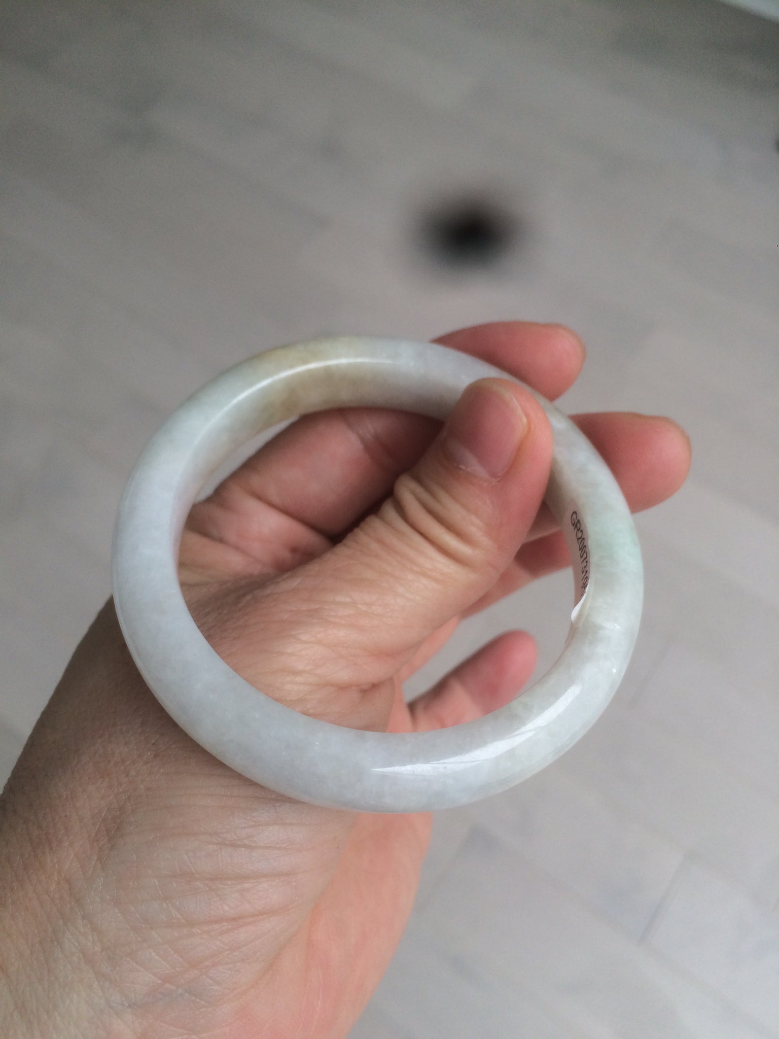 Some hairlines. One is around the banlge hairline. The bangle is still firm. Some cotton lines and spots.
