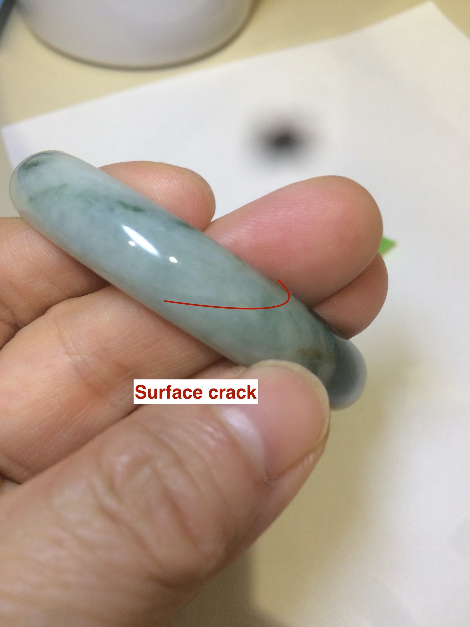 Two surface cracks. One color root. One cotton area with cotton lines. Won't influence the firmness.