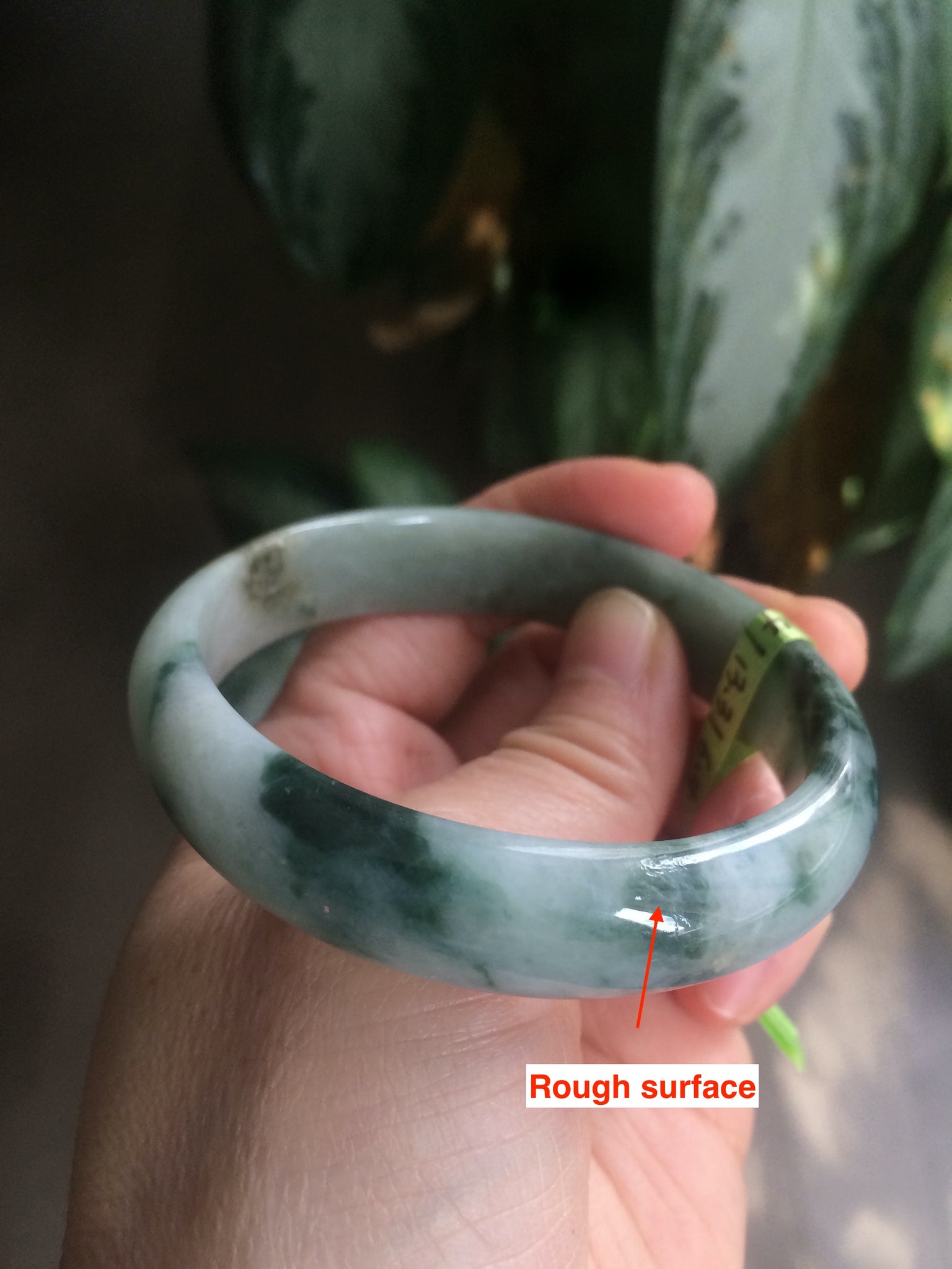 Some cracks and hairlines (photos may not show all). One is an around the bangle crack. Tight fit is not recommended. Some rough surface with a tiny bit of WAX. Cotton spots.