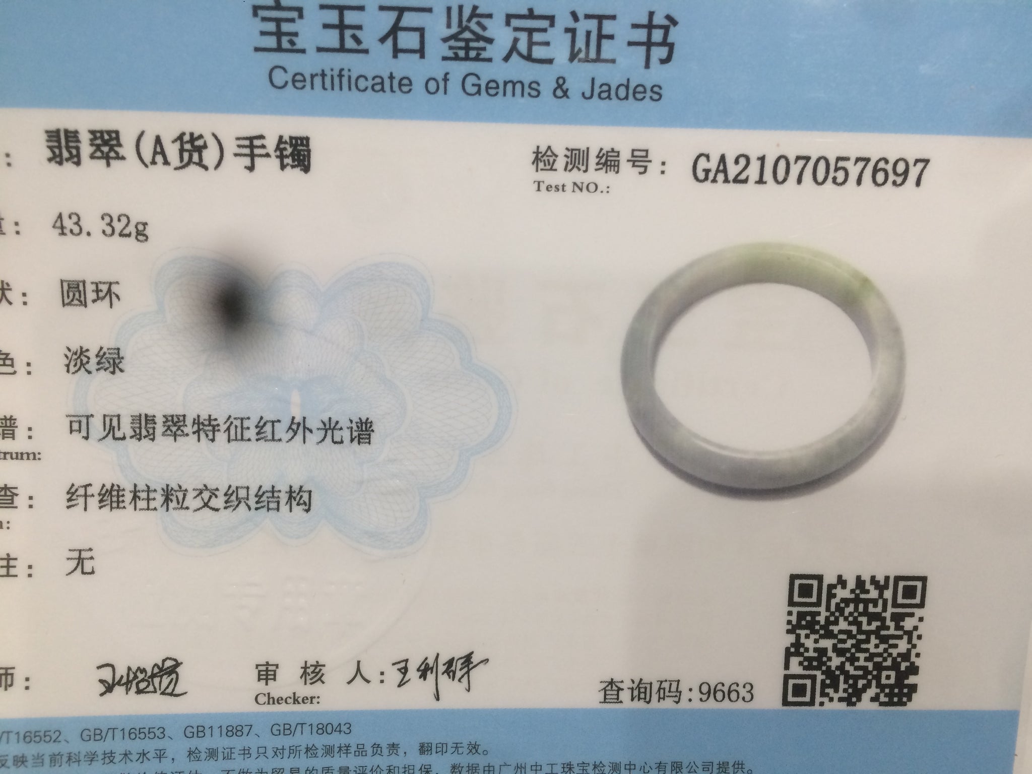 One surface scratch. One color root with rough surface. Some cotton spots and lines. watery but the texture is not so fine. You can see a lot of jade structures.