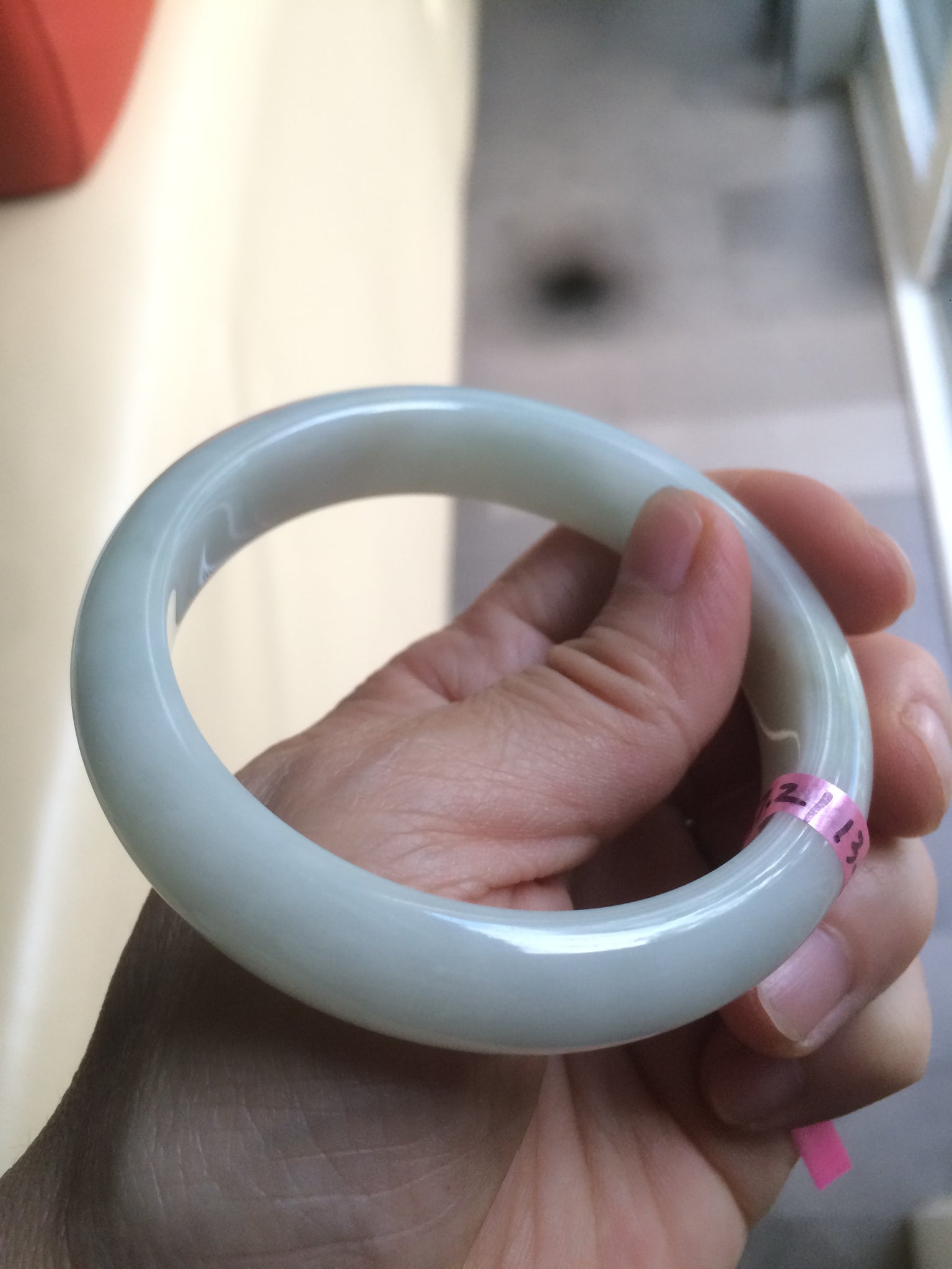 57.2mm certified Type A 100% Natural light green/white Jadeite Jade bangle AB21-6215