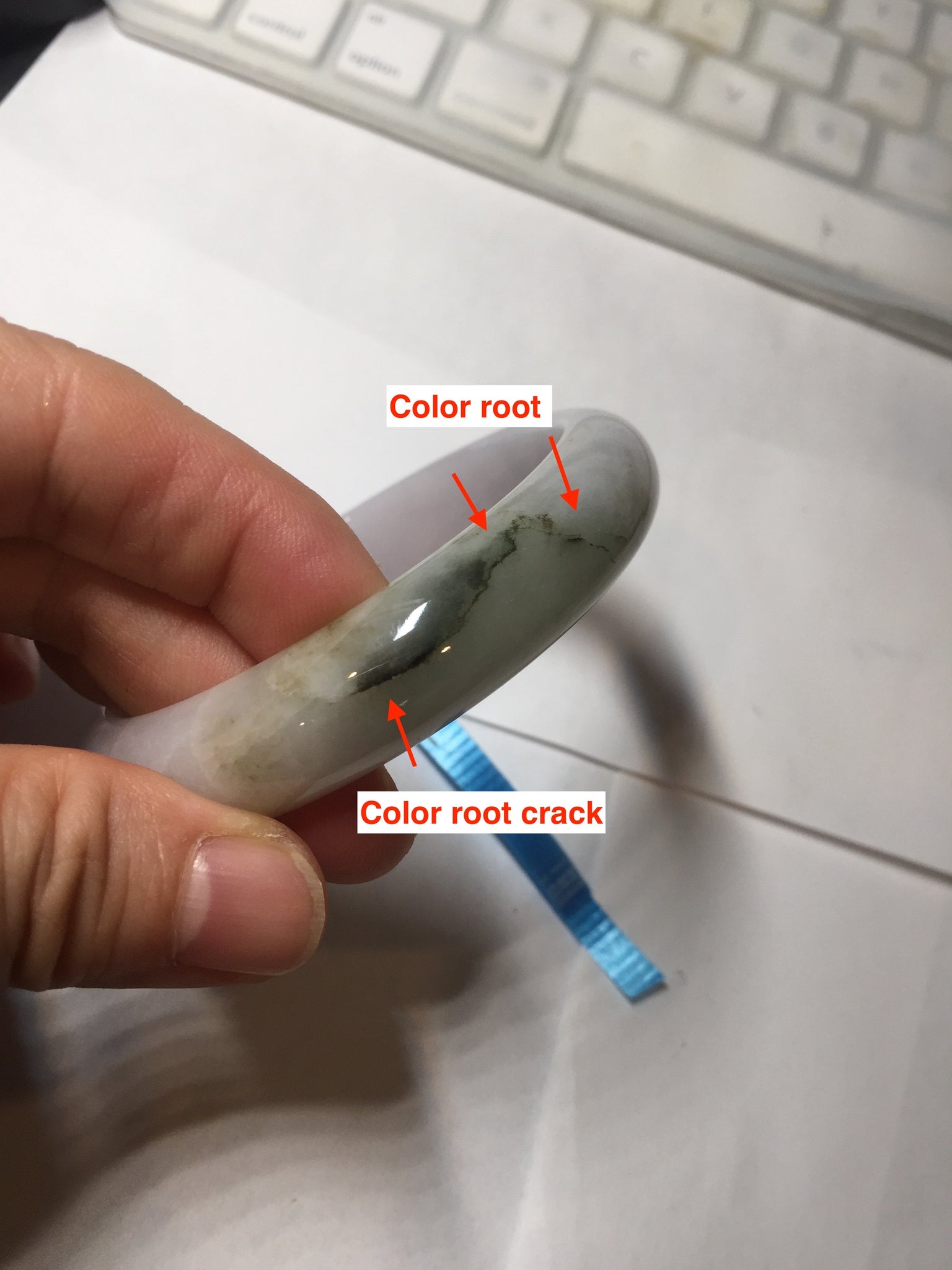 One color root cracks. Some hairlines(more than 9). The bangle is solid and it makes a high-pitched sound when clicked. Some dark green color roots. Some cotton areas, and cotton spots. The purple is super light, lighter than in the photos due to the purple color always being more camera-friendly.
