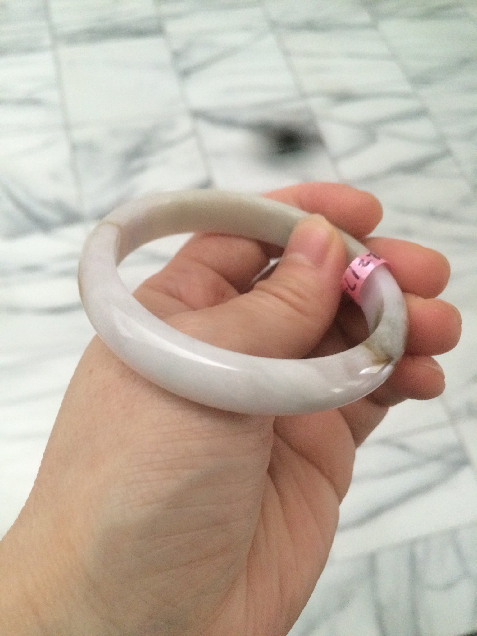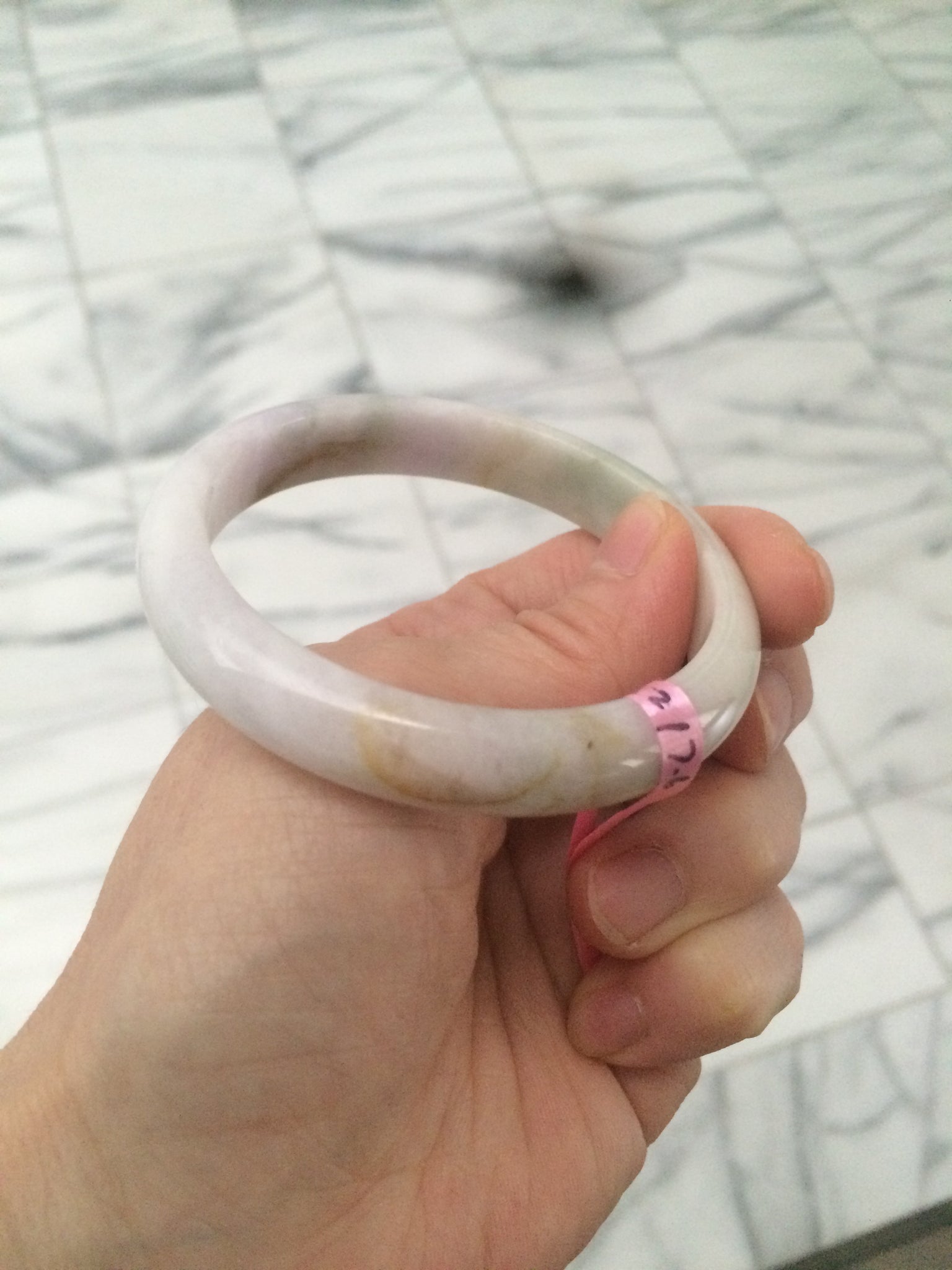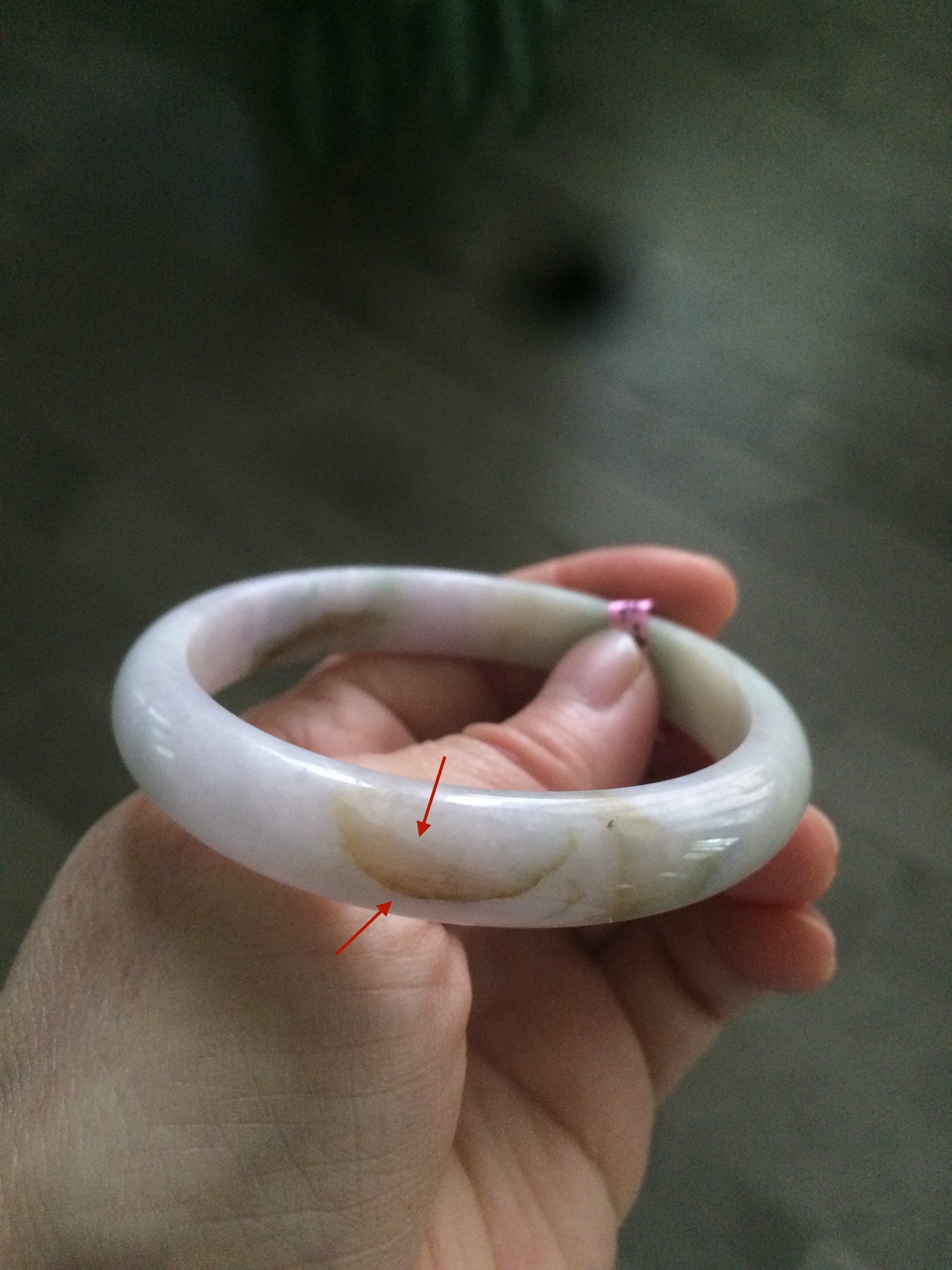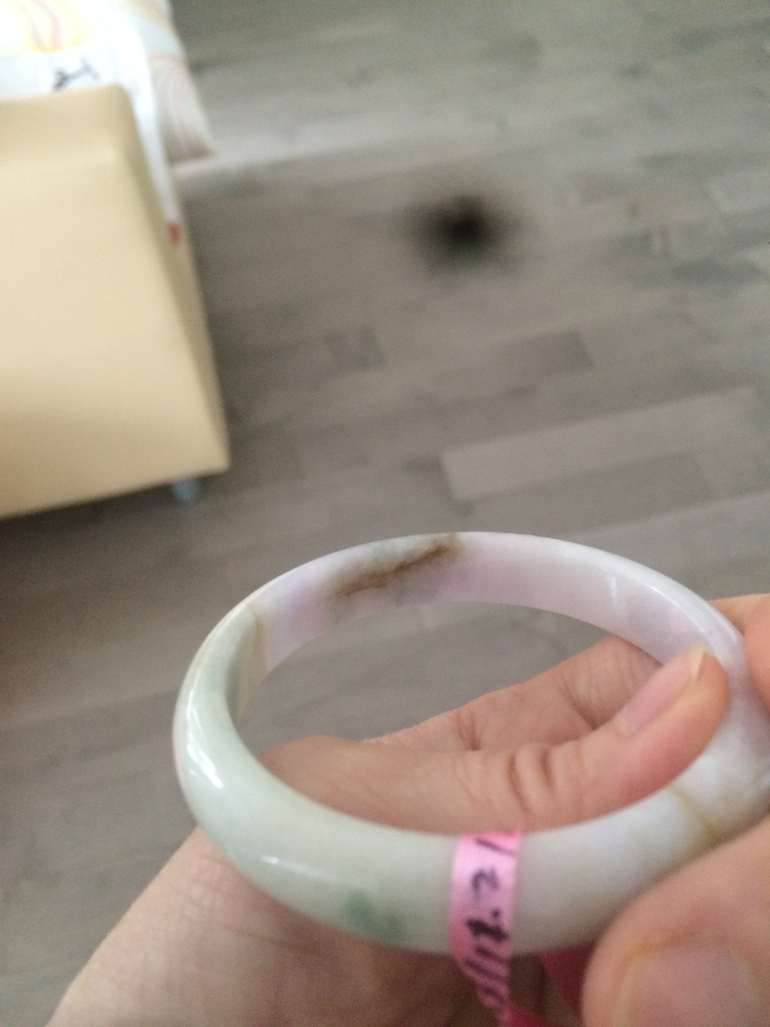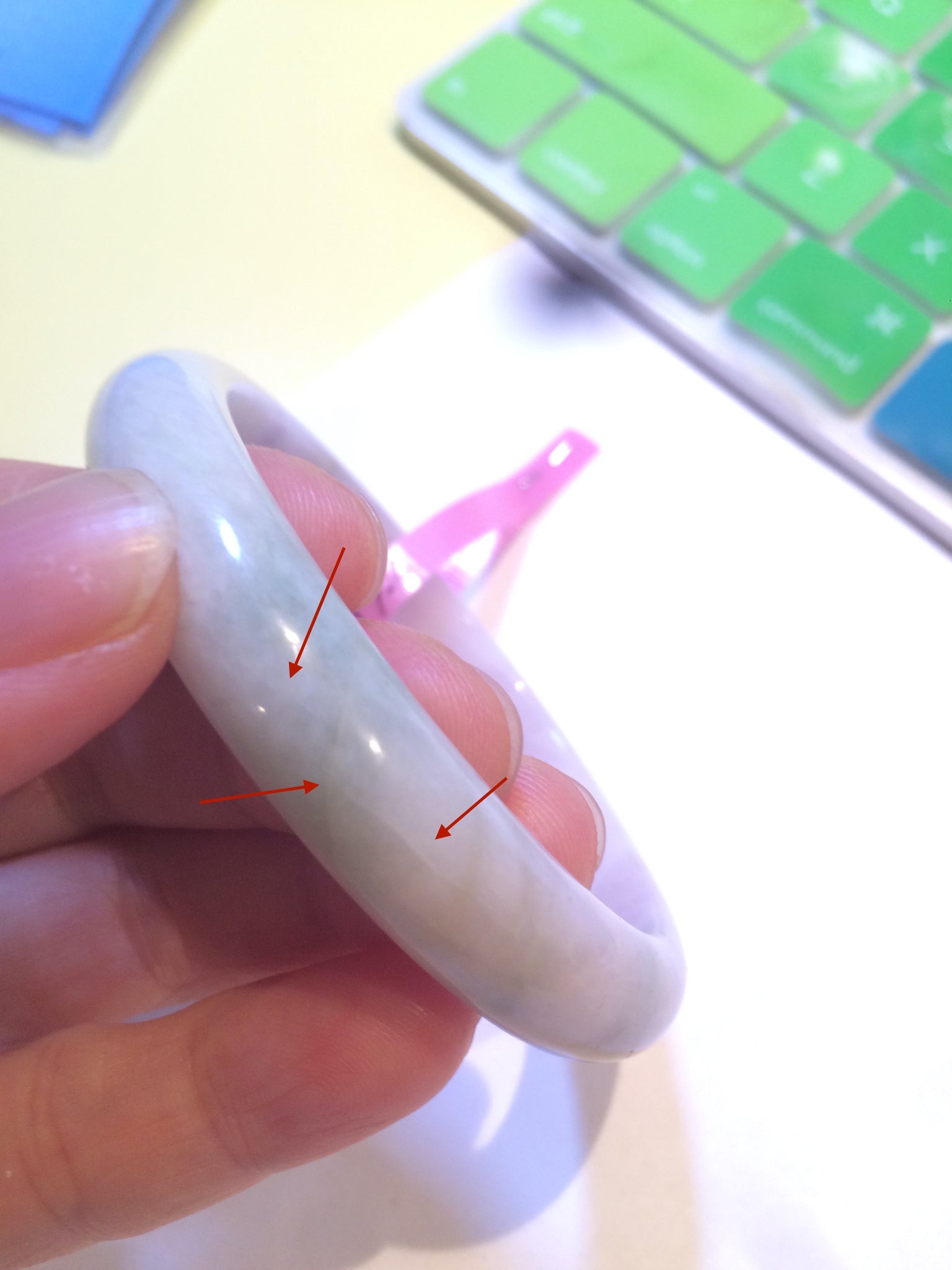 Some cracks. Some hairlines. But the whole bangle is firm. Make a high sound when click. Purple is lighter than photos.